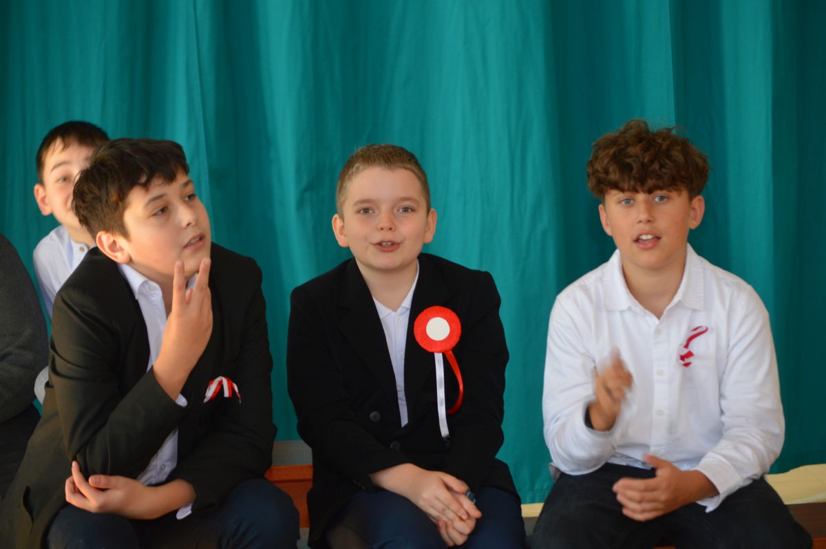 Jak co roku obchodziliśmy jedno z najważniejszych świąt w Rzeczypospolitej – Święto Niepodległości. Na początku odśpiewaliśmy naszego „Mazurka Dabrowskiego”, dołączając do ogólnopolskiej akcji „Szkoła do hymnu”. Uroczystość przygotowały wychowawczynie klas drugich ze swoimi podopiecznymi – panie Dorota i Magda. Towarzyszyła im schola z panią Renią. Swoją obecnością zaszczycili nas – Wójt Gminy Rytro Jan Kotarba oraz radna Maria Kowalik. Było uroczyście jak na Święcie Niepodległości:) [PK]