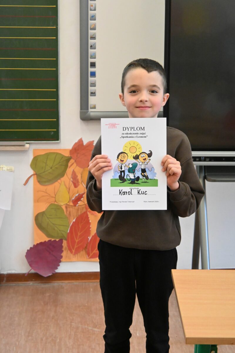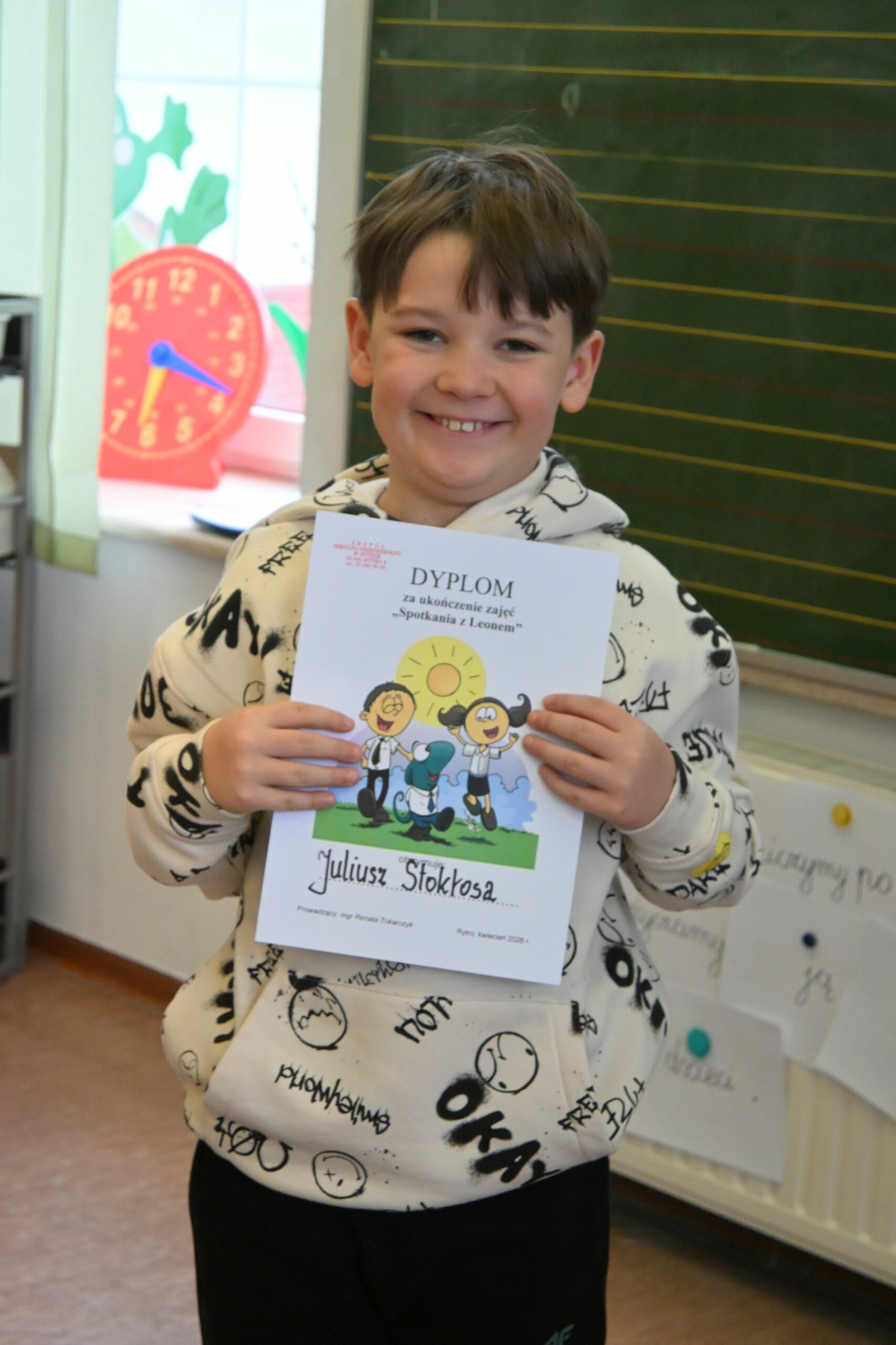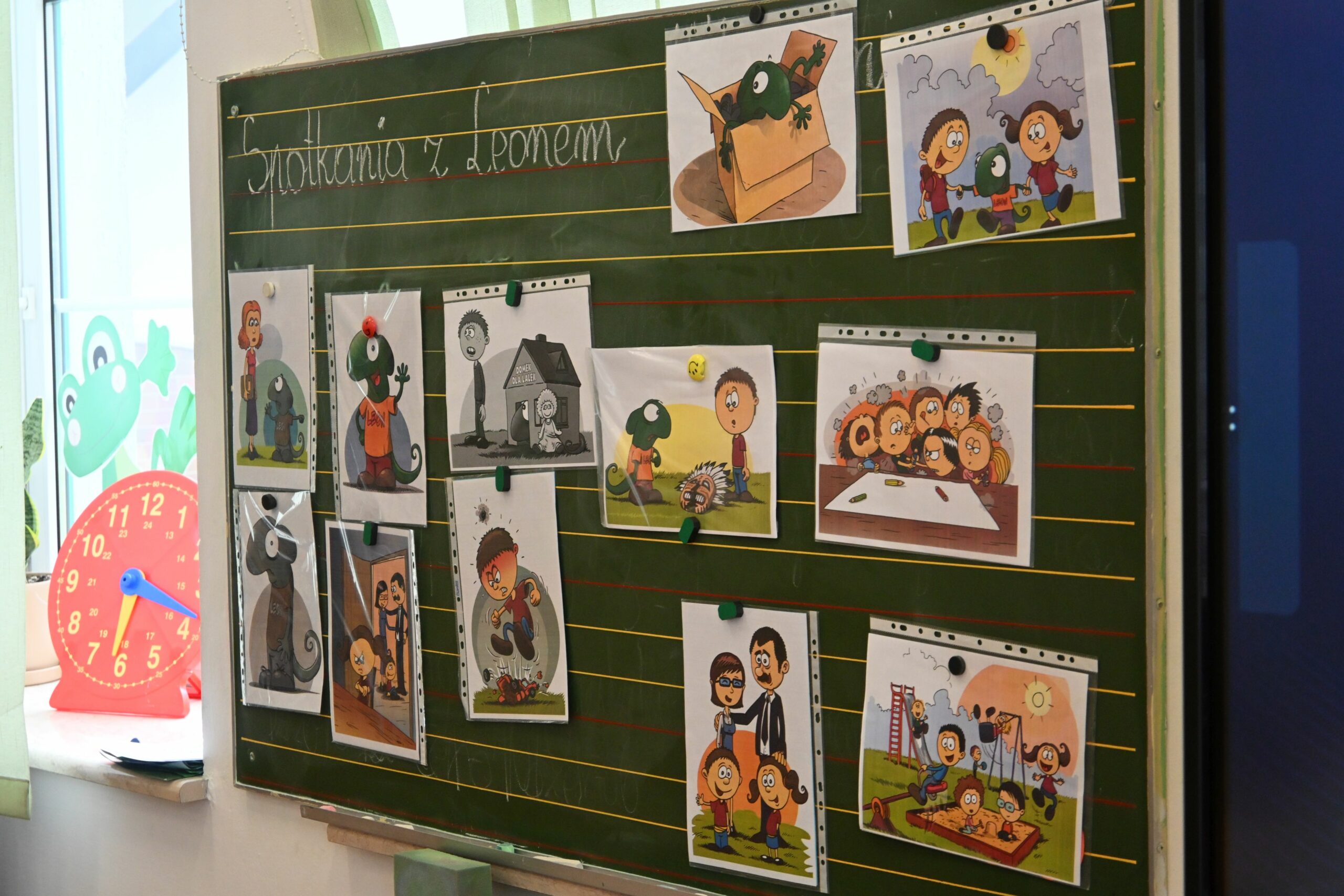 Te zdania, najczęściej powtarzają uczniowie klasy 1A, uczestniczący w zajęciach psychoprofilaktycznych „Spotkania z Leonem”. Podczas spotkań towarzyszył nam Leon – kameleon, który pomagał w rozwiązywaniu trudnych spraw dotyczących emocji, skarżenia, dokuczania, rozwiązywania konfliktów oraz współpracy w grupie. Teraz wszystko w naszych rękach…. [RT]