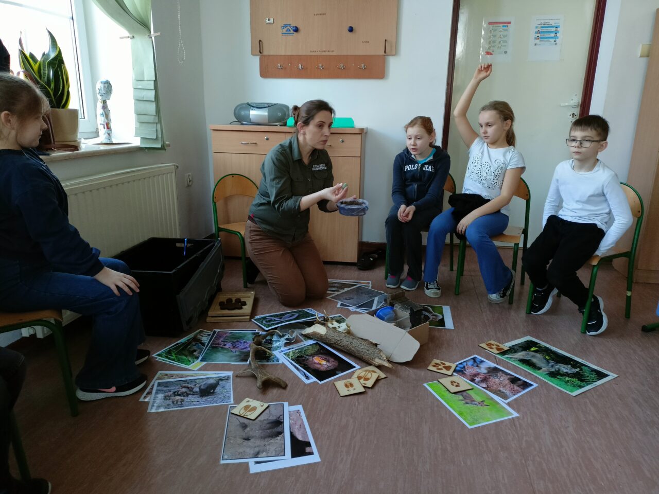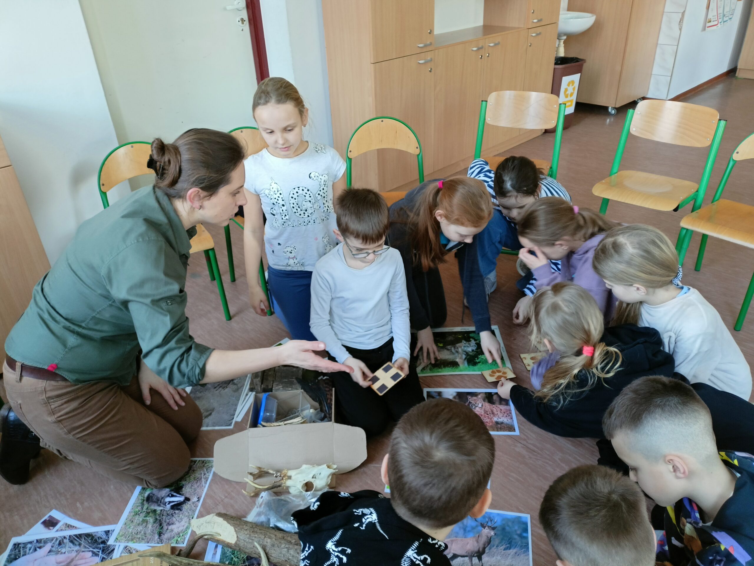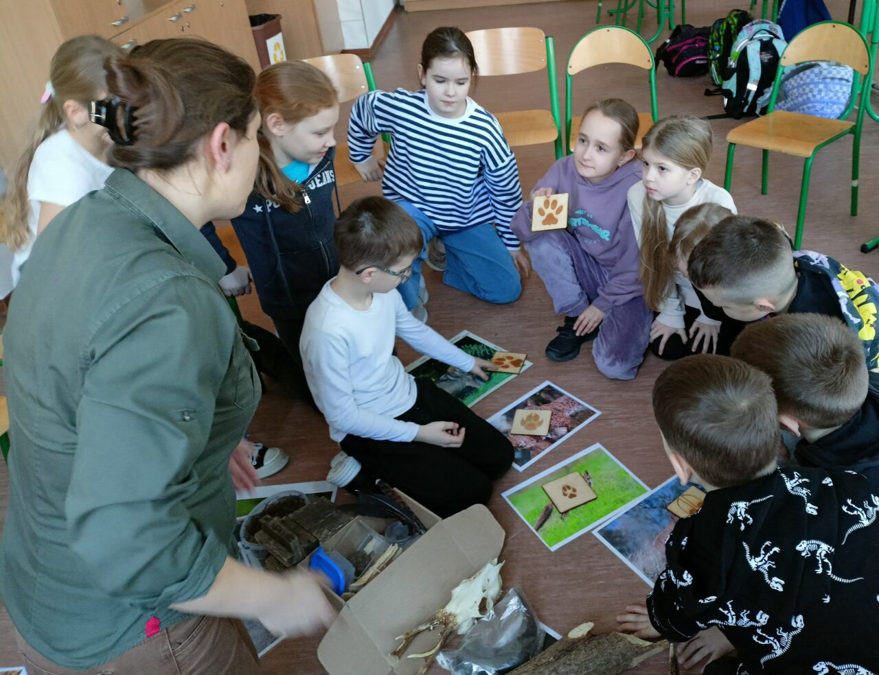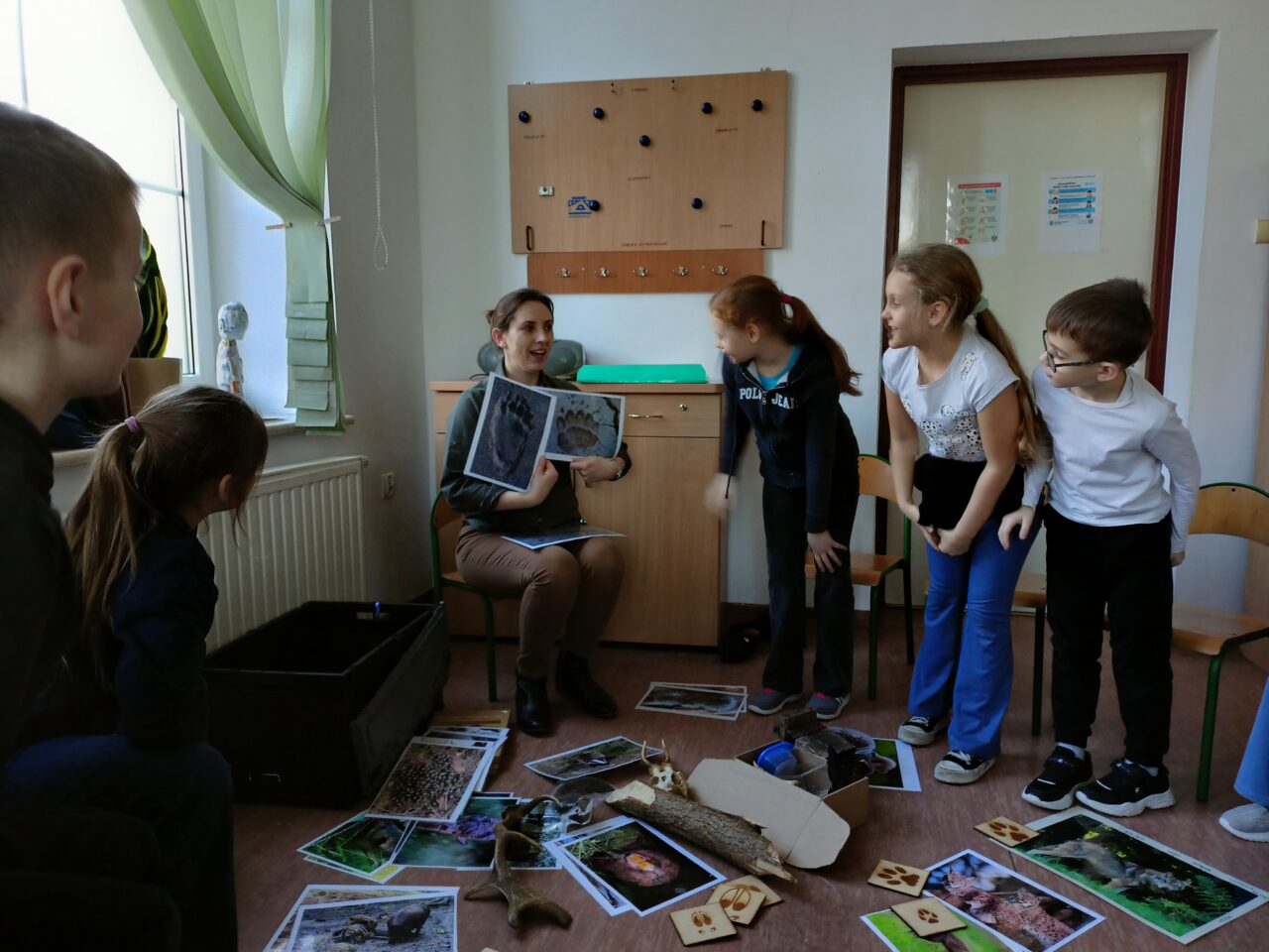 Klasy I-III wzięły udział w niecodziennej lekcji przyrody przeprowadzonej przez pracownika Popradzkiego Parku Krajobrazowego. Celem zajęć było rozpoznawanie śladów i tropów wybranych gatunków zwierząt leśnych. Uczniowie zgłębili wiedzę na temat życia niedźwiedzi, dzików, saren, wilków. Wysłuchali ciekawostek oraz poznali zasady zachowania się wobec przypadkowo napotkanych dzikich zwierząt. Zajęcia były przeprowadzone w formie angażującej uczniów i zachęcały do prowadzenia obserwacji przyrodniczych. [MS]