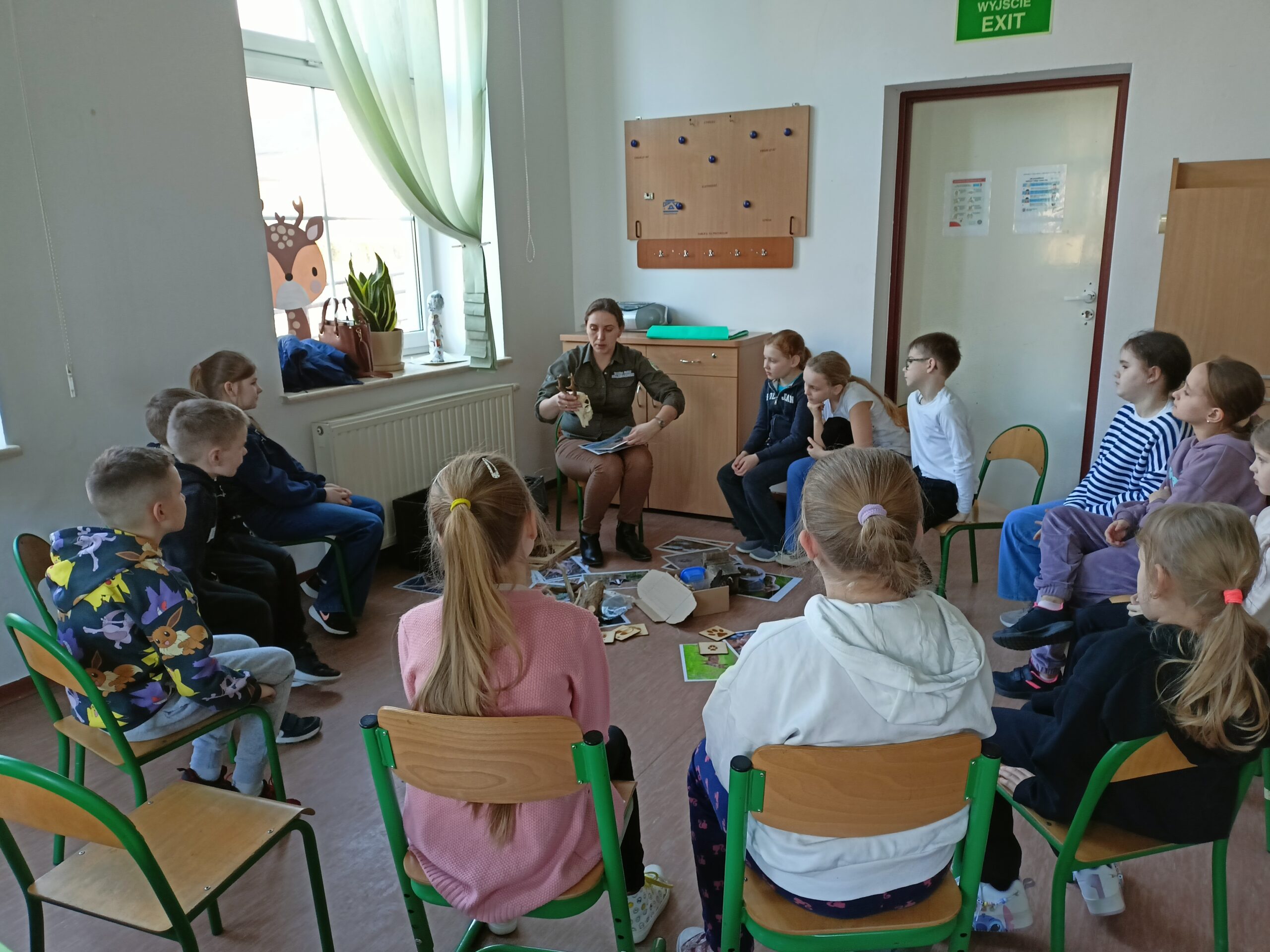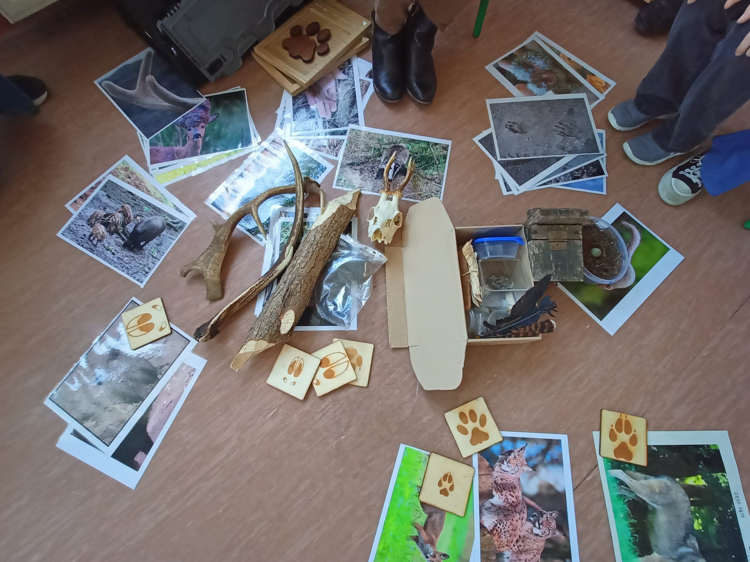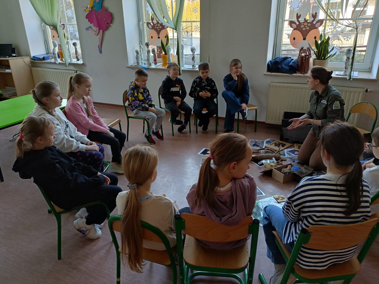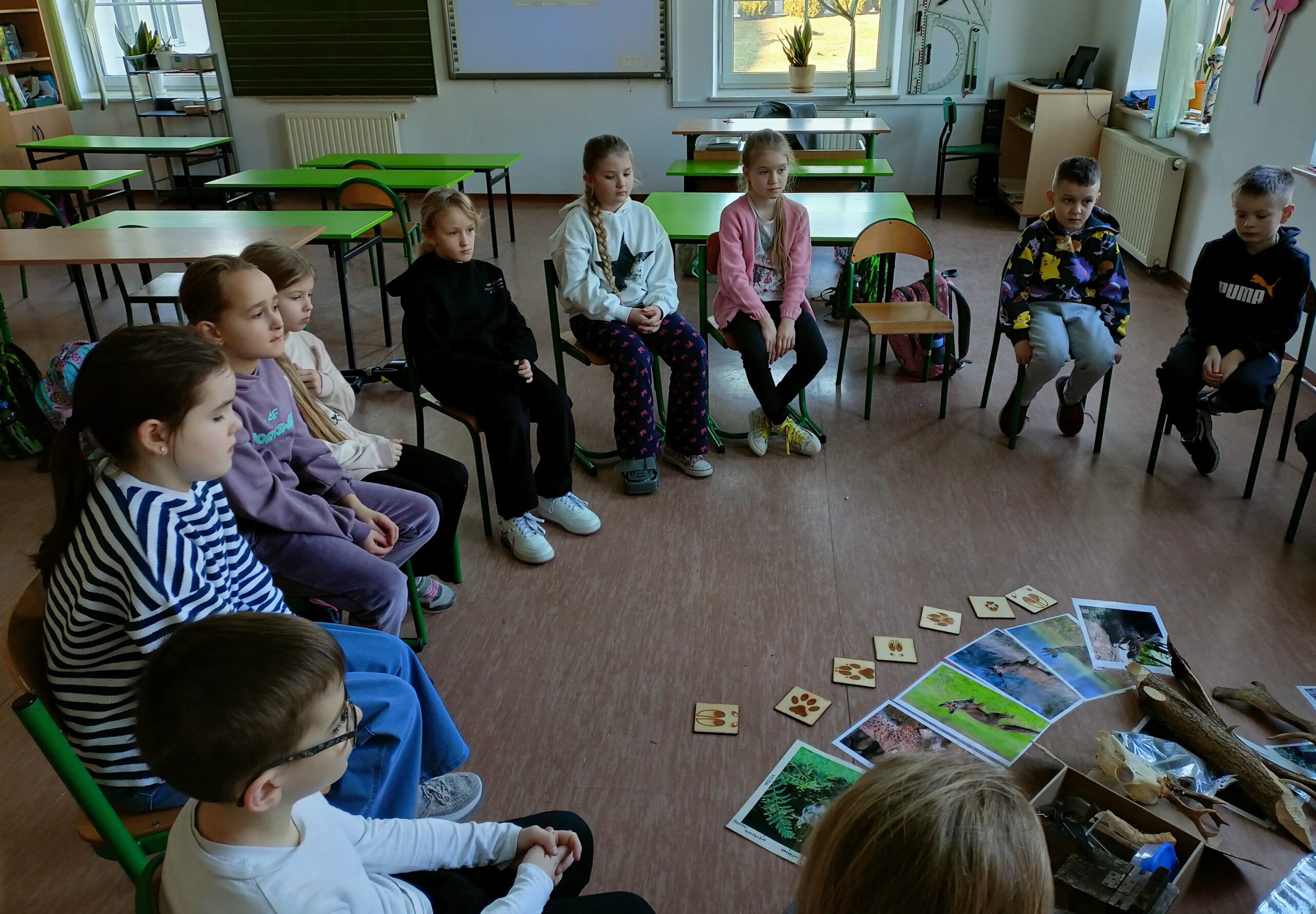 Klasy I-III wzięły udział w niecodziennej lekcji przyrody przeprowadzonej przez pracownika Popradzkiego Parku Krajobrazowego. Celem zajęć było rozpoznawanie śladów i tropów wybranych gatunków zwierząt leśnych. Uczniowie zgłębili wiedzę na temat życia niedźwiedzi, dzików, saren, wilków. Wysłuchali ciekawostek oraz poznali zasady zachowania się wobec przypadkowo napotkanych dzikich zwierząt. Zajęcia były przeprowadzone w formie angażującej uczniów i zachęcały do prowadzenia obserwacji przyrodniczych. [MS]