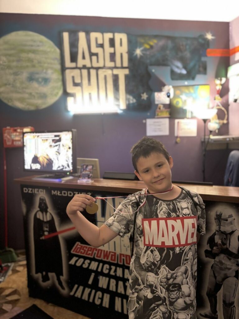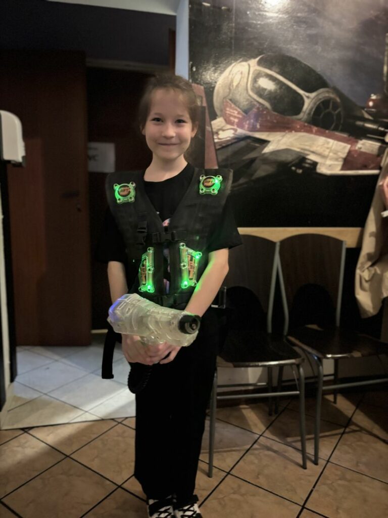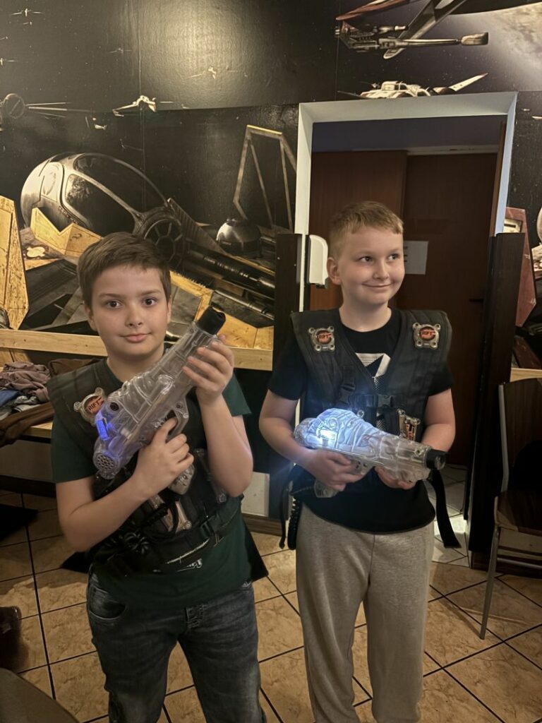 Arena, zlokalizowana w podziemiach kamienicy, miała liczne zakamarki, które sprzyjały intensywnej i pełnej wrażeń rozgrywce. Po dwóch godzinach emocjonującej rywalizacji udaliśmy się na mały deser do kultowej już kawiarni ,,Coctailbar”, gdzie zjedliśmy pyszne lody. Następnie przespacerowaliśmy się po rynku w Nowym Sączu, a punktem kulminacyjnym okazała się wizyta w restauracji McDonald. To był dzień pełen dobrej zabawy i śmiechu!