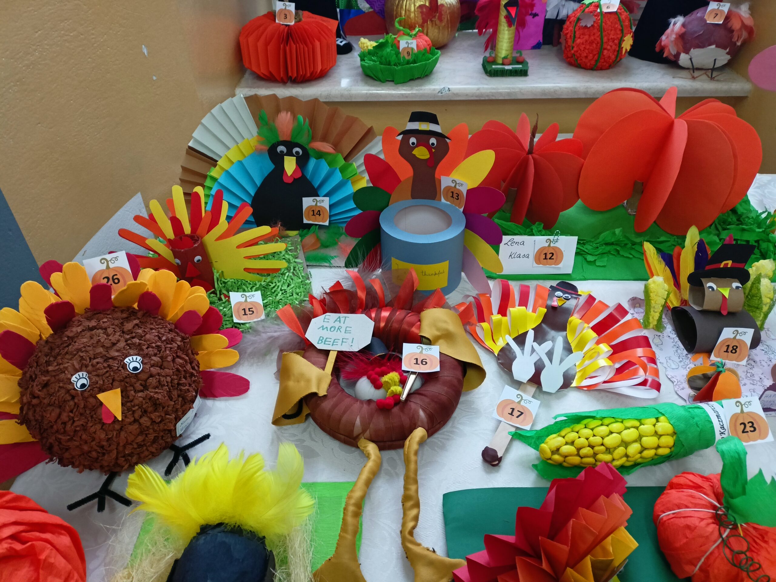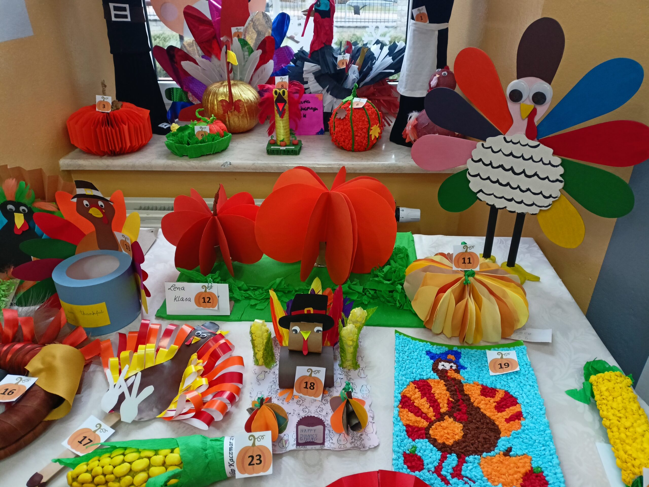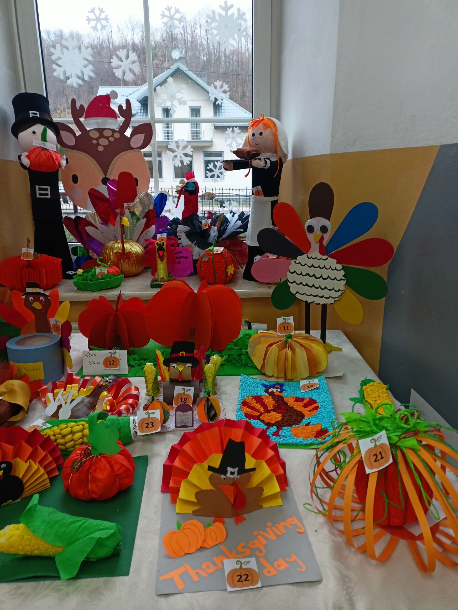 W ostatni czwartek listopada przypada Thanksgivig Day tzw. Święto Dziękczynienia, które jest bardzo hucznie celebrowane w Stanach Zjednoczonych oraz Kanadzie. Jego ranga porównywalna jest do Bożego Narodzenia. Historia tego święta związana jest z przybyciem na amerykańską ziemię pierwszych osadników z Europy, którzy zamieszkali w Plymouth. Rok później odbyły się dożynki, które były formą podziękowania za obfite plony. Thanksgiving Day kojarzony jest ze spotkaniami z najbliższymi przy wspólnym stole oraz tradycyjnymi potrawami, które goszczą we wszystkich domach m.in. pieczonym indykiem, żurawiną, ciastem dyniowym, kukurydzą, ziemniakami. Po świątecznej kolacji Amerykanie zasiadają przed telewizorami, by obejrzeć największą paradę – Macy’s Thanksgiving Day Parade, gdzie pojawiają się ogromne platformy i barwny korowód złożony z cyrkowców, artystów. W dzień następny przypada święto wyprzedaży Black Friday. By przybliżyć tematykę tego święta nauczyciele języka angielskiego zorganizowali konkurs plastyczny odnoszący się do symboli i zwyczajów Thanksgiving Day. Złożono 40 prac, z których każda wykonana była różną techniką. Komisja konkursowa miała nie łatwe zadanie, ponieważ prace były bardzo ciekawe i estetycznie wykonane. Każdy uczestnik otrzymał pamiątkowy dyplom oraz upominek. [MS]