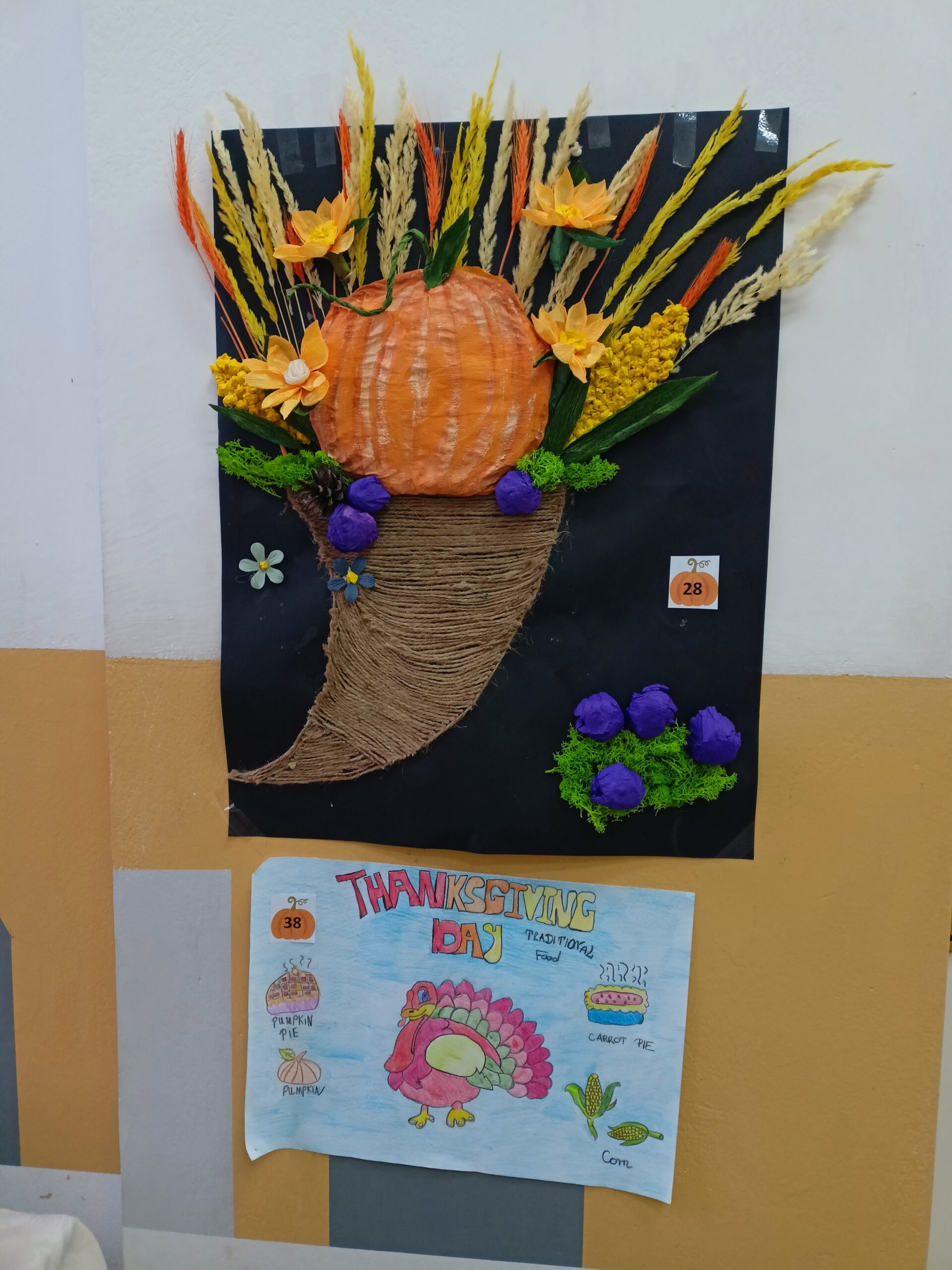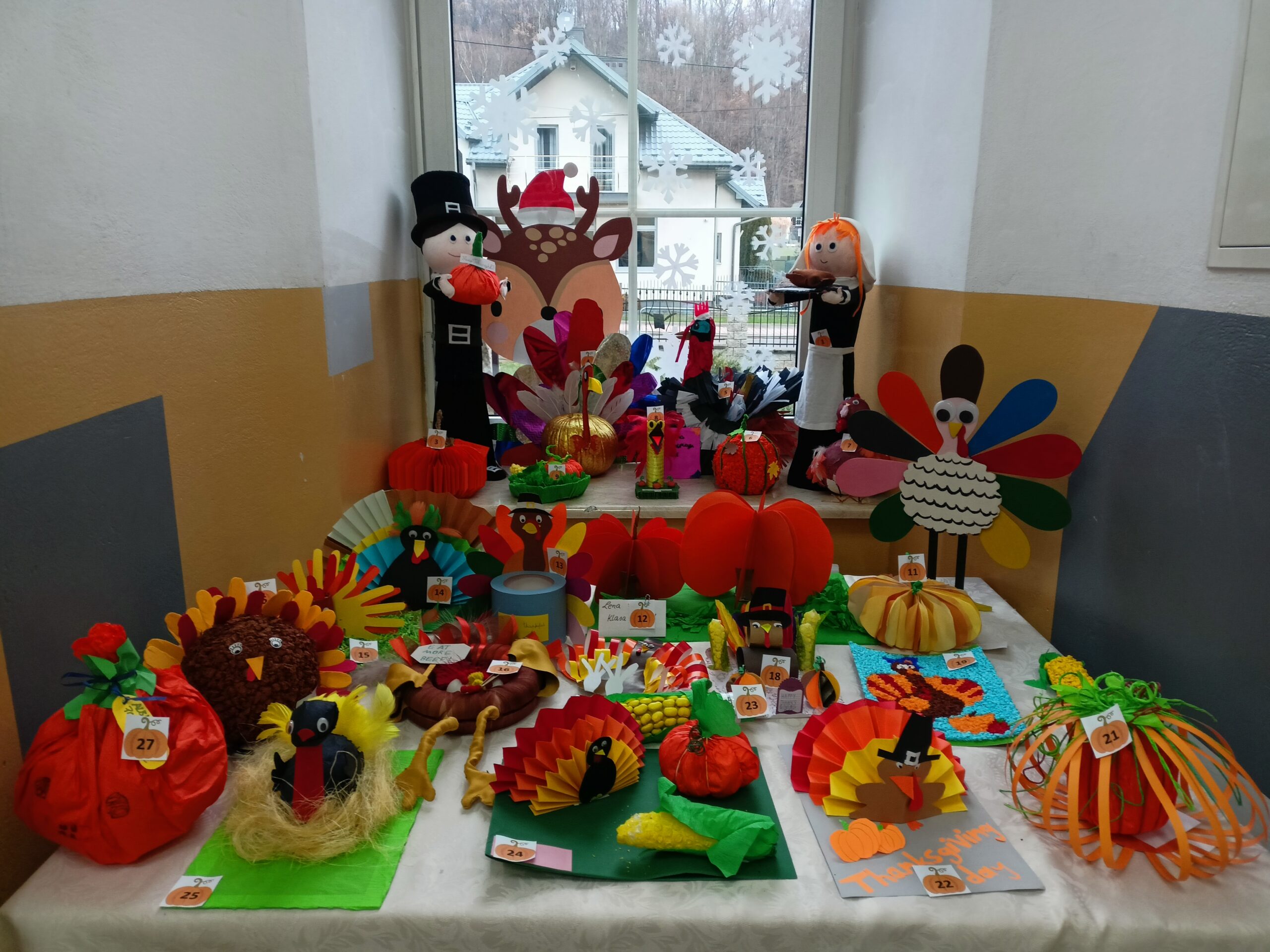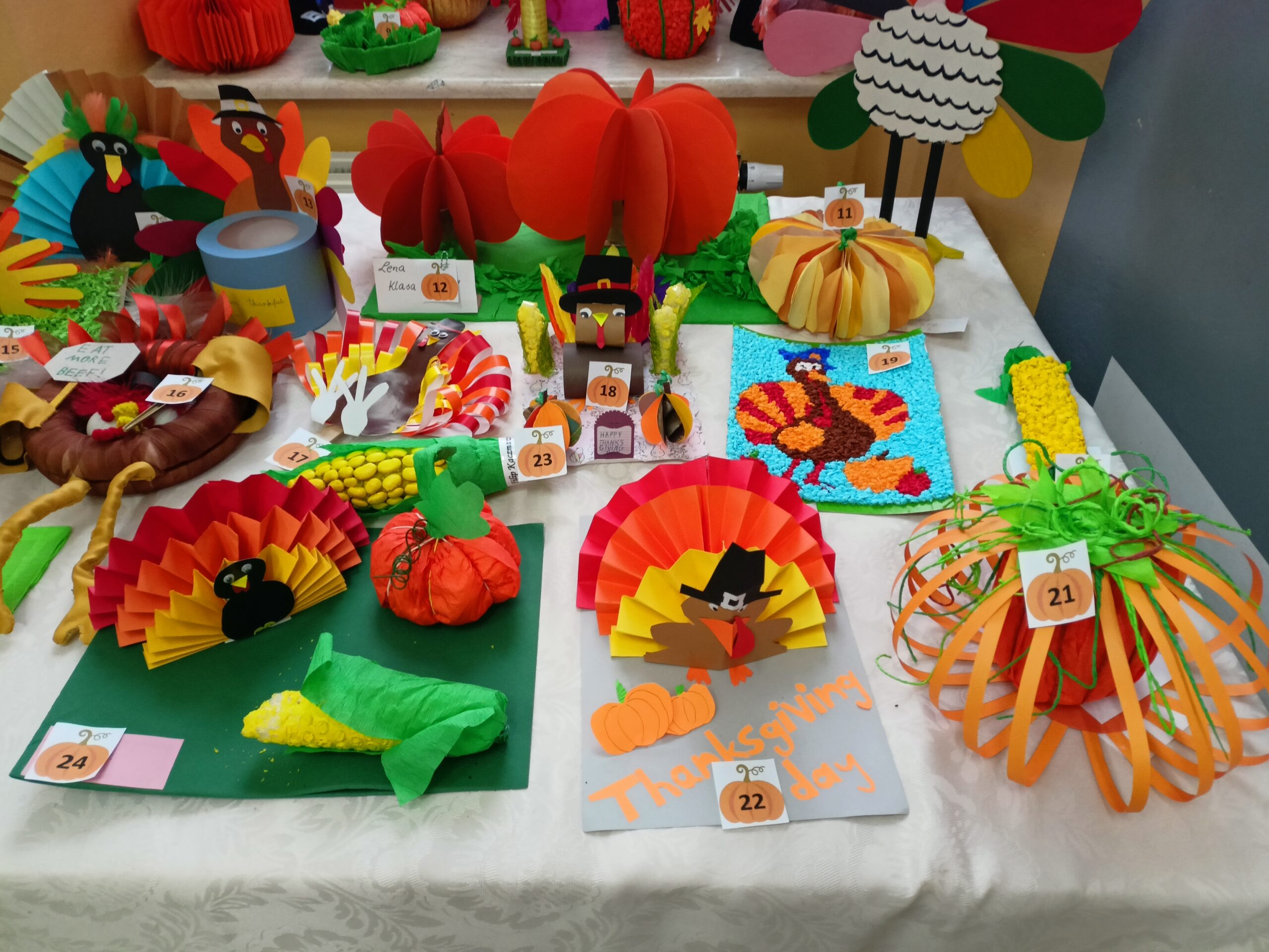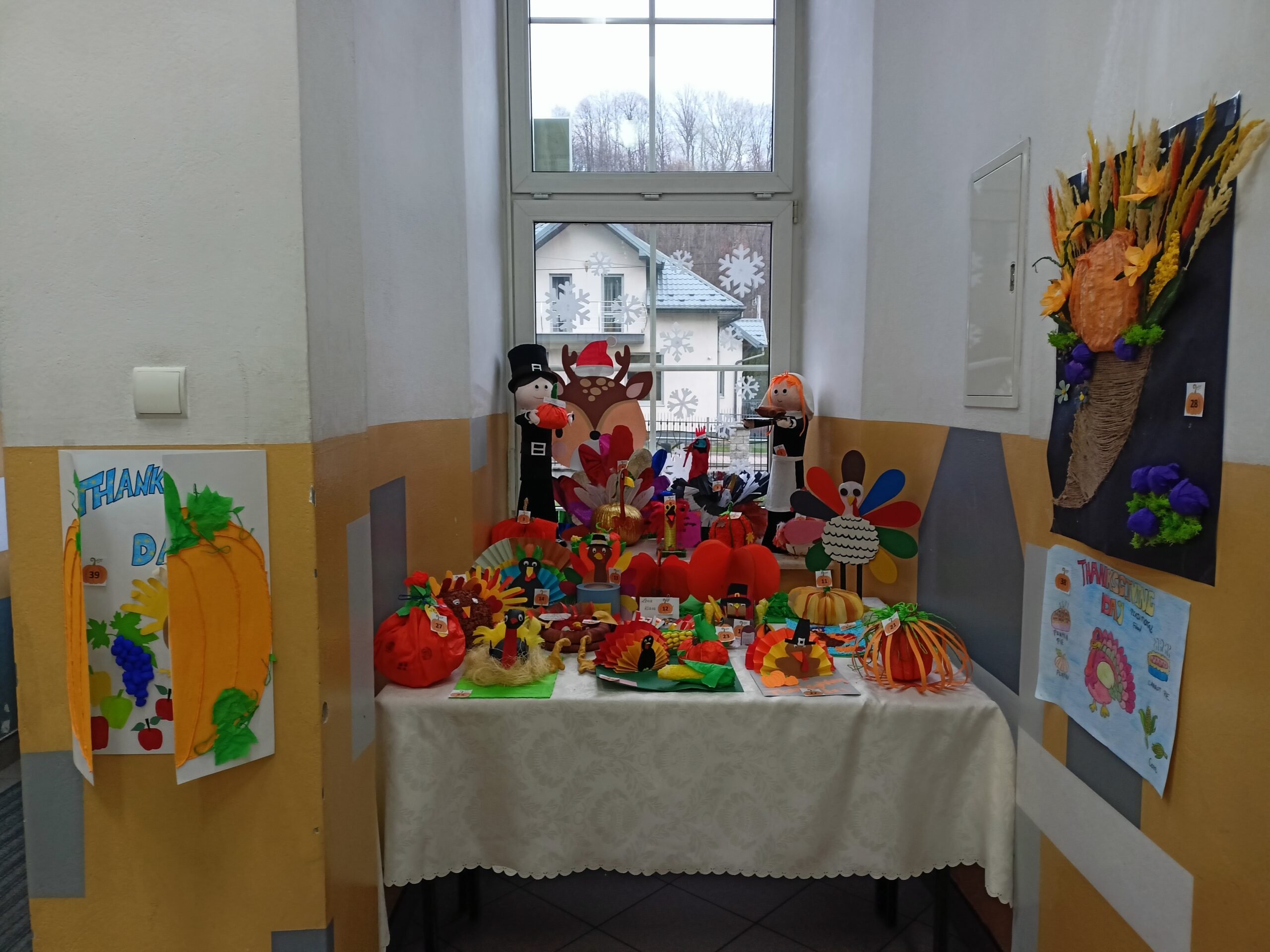 W ostatni czwartek listopada przypada Thanksgivig Day tzw. Święto Dziękczynienia, które jest bardzo hucznie celebrowane w Stanach Zjednoczonych oraz Kanadzie. Jego ranga porównywalna jest do Bożego Narodzenia. Historia tego święta związana jest z przybyciem na amerykańską ziemię pierwszych osadników z Europy, którzy zamieszkali w Plymouth. Rok później odbyły się dożynki, które były formą podziękowania za obfite plony. Thanksgiving Day kojarzony jest ze spotkaniami z najbliższymi przy wspólnym stole oraz tradycyjnymi potrawami, które goszczą we wszystkich domach m.in. pieczonym indykiem, żurawiną, ciastem dyniowym, kukurydzą, ziemniakami. Po świątecznej kolacji Amerykanie zasiadają przed telewizorami, by obejrzeć największą paradę – Macy’s Thanksgiving Day Parade, gdzie pojawiają się ogromne platformy i barwny korowód złożony z cyrkowców, artystów. W dzień następny przypada święto wyprzedaży Black Friday. By przybliżyć tematykę tego święta nauczyciele języka angielskiego zorganizowali konkurs plastyczny odnoszący się do symboli i zwyczajów Thanksgiving Day. Złożono 40 prac, z których każda wykonana była różną techniką. Komisja konkursowa miała nie łatwe zadanie, ponieważ prace były bardzo ciekawe i estetycznie wykonane. Każdy uczestnik otrzymał pamiątkowy dyplom oraz upominek. [MS]