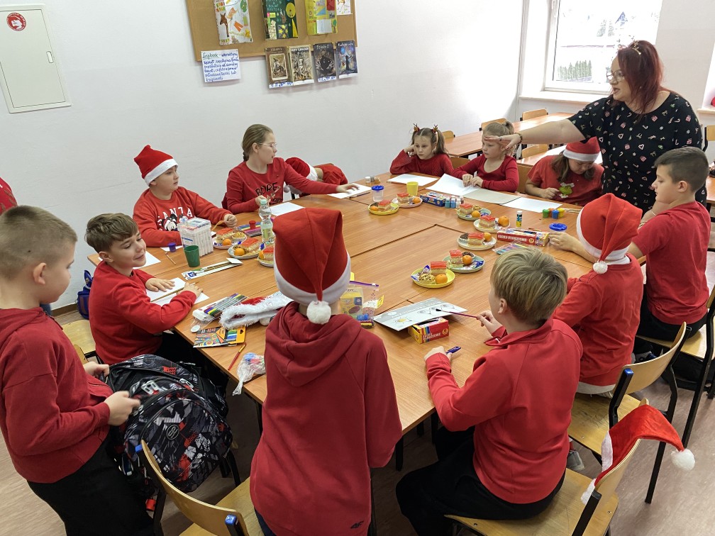 W piątek, 5 grudnia, klasa 4b miała okazję uczestniczyć w niezwykłej lekcji języka polskiego – lekcji kleksografii, niczym z Akademii pana Kleksa. Uczniowie wykonywali kleksy zgodnie ze wskazówkami z lektury, świetnie się przy tym bawiąc. Całości odświętnej atmosfery dopełnił słodki mikołajkowy poczęstunek przygotowany przez rodziców oraz wesoła muzyka. [AJ]