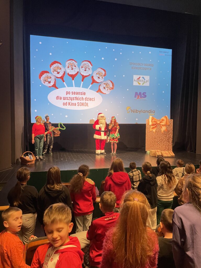 Mikołajowe kino 8 grudnia 2025 8 grudnia 2025 Informacje W piątek 5 grudnia klasy drugie pojechały do kina Sokół na spotkanie z Mikołajem oraz film ,,Mysz – masz od święta’’ [DŁ]
