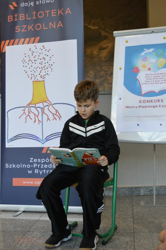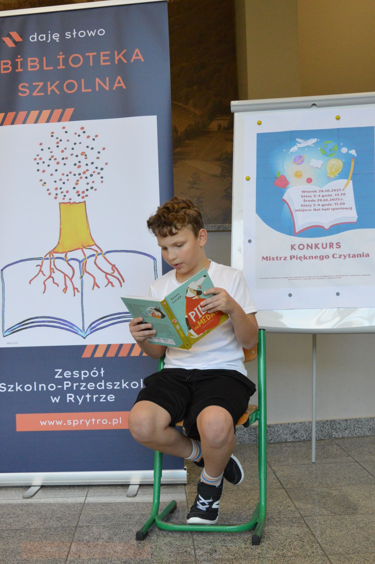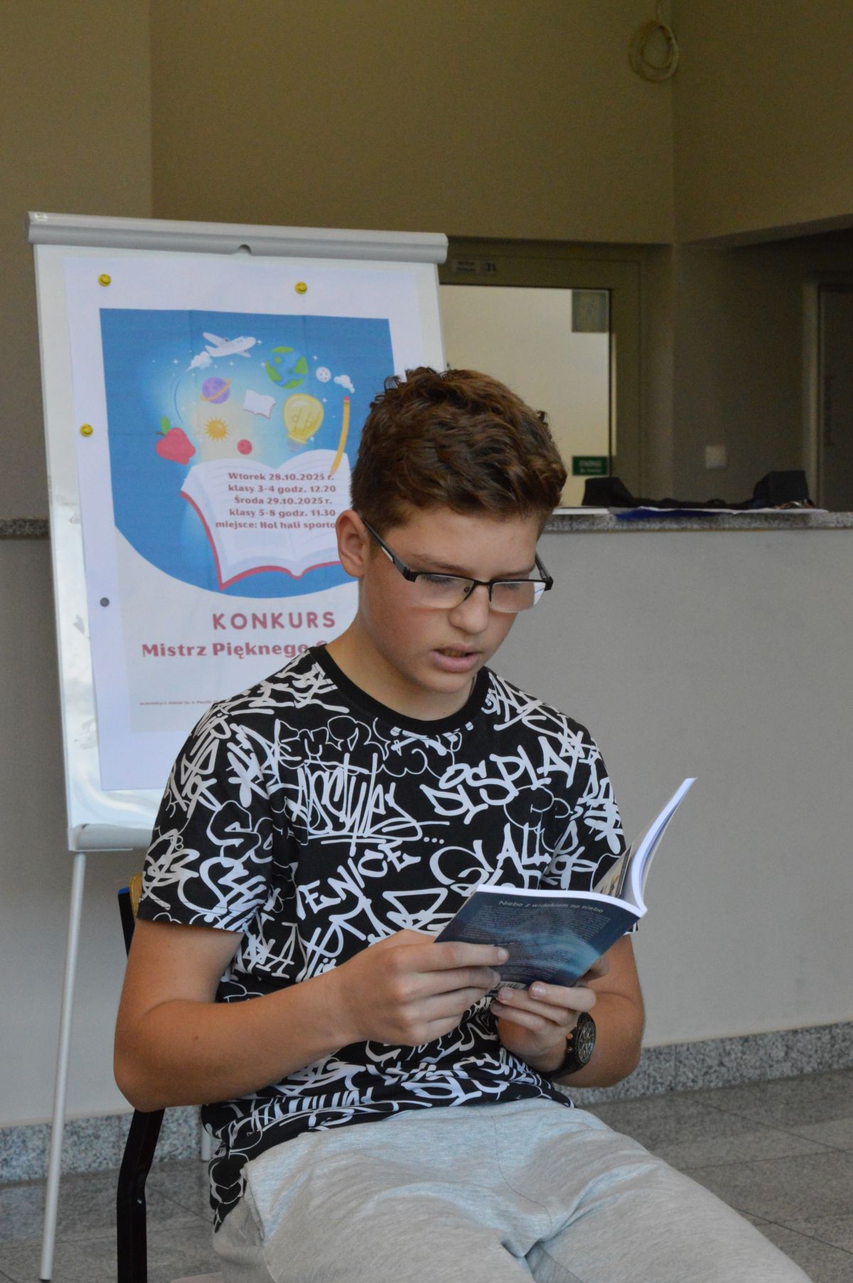 Biblioteka szkolna zorganizowała w dniach 28-29.10.2025 r. konkurs pt. „Mistrz Pięknego Czytania”. Uczestników konkursu wytypowały Polonistki – po jednym z każdej klasy. Uczestnicy prezentowali swoje umiejętności w trzech grupach wiekowych klas: 3-4, 5-6, 7-8. Czytane teksty, pochodziły z książek zakupionych w ramach Narodowego Programu Rozwoju Czytelnictwa. Laureatów konkursu poznamy podczas akademii z okazji Święta Niepodległości. [PK]