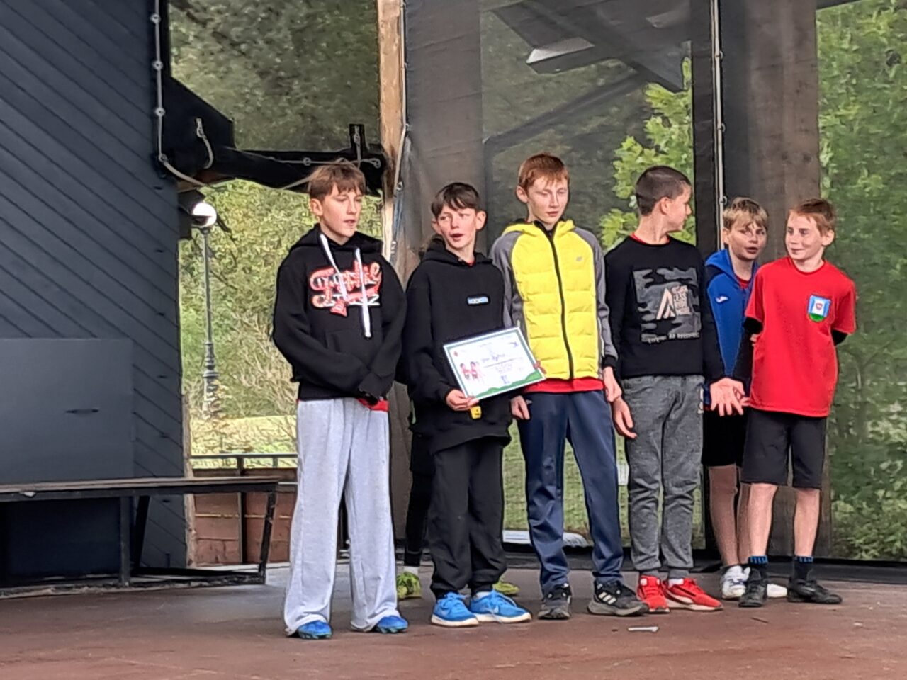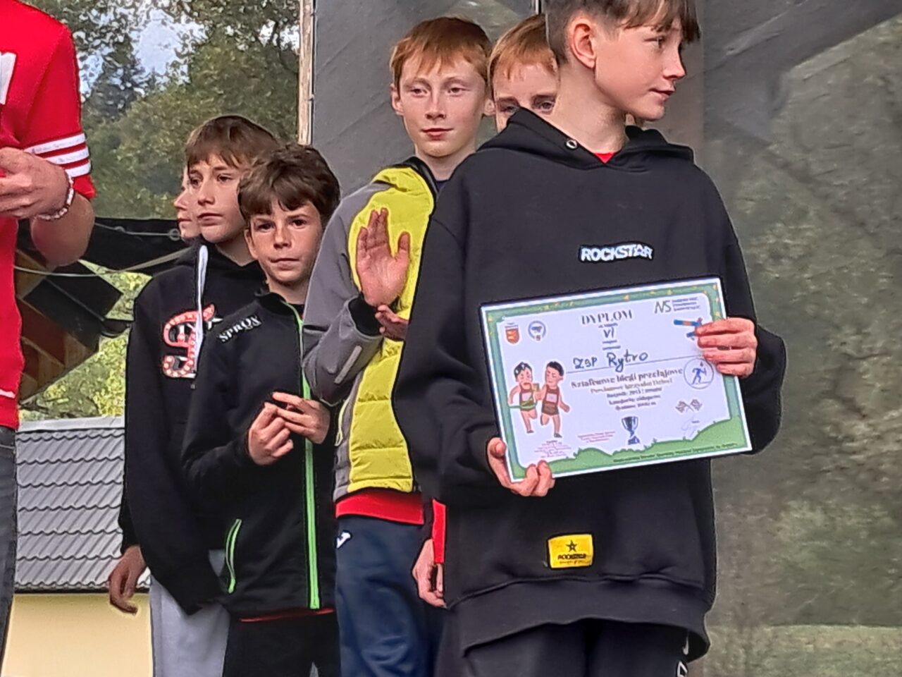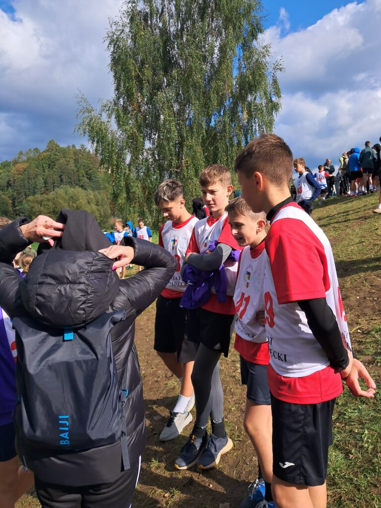 W dniu 2.10.2025 r. w Muszynie – Zapopradzie, odbyły się Mistrzostwa Powiatu Nowosądeckiego w ramach Igrzysk Dzieci i Młodzieży Szkolnej w sztafetowych biegach przełajowych dziewcząt i chłopców. Celem imprezy, była popularyzacja biegów przełajowych wśród dzieci i młodzieży oraz wyłonienie mistrza powiatu nowosądeckiego. W zawodach zmagało się 17 sztafet dziewczyn i 18 sztafet chłopców. Naszą szkołę reprezentowały cztery sztafety w dwóch grupach wiekowych IV-VI i VII-VIII. Nasi zawodnicy wykazali się dużym zaangażowaniem i wolą walki. Szczególny sukces odniosła sztafeta dziewcząt starszych VII-VIII, zajmując I miejsce i tym samym awansują na zawody wojewódzkie 9.10.2025 r. w Nowym Targu. Wysokie miejsce IV, zajęła grupa chłopców starszych. Młodsza sztafeta chłopców, uplasowała się na miejscu VI. Gratulujemy wszystkim uczestnikom znakomitych wyników i sportowej postawy! [BK]
