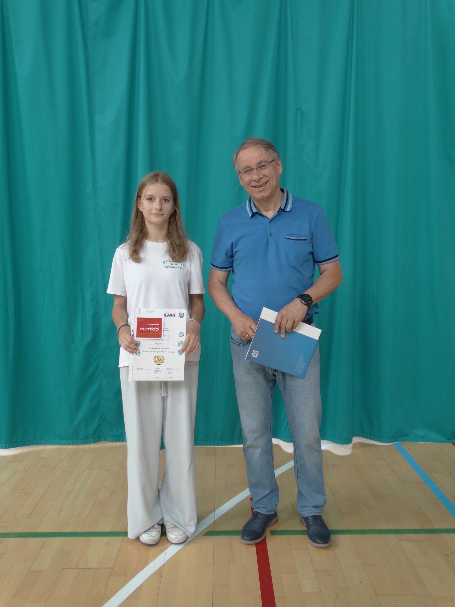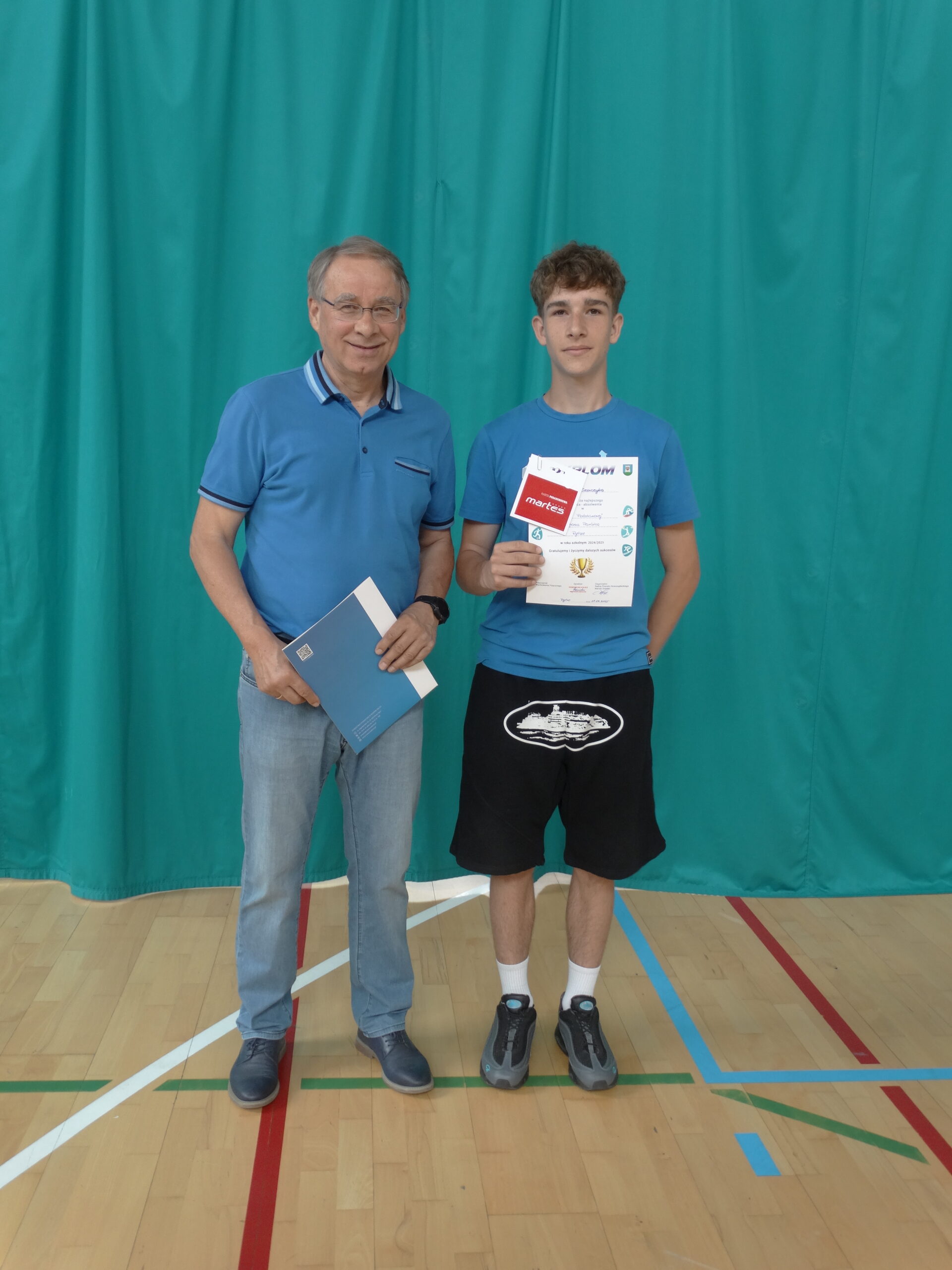 Jak co roku, zostały wręczone nagrody dla najlepszych sportowców absolwentów, ufundowane przez Radnego Powiatowego pana Mariana Dobosza. Za wysokie osiągnięcia sportowe nagrodzeni zostali Oliwka Żrołka oraz Szymon Szewczyk. Z okazji wakacji życzymy absolwentom wspaniałego wypoczynku. Abyście we wrześniu wrócili do nowych szkół średnich pełni energii. Życzymy Wam wielu sukcesów i satysfakcji w rozwijaniu swoich umiejętności sportowych. Panu Doboszowi dziękujemy za coroczne fundowanie nagród, dla absolwentów naszej szkoły. [Nauczyciele wf MM, BK]