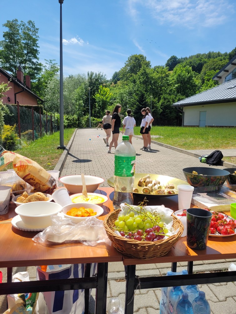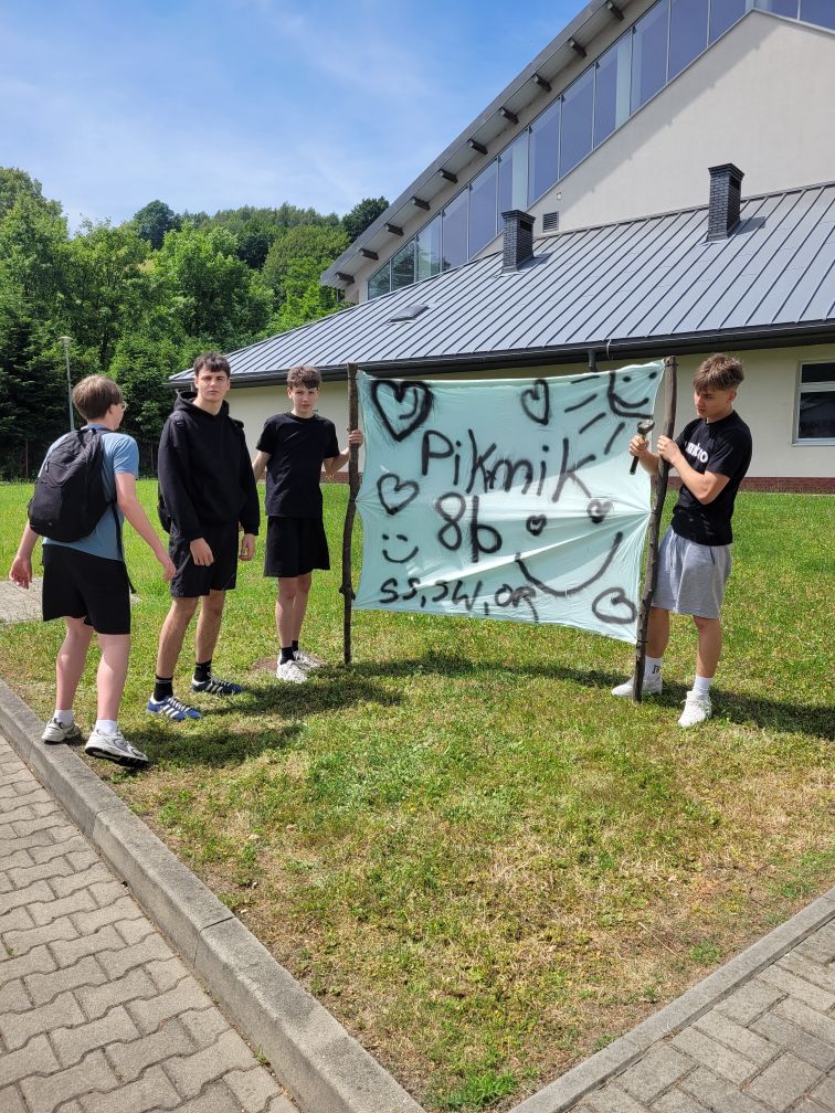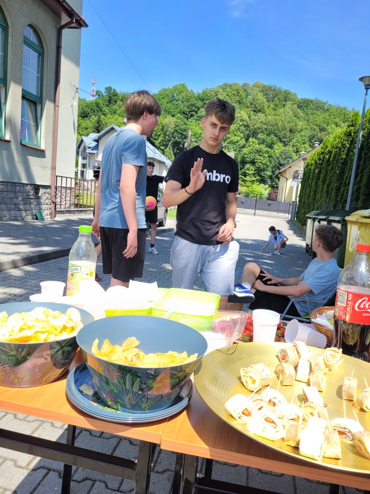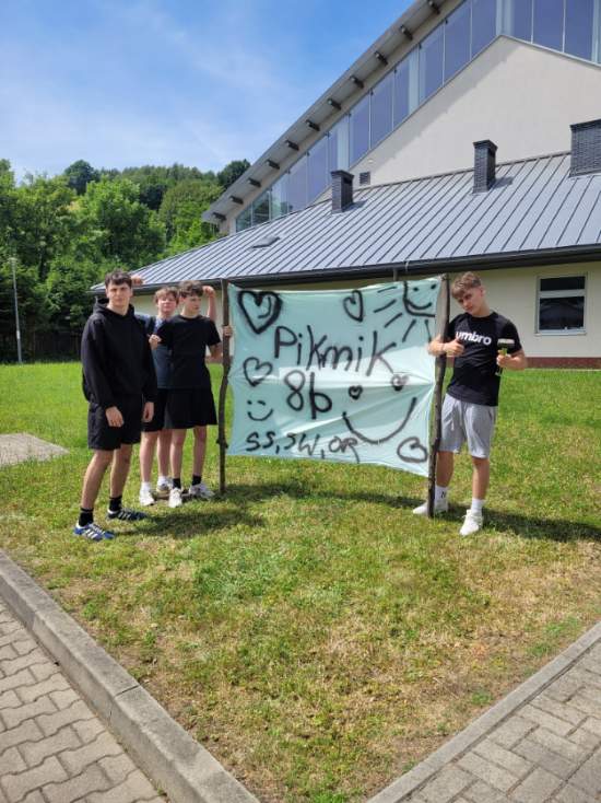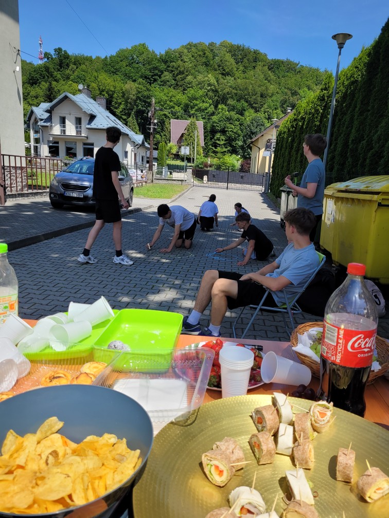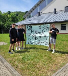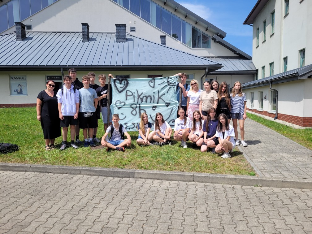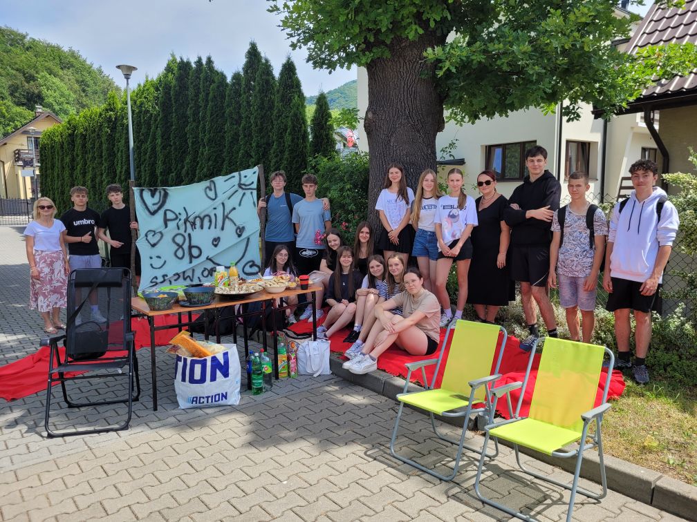 W poniedziałek, 23 czerwca, klasa 8b wraz z panią Anną Janisz zorganizowała pożegnalny piknik edukacyjno-sportowy. Uczniowie przygotowali mnóstwo smakołyków, które spożywali na świeżym powietrzu. Był to czas relaksu i zabawy, połączony z aktywnością. Uczniowie mieli do wyboru różnorodne gry i zabawy sportowe, a także quizy z wiedzy ogólnej, kalambury i wiele innych atrakcji. Spotkanie było również okazją do przypomnienia zasad bezpieczeństwa w czasie zbliżających się wakacji. Na pikniku zjawili się także zaproszeni goście: wychowawca – pani Iwona Bodziony, pani dyrektor Justyna Łękawska oraz ksiądz Łukasz Pawłowski. Wszyscy będą miło wspominać ten czas, spędzony w przyjaznej, swobodnej atmosferze, pełnej wesołych rozmów, śmiechu i wspólnej zabawy. [AJ]
