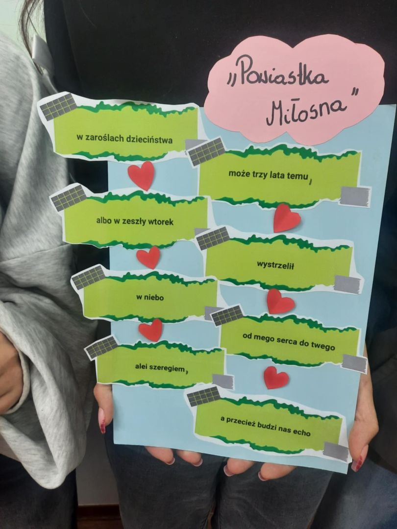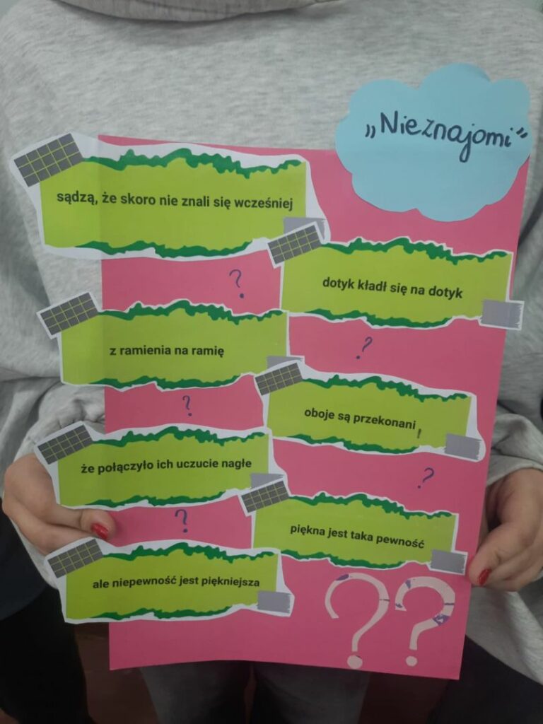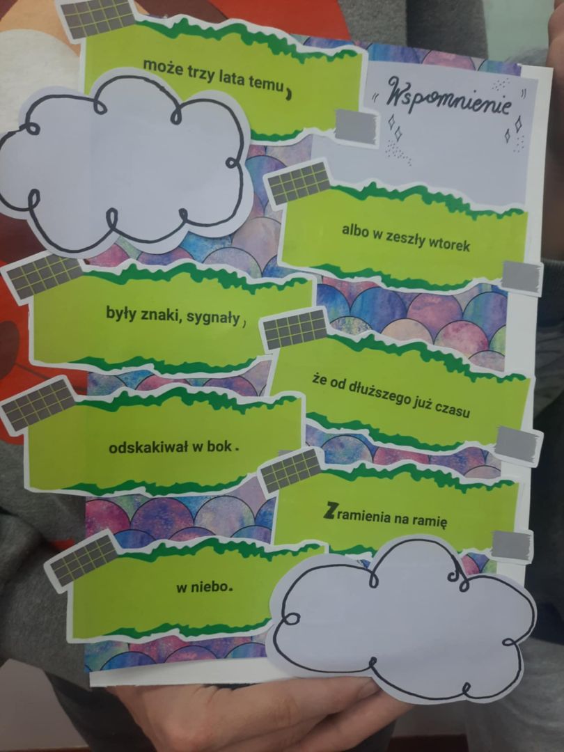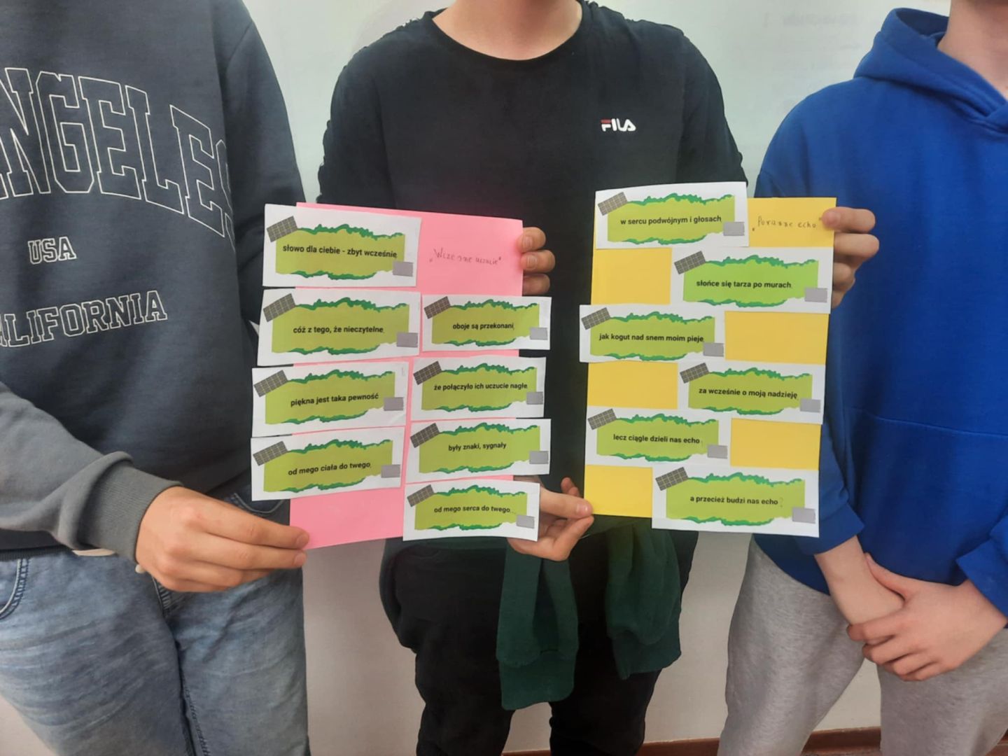 „Polak ma essę!” 26 maja 2025 26 maja 2025 Bez kategorii Kończymy drugą edycję Ogólnopolskiego Projektu Edukacyjnyjnego „Polak ma essę!”. 19 maja 2025 r. klasa 8a tworzyła ze skrawków poetyckich własne autorskie liryki. BT