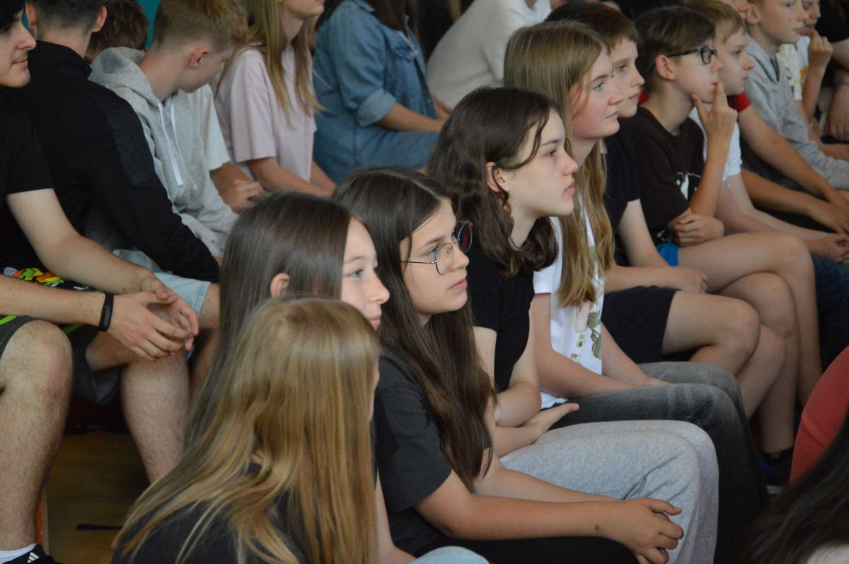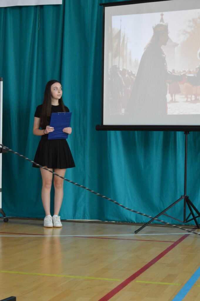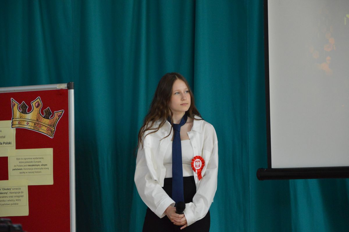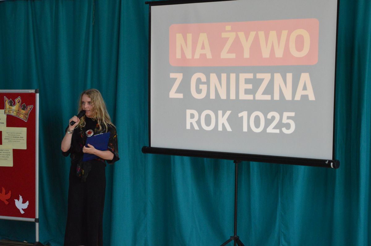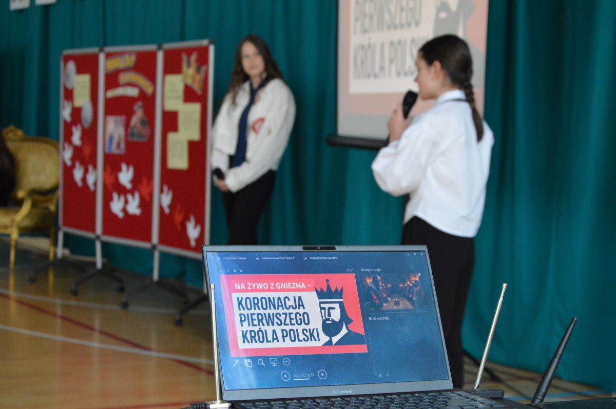 13 czerwca 2025 roku w naszej szkole odbyła się wyjątkowa akademia z okazji 1000-lecia koronacji Bolesława Chrobrego – pierwszego króla Polski. Wydarzenie to miało szczególny charakter, ponieważ było nie tylko formą uczczenia ważnej rocznicy, ale również nowatorską lekcją historii, przygotowaną przez nauczyciela tego przedmiotu z wykorzystaniem nowoczesnych narzędzi sztucznej inteligencji. Dzięki interaktywnym prezentacjom, głosom syntezowanym na podstawie kronik i narracjom prowadzonym w stylu średniowiecznych gawędziarzy, uczniowie zostali przeniesieni w czasie do epoki wczesnego średniowiecza. W symboliczny sposób uczestniczyli w koronacji Bolesława Chrobrego, poznali realia życia na dworze piastowskim oraz dowiedzieli się, jak wyglądały początki polskiej państwowości. W ramach obchodów rocznicowych uczniowie wzięli również udział w spotkaniu z grupą rekonstruktorów historycznych, którzy przybliżyli codzienne życie pierwszych Słowian. Uczestnicy mieli okazję zobaczyć repliki dawnych strojów, broni i przedmiotów codziennego użytku, a także wysłuchać opowieści o zwyczajach, wierzeniach i organizacji społecznej naszych przodków. Akademia była doskonałą okazją do nauki poprzez doświadczenie – łączyła historię, nowoczesne technologie i żywą lekcję przeszłości. Uczniowie z entuzjazmem uczestniczyli w wydarzeniu, które na długo pozostanie w ich pamięci. [TS]
