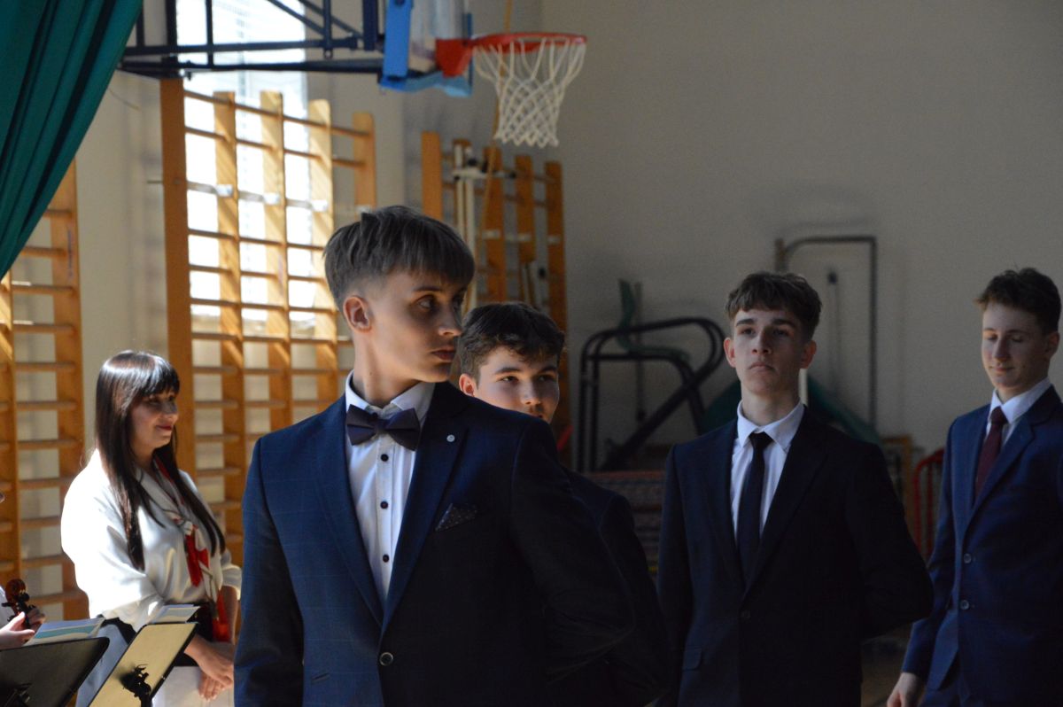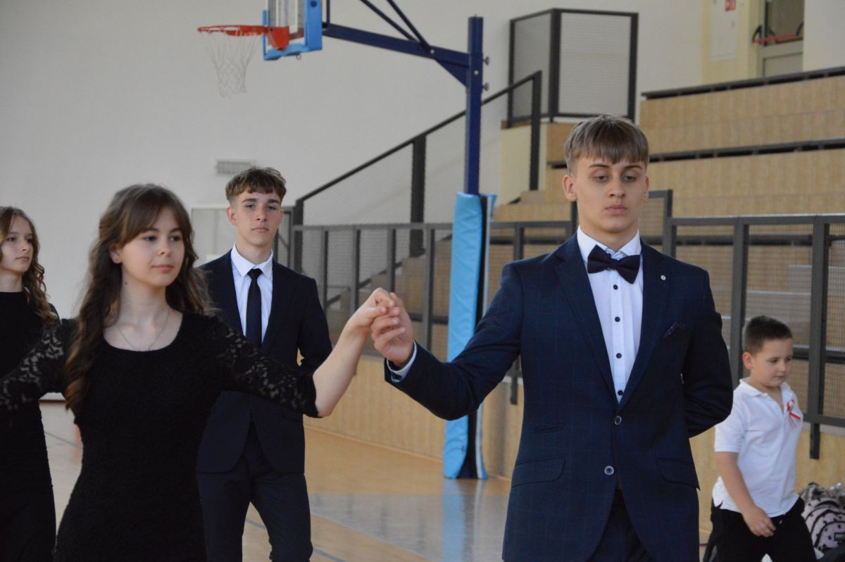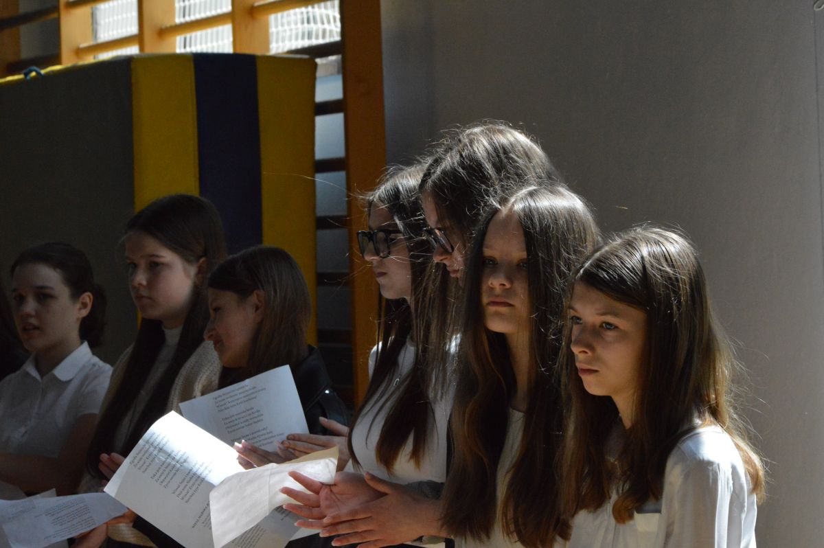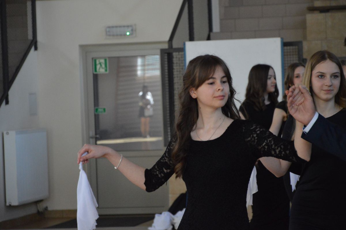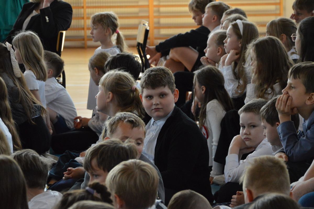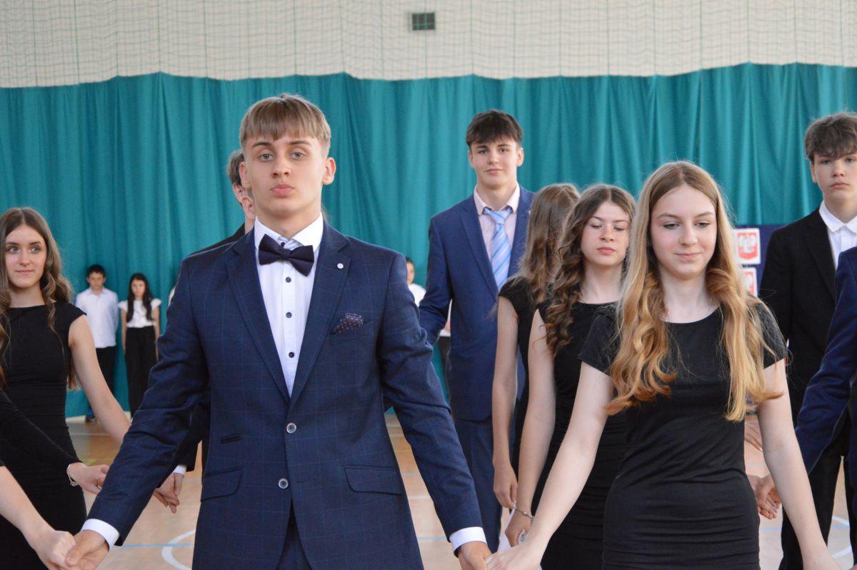 W tym roku uroczystość upamiętniająca Święto Trzeciego Maja wybrzmiała u nas trzema polonezami: „Trzeciego Maja”, „Pamięć w nas” i polonezem Kilara z Pana Tadeusza. Ten trzeci wytańczyła klasa 8b i było pięknie!. Wydarzenie przygotowały pani Dagmara i pani Beata. Nie zabrakło pani Renaty z chórem oraz skrzypaczek Moniki, Kingi i Emilki. Uroczystość uświetniła obecność zacnych gości, w osobach pana Wójta oraz radnych pana Tomasza Kotarby i pani Katarzyny Obrzud. Dało się również zauważyć panią Zofię, emerytowaną nauczycielkę naszej szkoły, która obserwowała wnuka prezentującego się w polonezie. Akademię zakończyła pani dyrektor Justyna Łękawska, życząc nam słonecznych majowych świąt. [PK]