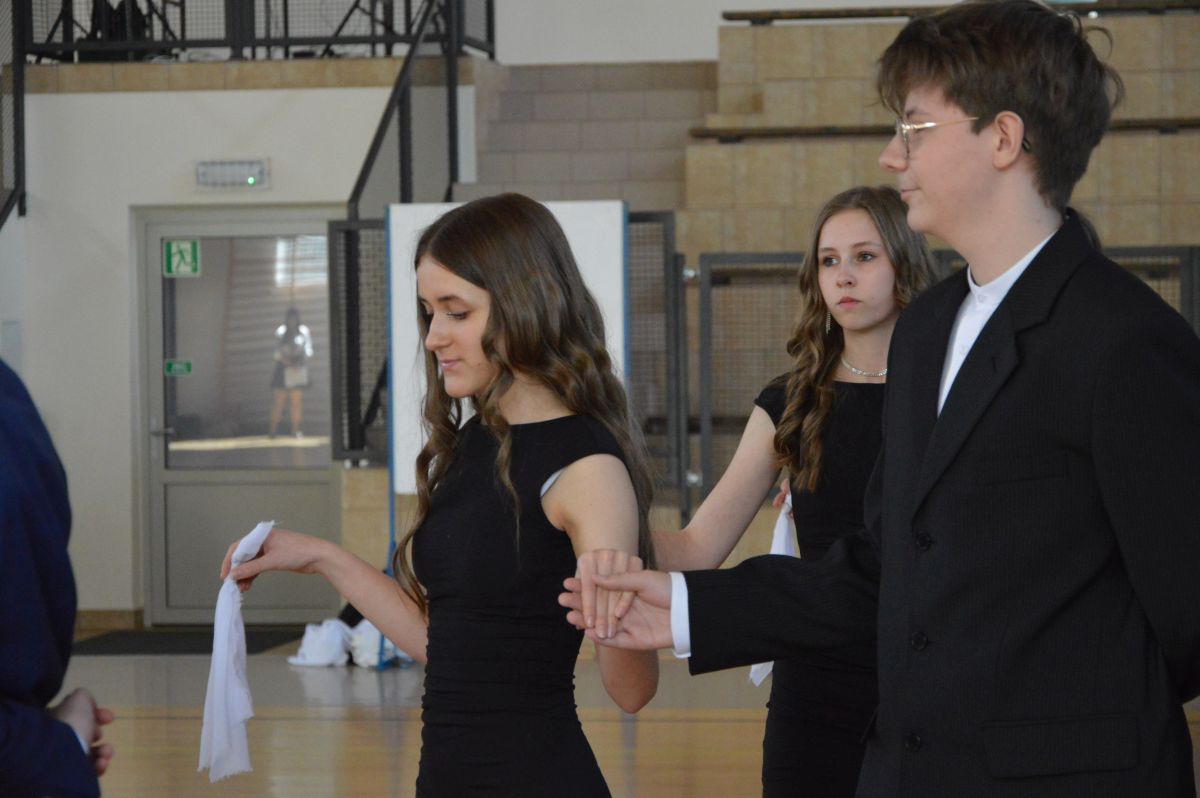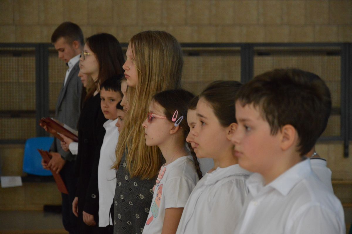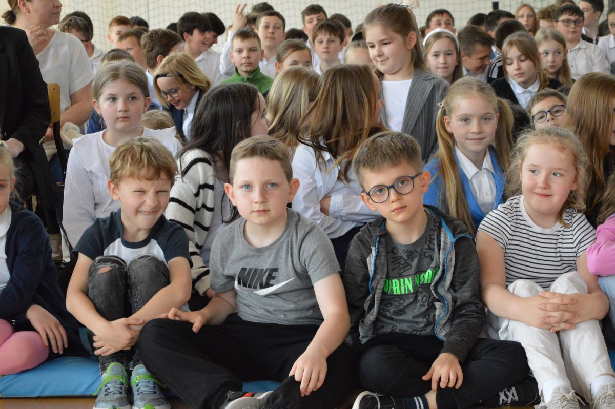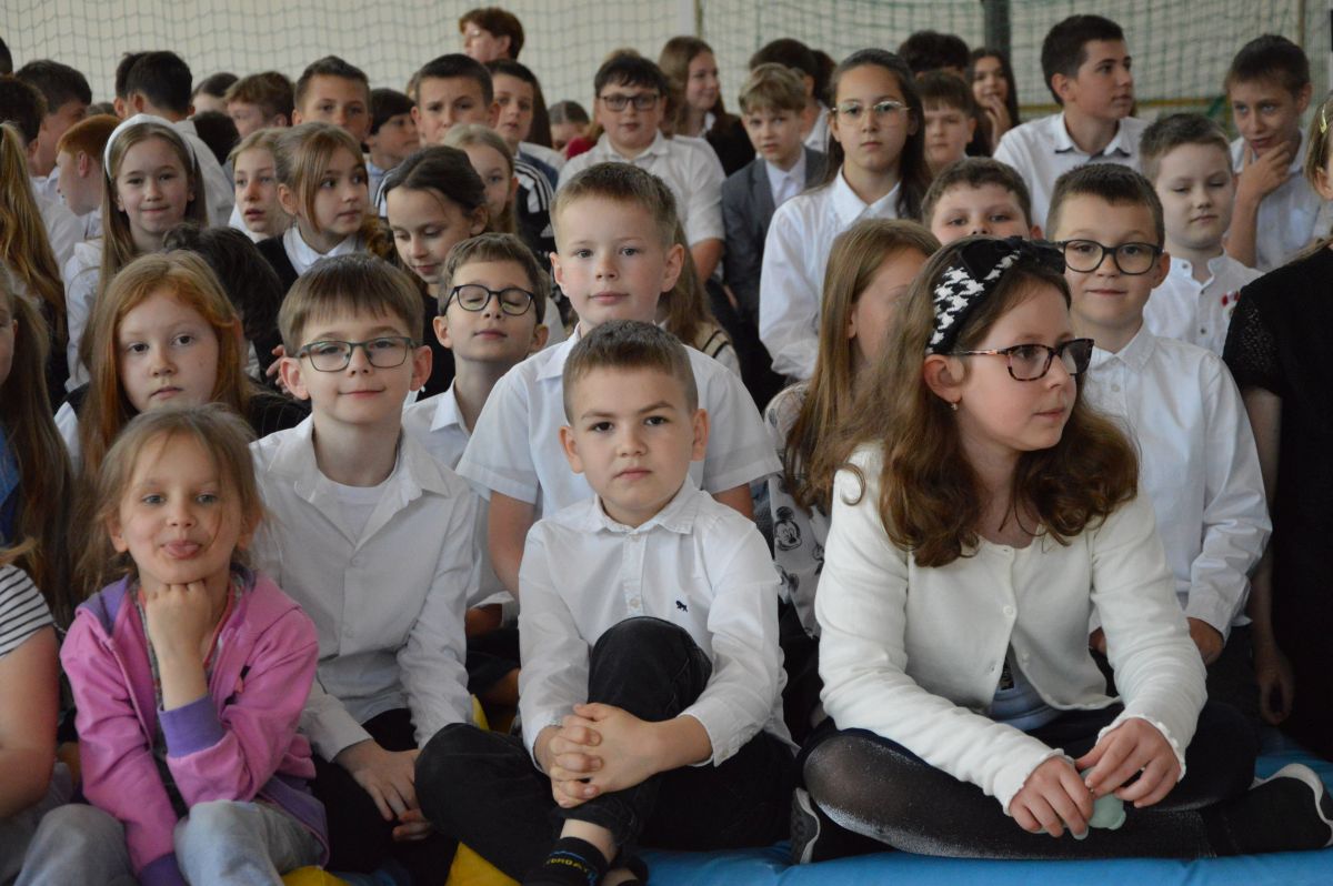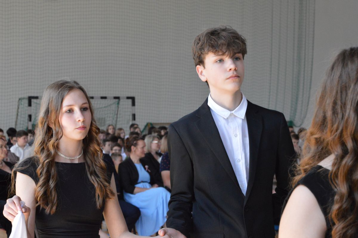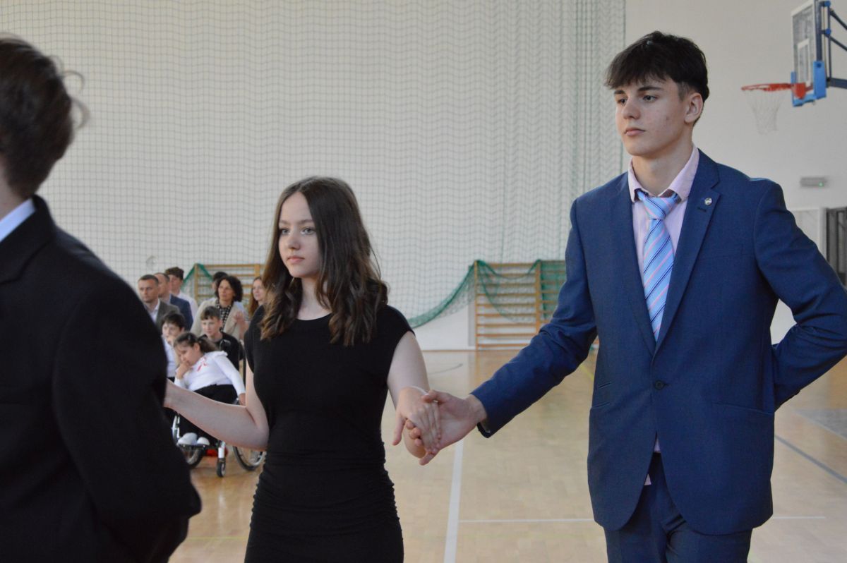 W tym roku uroczystość upamiętniająca Święto Trzeciego Maja wybrzmiała u nas trzema polonezami: „Trzeciego Maja”, „Pamięć w nas” i polonezem Kilara z Pana Tadeusza. Ten trzeci wytańczyła klasa 8b i było pięknie!. Wydarzenie przygotowały pani Dagmara i pani Beata. Nie zabrakło pani Renaty z chórem oraz skrzypaczek Moniki, Kingi i Emilki. Uroczystość uświetniła obecność zacnych gości, w osobach pana Wójta oraz radnych pana Tomasza Kotarby i pani Katarzyny Obrzud. Dało się również zauważyć panią Zofię, emerytowaną nauczycielkę naszej szkoły, która obserwowała wnuka prezentującego się w polonezie. Akademię zakończyła pani dyrektor Justyna Łękawska, życząc nam słonecznych majowych świąt. [PK]
