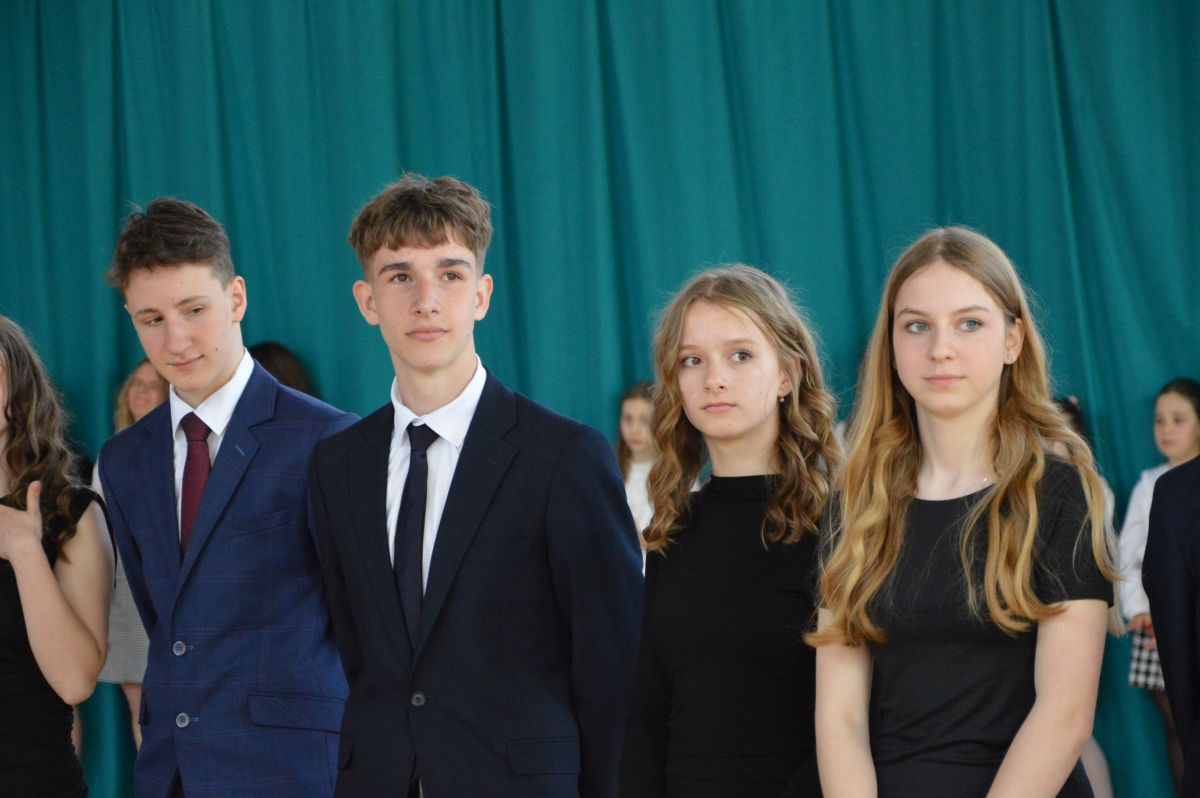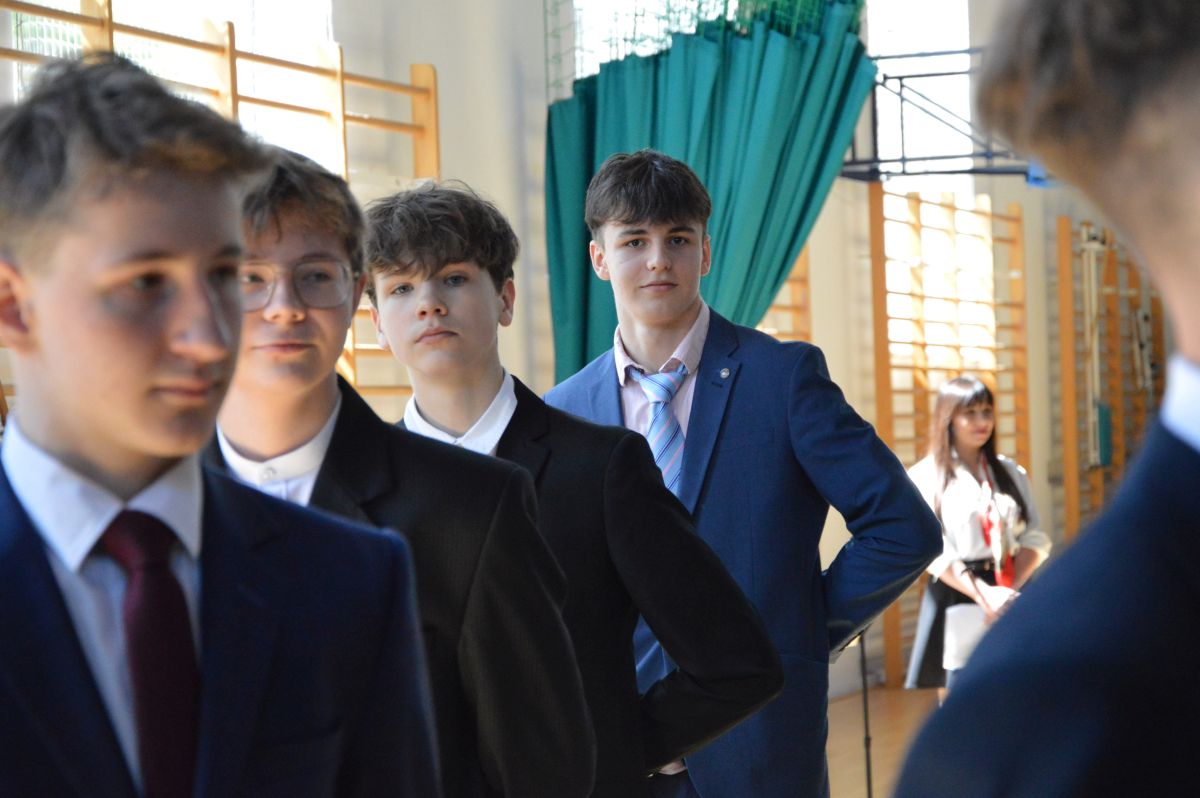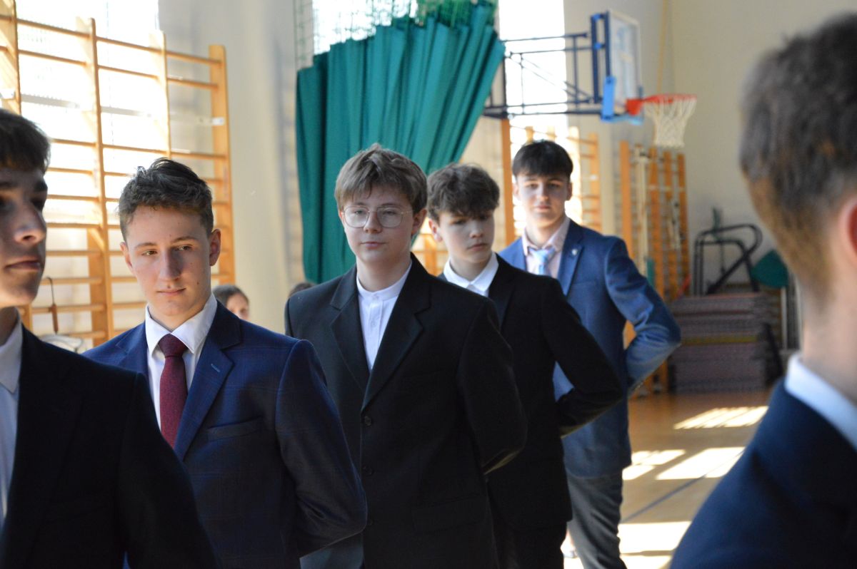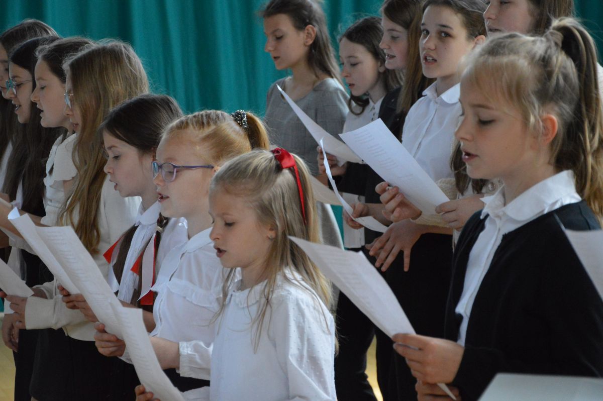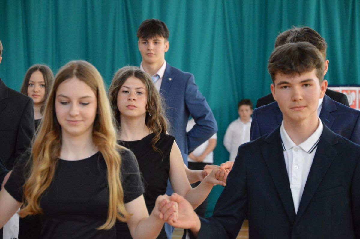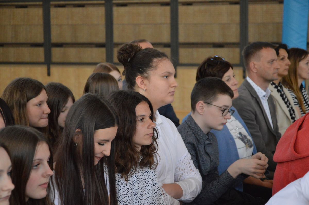 W tym roku uroczystość upamiętniająca Święto Trzeciego Maja wybrzmiała u nas trzema polonezami: „Trzeciego Maja”, „Pamięć w nas” i polonezem Kilara z Pana Tadeusza. Ten trzeci wytańczyła klasa 8b i było pięknie!. Wydarzenie przygotowały pani Dagmara i pani Beata. Nie zabrakło pani Renaty z chórem oraz skrzypaczek Moniki, Kingi i Emilki. Uroczystość uświetniła obecność zacnych gości, w osobach pana Wójta oraz radnych pana Tomasza Kotarby i pani Katarzyny Obrzud. Dało się również zauważyć panią Zofię, emerytowaną nauczycielkę naszej szkoły, która obserwowała wnuka prezentującego się w polonezie. Akademię zakończyła pani dyrektor Justyna Łękawska, życząc nam słonecznych majowych świąt. [PK]
