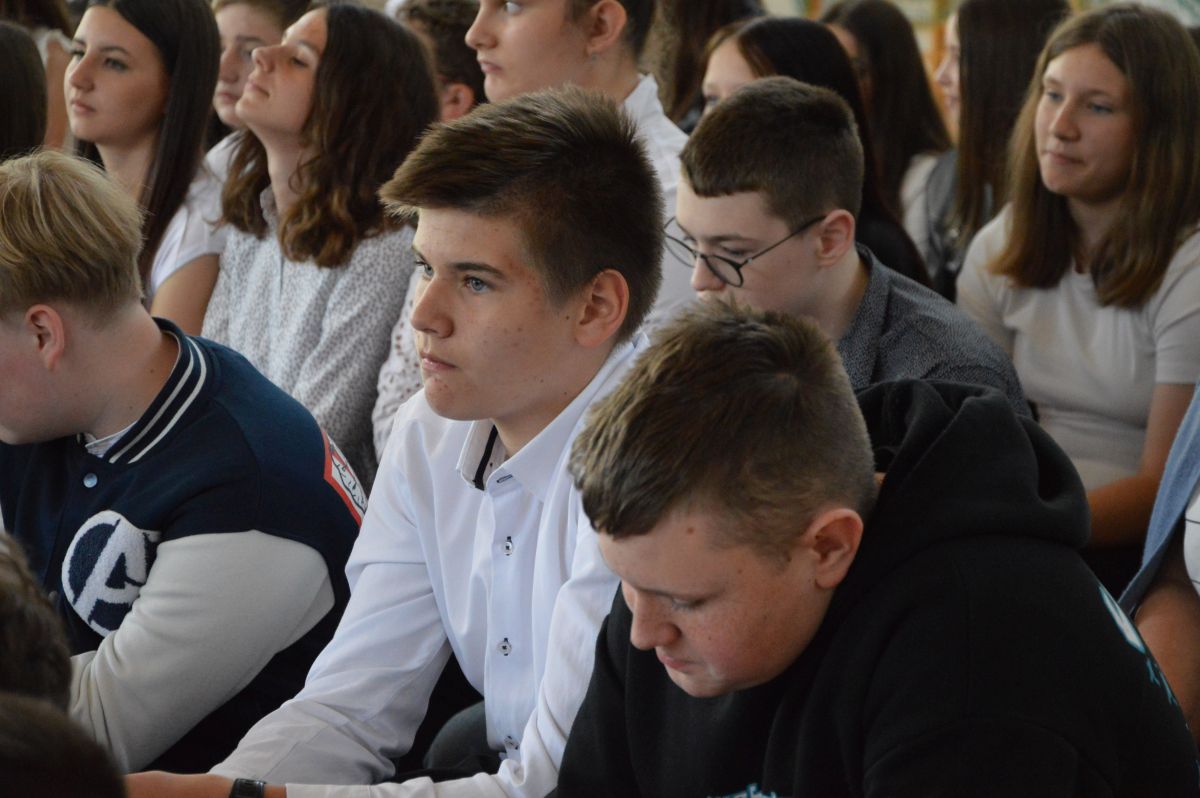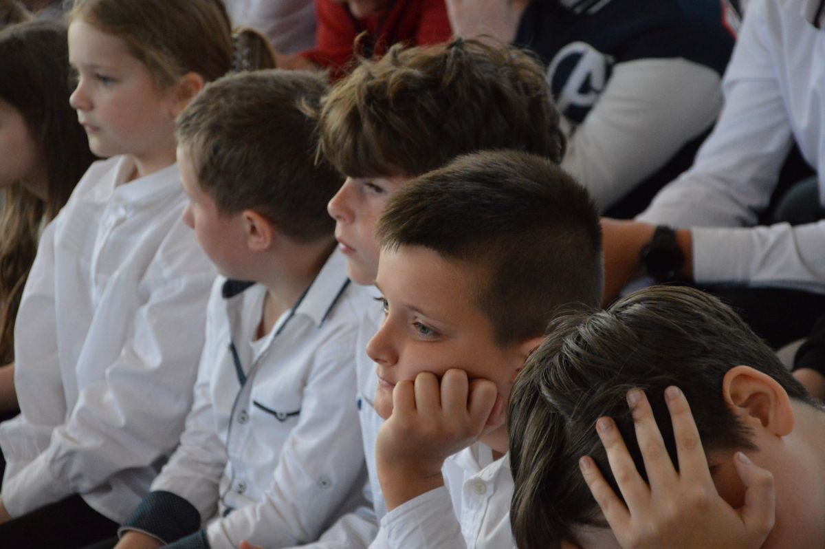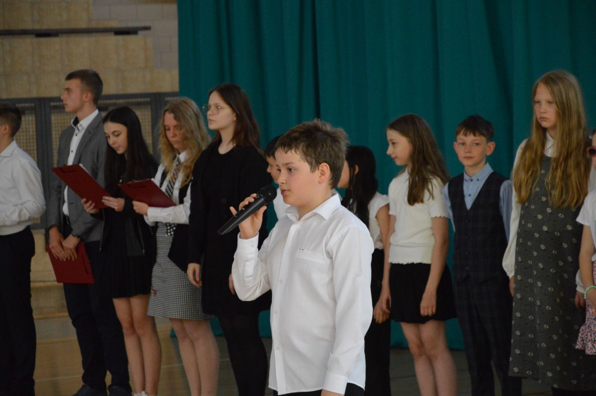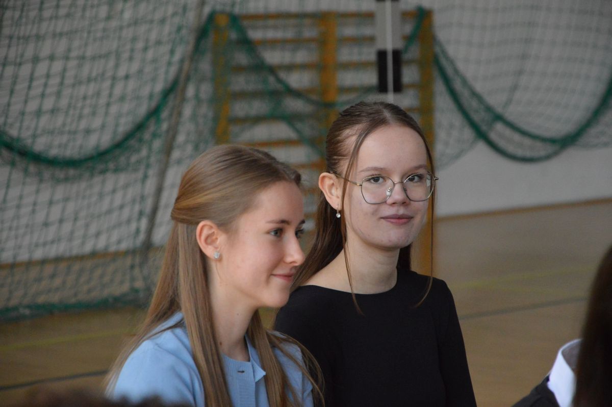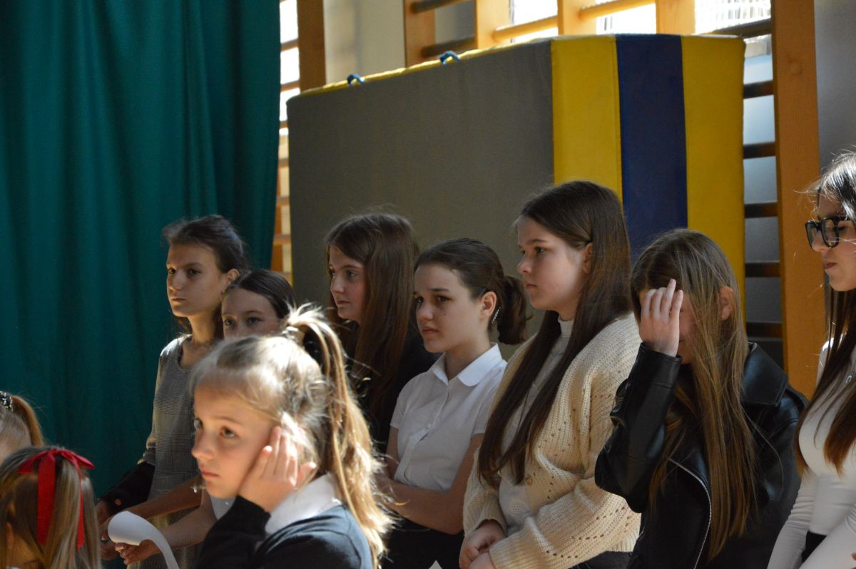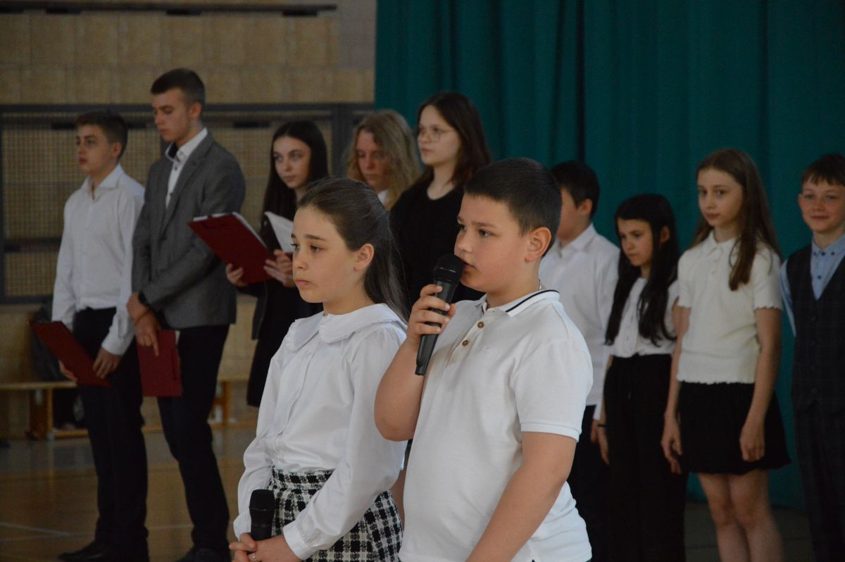 W tym roku uroczystość upamiętniająca Święto Trzeciego Maja wybrzmiała u nas trzema polonezami: „Trzeciego Maja”, „Pamięć w nas” i polonezem Kilara z Pana Tadeusza. Ten trzeci wytańczyła klasa 8b i było pięknie!. Wydarzenie przygotowały pani Dagmara i pani Beata. Nie zabrakło pani Renaty z chórem oraz skrzypaczek Moniki, Kingi i Emilki. Uroczystość uświetniła obecność zacnych gości, w osobach pana Wójta oraz radnych pana Tomasza Kotarby i pani Katarzyny Obrzud. Dało się również zauważyć panią Zofię, emerytowaną nauczycielkę naszej szkoły, która obserwowała wnuka prezentującego się w polonezie. Akademię zakończyła pani dyrektor Justyna Łękawska, życząc nam słonecznych majowych świąt. [PK]