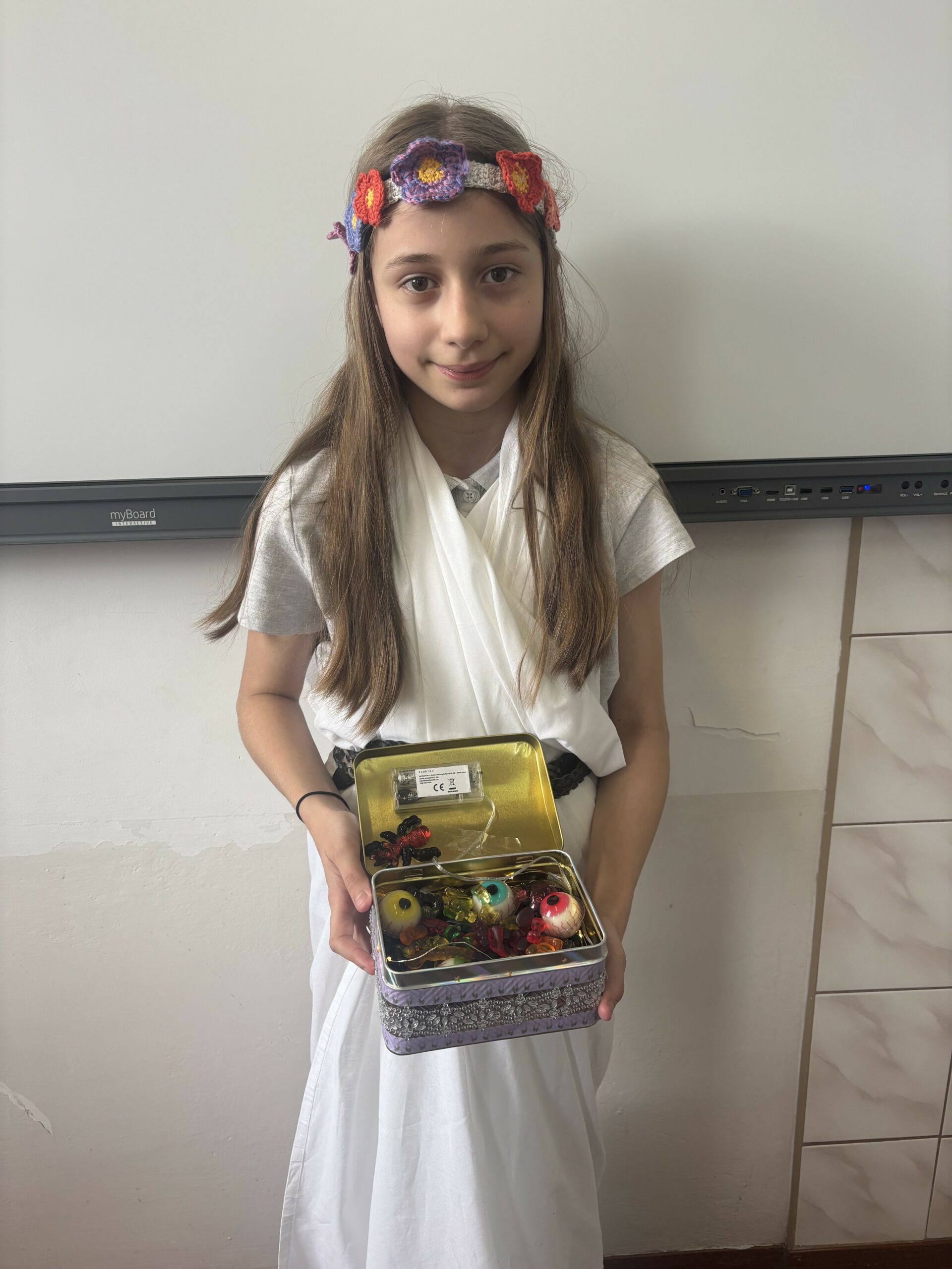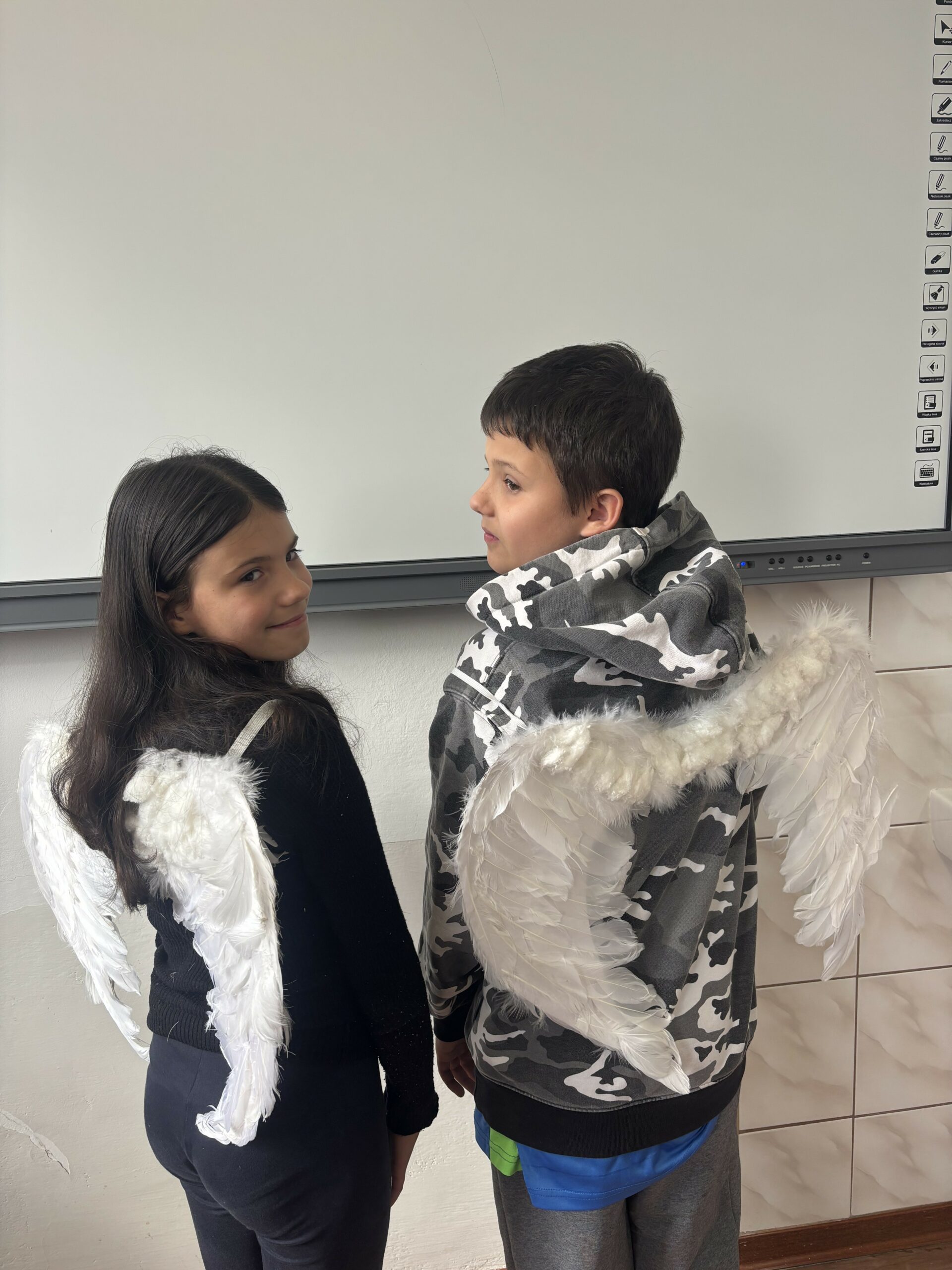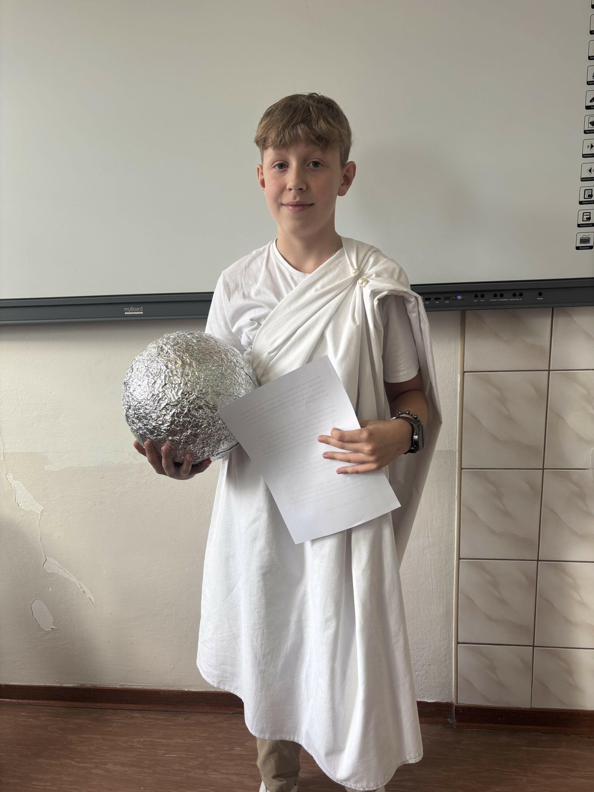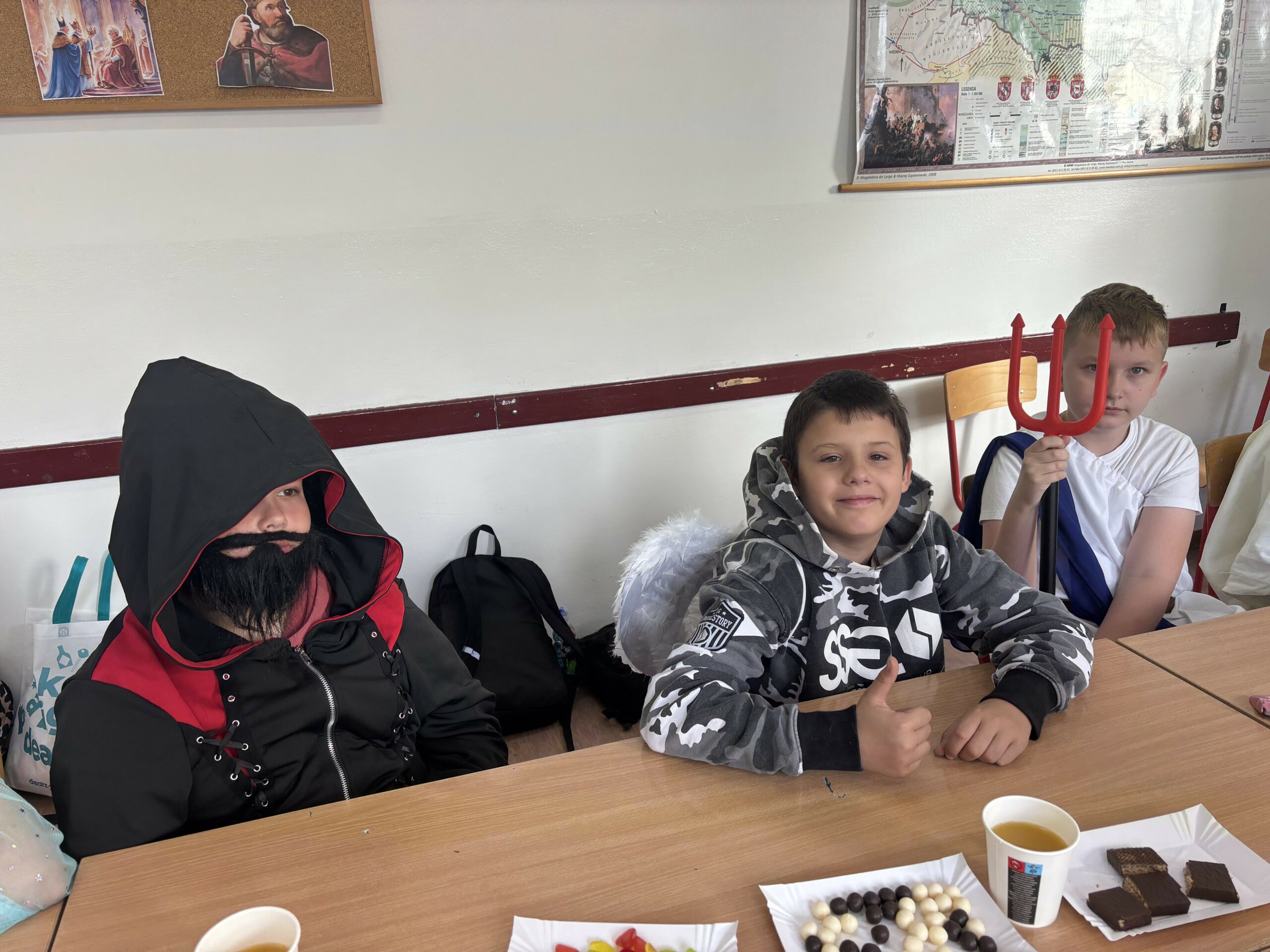 28 października, podczas lekcji języka polskiego, uczniowie klasy 5a przenieśli się na mityczny Olimp, gdzie odbyła się niezwykła uczta bogów i herosów. W ramach projektu edukacyjnego piątoklasiści wcielili się w postacie z mitologii greckiej — przygotowali stroje, atrybuty oraz ciekawie zaprezentowali najważniejsze informacje o wylosowanych bohaterach. W czasie uczty uczestnicy raczyli się ambrozją i boskim nektarem, tworząc prawdziwie olimpijską atmosferę. Zajęcia stanowiły znakomitą okazję do utrwalenia wiedzy o mitologii greckiej przed nadchodzącym sprawdzianem, rozwijania kreatywności oraz umiejętności prezentacji swojej wypowiedzi przed publicznością. [DK]