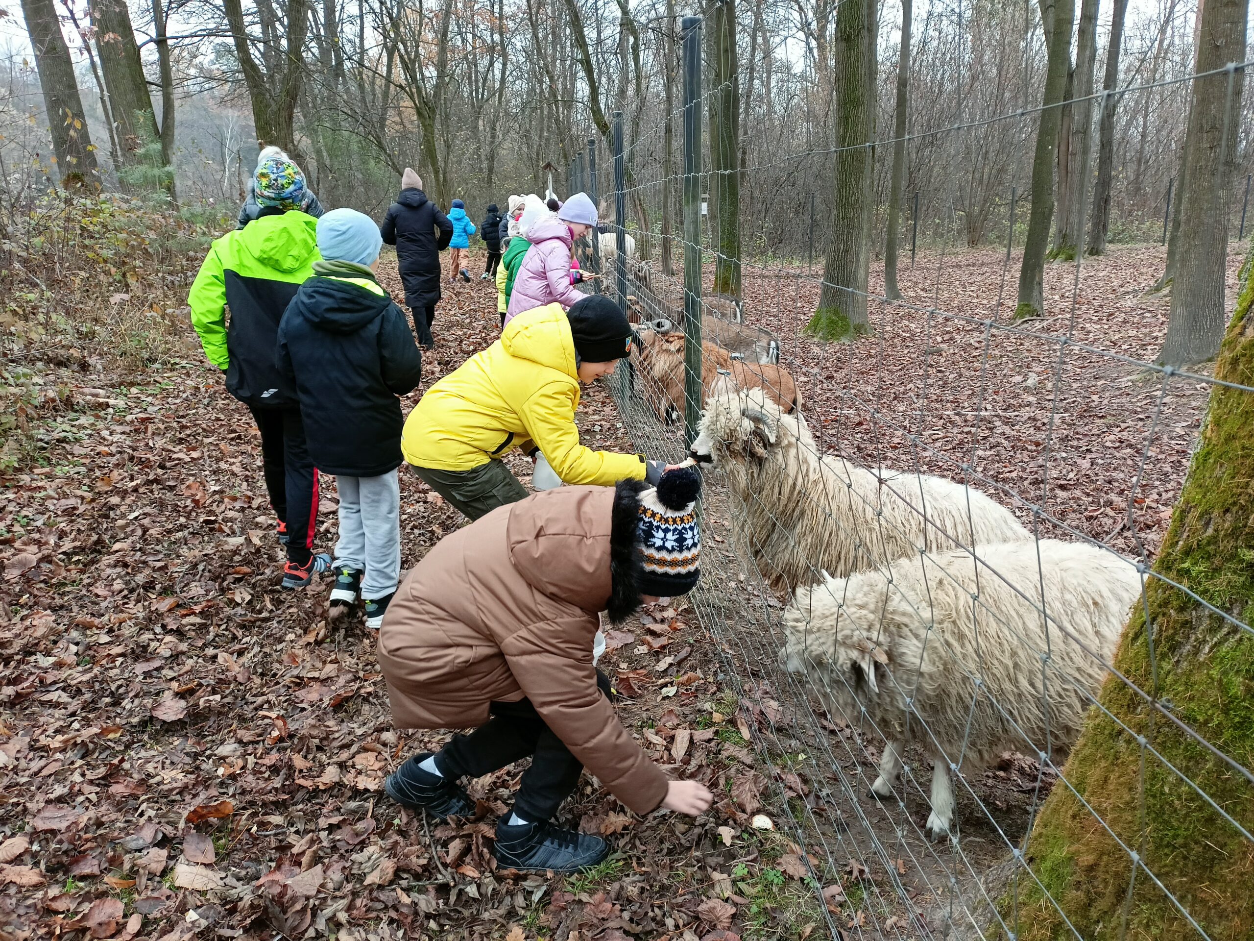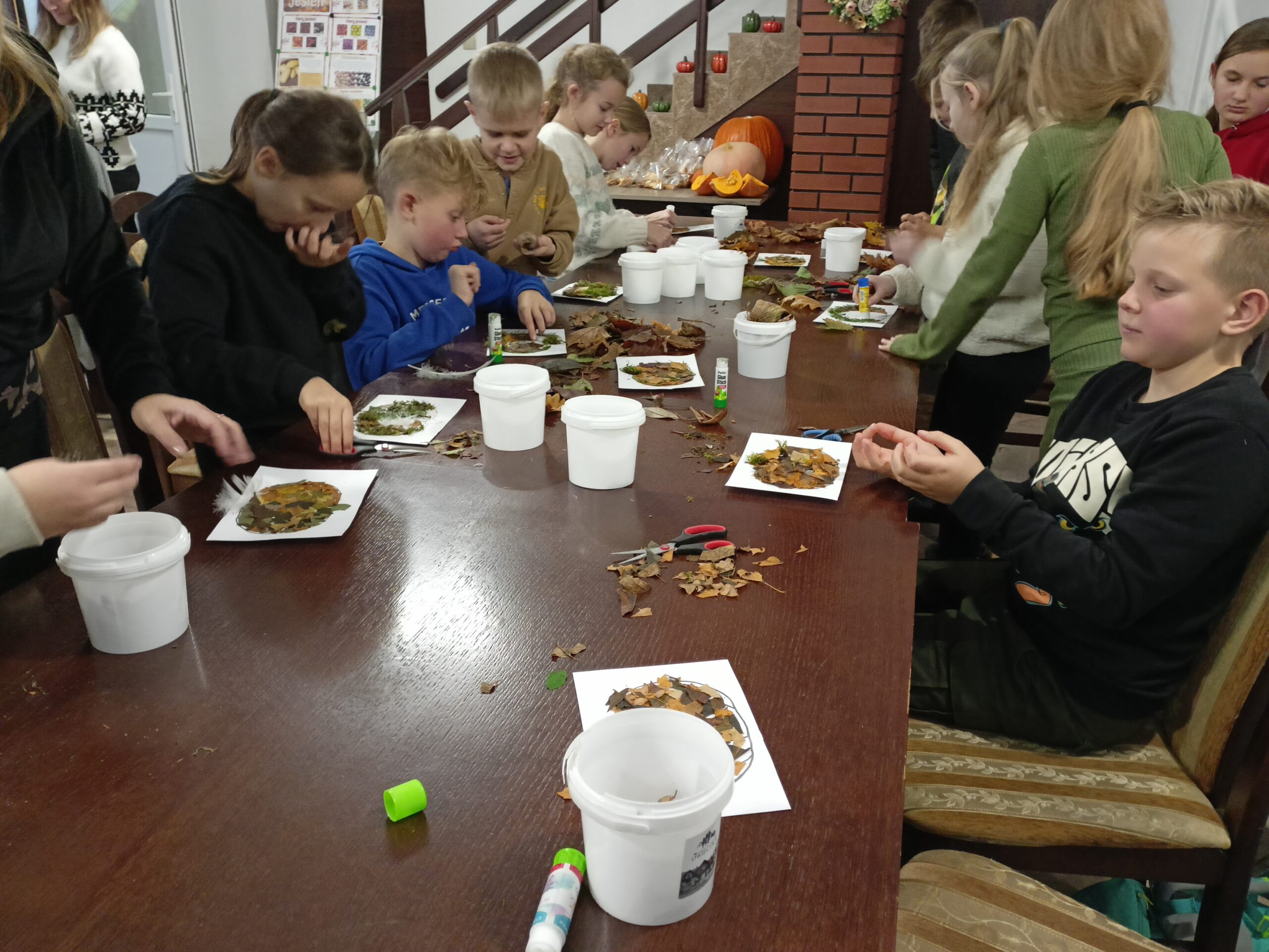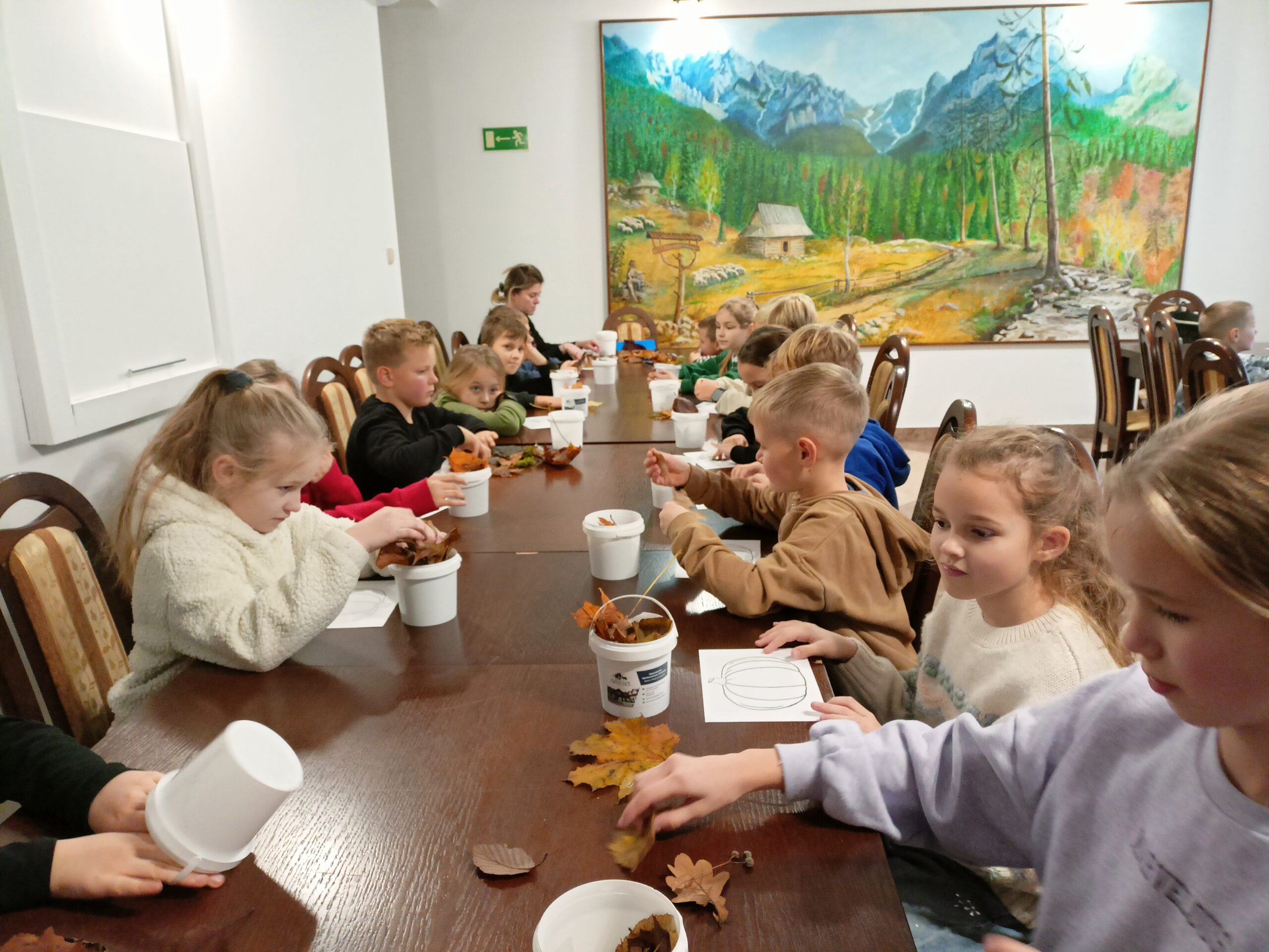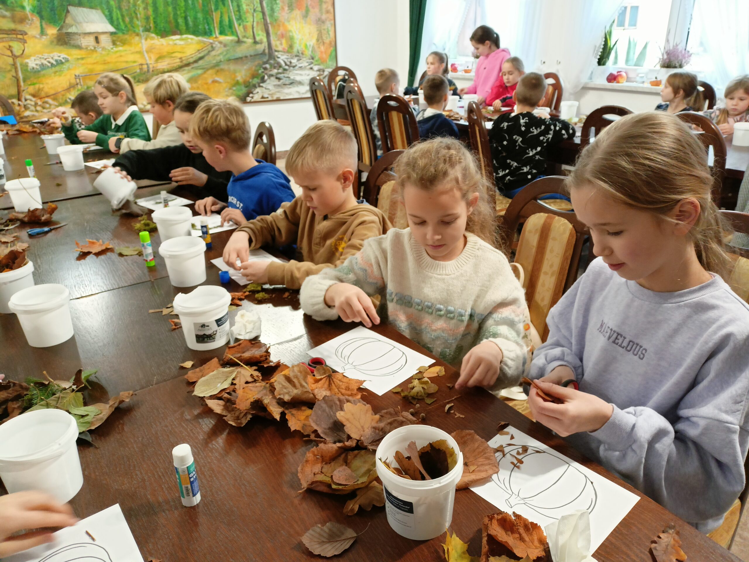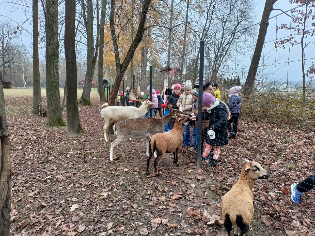 13 listopada klasy 2a i 3a wybrały się na jesienne warsztaty do gospodarstwa agroturystycznego „Owieczka” w Łukowicy. Podczas zajęć uczniowie dowiedzieli się różnych ciekawych faktów na temat dyni i ziemniaków. Mieli okazję degustować pieczonego ziemniaka oraz zupę dyniową. Warsztaty obfitowały w różne formy aktywności. Dzieci przygotowywały ciasteczka, które kształtem nawiązywały do jesienni. Wśród nich można było odnaleźć jeża, wiewiórki, dynie, gruszki, jabłka, liście. Kolejną atrakcją był spacer ścieżką edukacyjną. Uczniowie zgłębili wiedzę na temat zwierząt i roślin występujących w lesie. Mogli nakarmić zwierzęta w zagrodzie m.in. owce, daniele, barany oraz nazbierać liści, by stworzyć jesienną mozaikę dyniową. Bogactwo fauny i flory o tej porze roku było „żywą” lekcją przyrody. [MS]