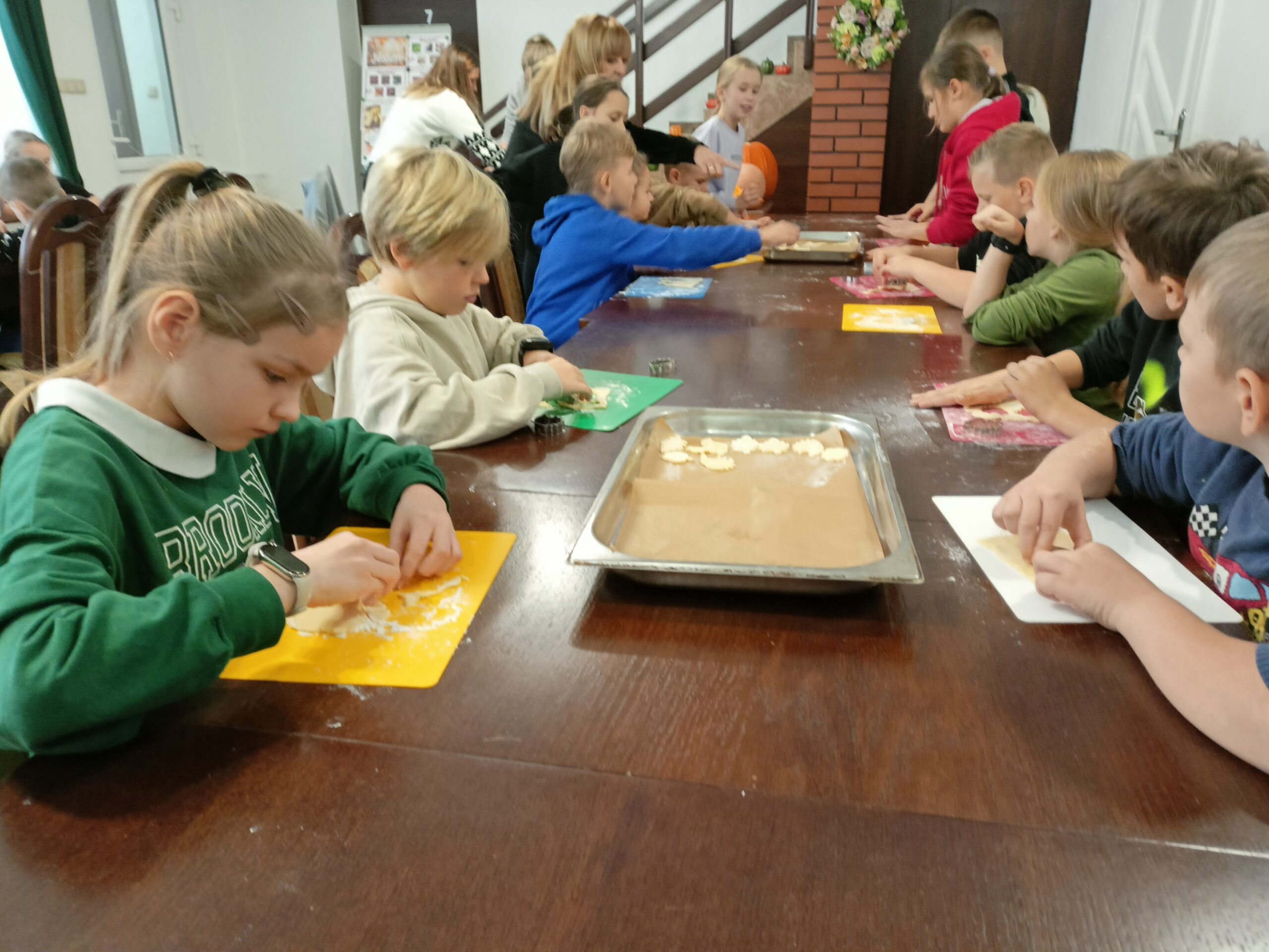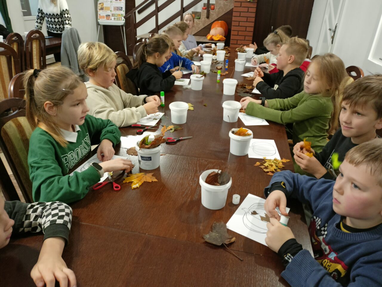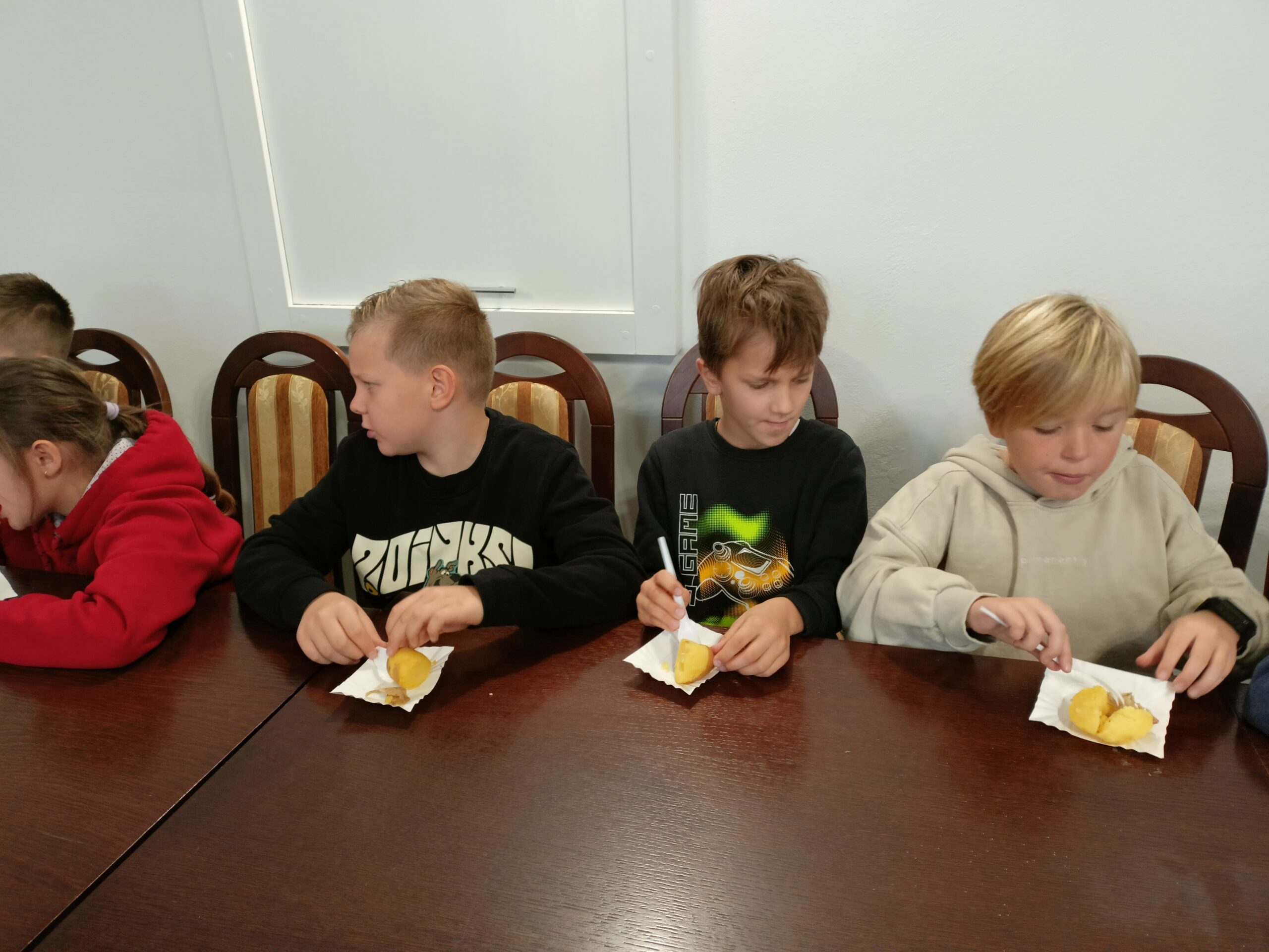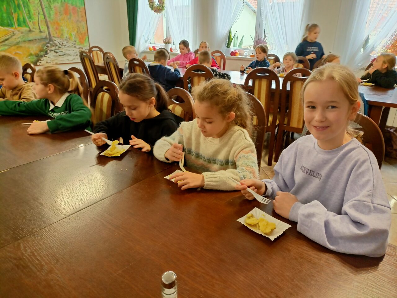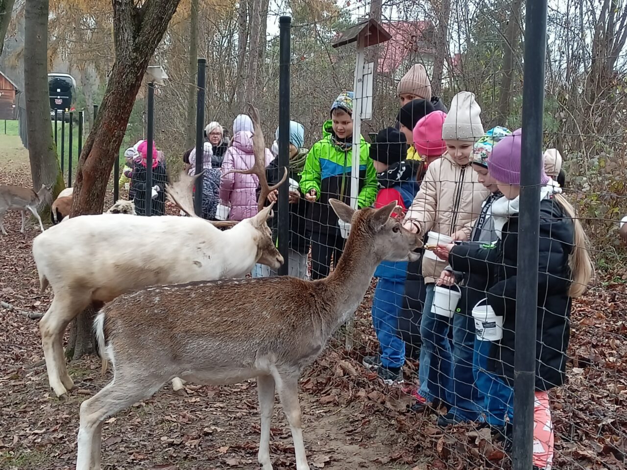 13 listopada klasy 2a i 3a wybrały się na jesienne warsztaty do gospodarstwa agroturystycznego „Owieczka” w Łukowicy. Podczas zajęć uczniowie dowiedzieli się różnych ciekawych faktów na temat dyni i ziemniaków. Mieli okazję degustować pieczonego ziemniaka oraz zupę dyniową. Warsztaty obfitowały w różne formy aktywności. Dzieci przygotowywały ciasteczka, które kształtem nawiązywały do jesienni. Wśród nich można było odnaleźć jeża, wiewiórki, dynie, gruszki, jabłka, liście. Kolejną atrakcją był spacer ścieżką edukacyjną. Uczniowie zgłębili wiedzę na temat zwierząt i roślin występujących w lesie. Mogli nakarmić zwierzęta w zagrodzie m.in. owce, daniele, barany oraz nazbierać liści, by stworzyć jesienną mozaikę dyniową. Bogactwo fauny i flory o tej porze roku było „żywą” lekcją przyrody. [MS]