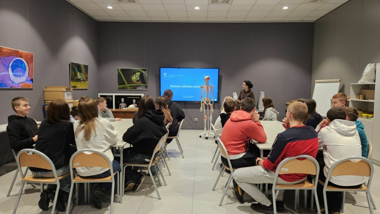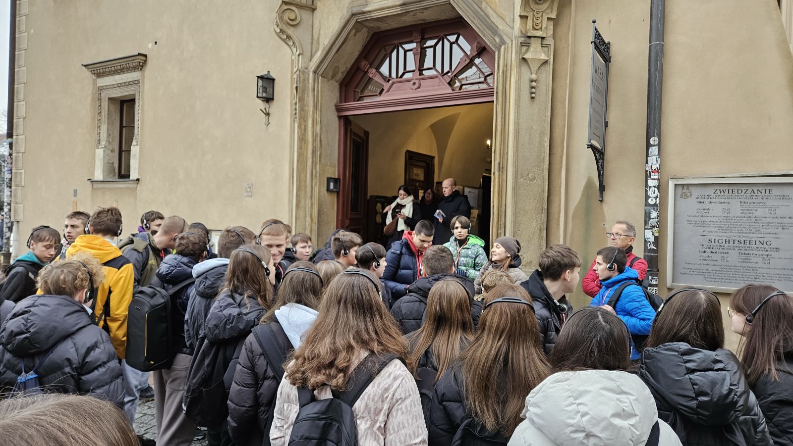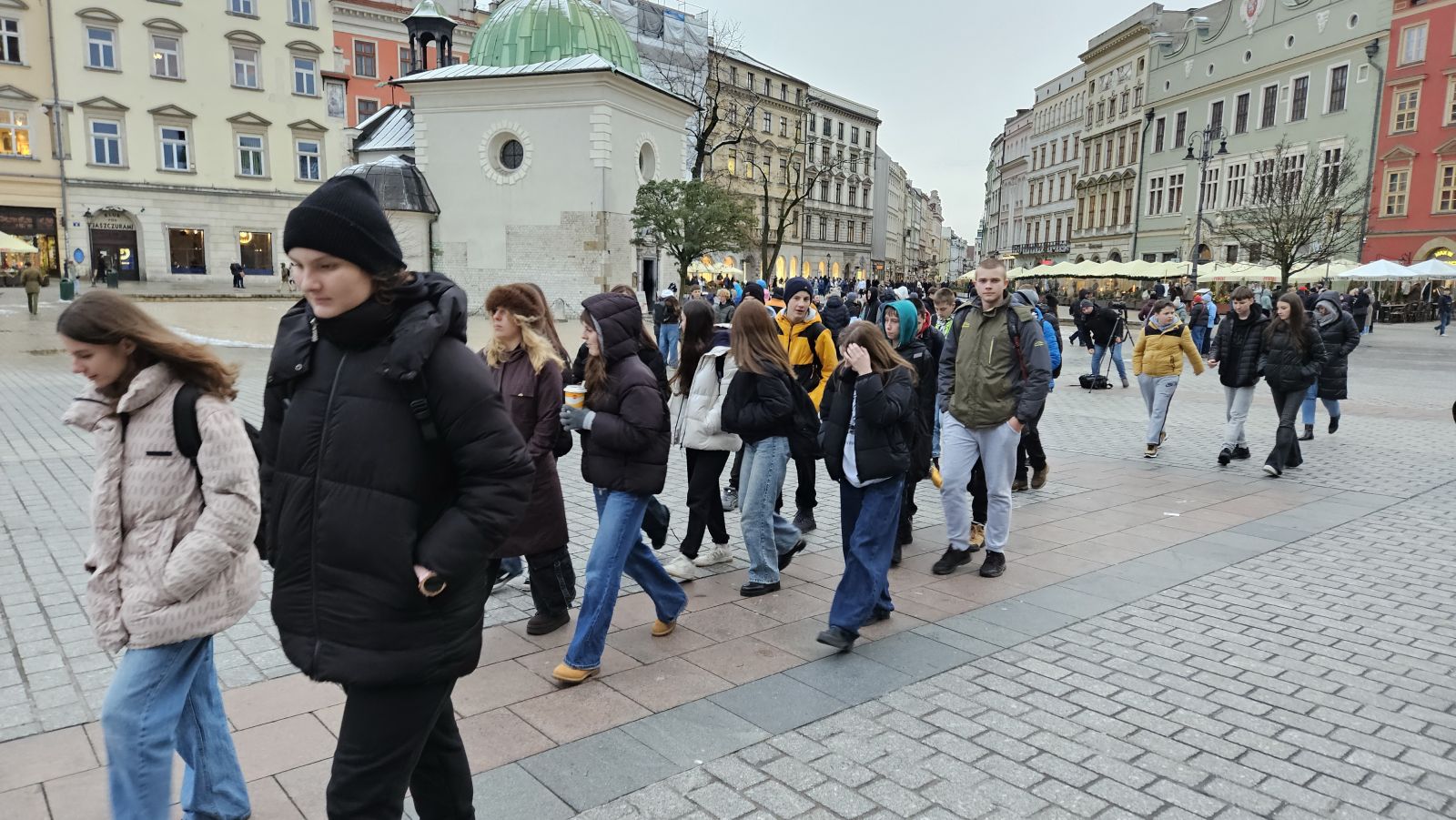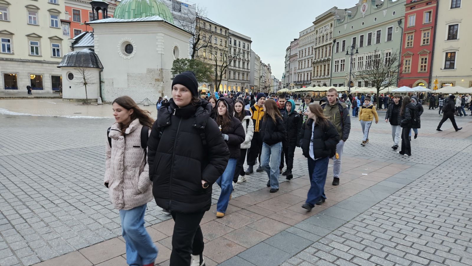 21 listopada 2025 r. uczniowie klasy 7b i 8b w zimowej scenerii udali się na całodniową wycieczkę do Krakowa. Pierwszym punktem programu było Centrum Edukacji Przyrodniczej Uniwersytetu Jagiellońskiego, gdzie uczestnicy wzięli udział w warsztatach poświęconych budowie szkieletu człowieka. Niektórzy odkryli, gdzie znajduje się kość, o której istnieniu wcześniej nie mieli pojęcia. Zwiedzanie wystawy „Zwierzęta i człowiek w przyrodzie” pokazało, że w świecie fauny wcale nie jest nudno – zwłaszcza, gdy zwierzęta muszą kombinować, jak nie zostać czyjąś przekąską. Zajęcia pozwoliły uczniom w praktyczny sposób poznać funkcjonowanie układu kostnego oraz zależności między organizmami w ekosystemach. Następnie grupa udała się na Wawel, by zwiedzić Katedrę, Groby Królewskie oraz słynny Dzwon Zygmunta, który – niestety – pozostał cichy, mimo że wszyscy bardzo chcieli usłyszeć jego brzmienie. Nie zabrakło też chwili na uzupełnienie energii w znanym królestwie złotych frytek i burgerów. Ostatnim etapem wycieczki było zwiedzanie multimedialnej ekspozycji w Podziemiach Rynku Głównego, ukazującej historię średniowiecznego Krakowa. Wycieczka była doskonałą okazją do nauki przez doświadczenia oraz poznania najważniejszych zabytków i historii Krakowa. Trudno o lepszy sposób na edukację i integrację! [ZP]