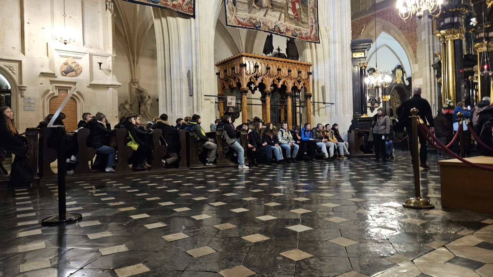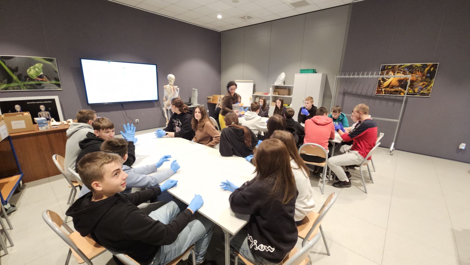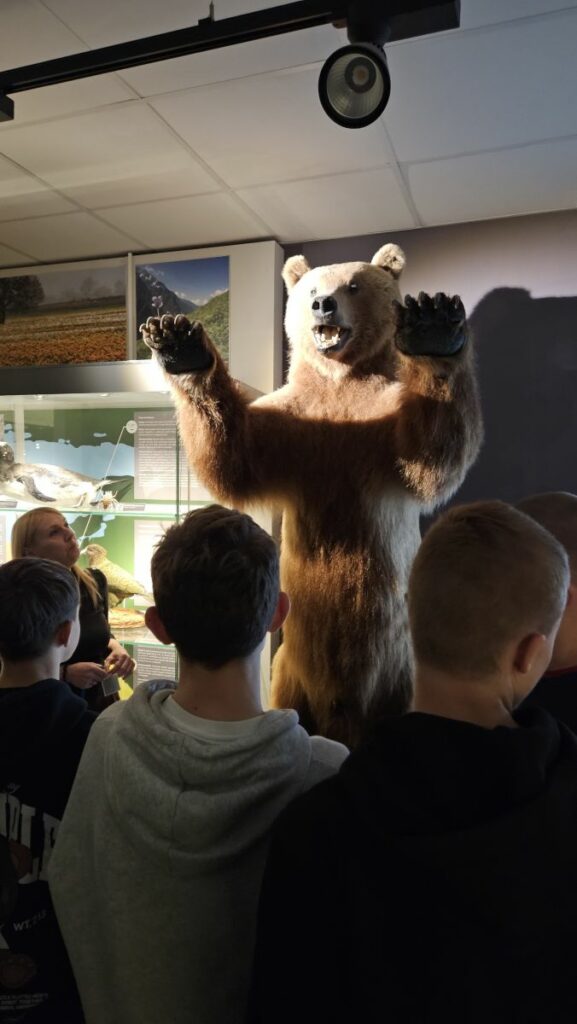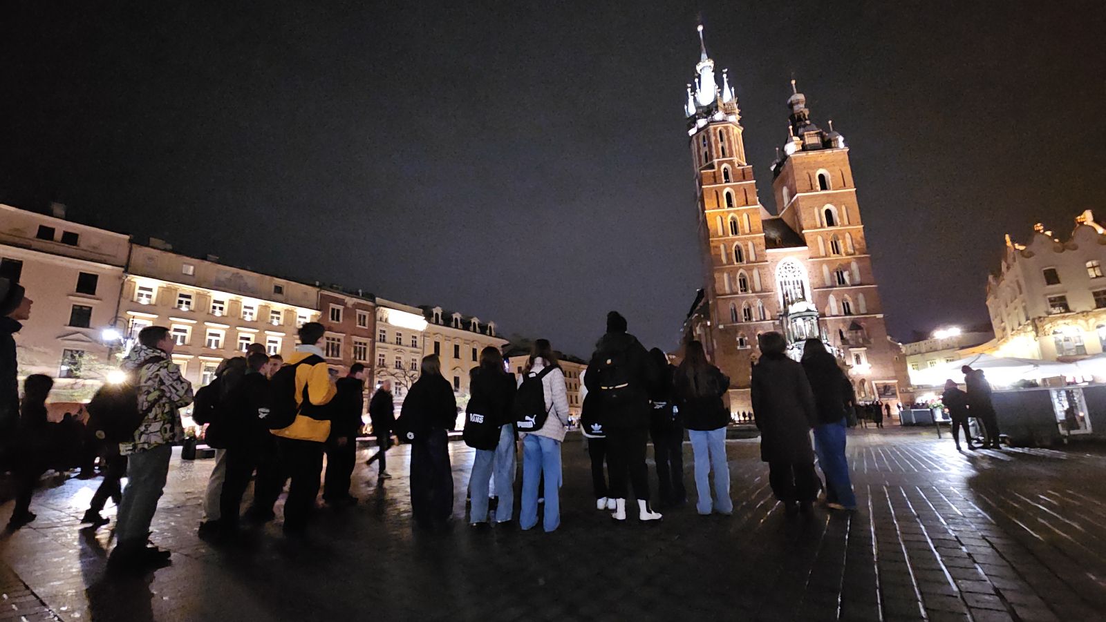 21 listopada 2025 r. uczniowie klasy 7b i 8b w zimowej scenerii udali się na całodniową wycieczkę do Krakowa. Pierwszym punktem programu było Centrum Edukacji Przyrodniczej Uniwersytetu Jagiellońskiego, gdzie uczestnicy wzięli udział w warsztatach poświęconych budowie szkieletu człowieka. Niektórzy odkryli, gdzie znajduje się kość, o której istnieniu wcześniej nie mieli pojęcia. Zwiedzanie wystawy „Zwierzęta i człowiek w przyrodzie” pokazało, że w świecie fauny wcale nie jest nudno – zwłaszcza, gdy zwierzęta muszą kombinować, jak nie zostać czyjąś przekąską. Zajęcia pozwoliły uczniom w praktyczny sposób poznać funkcjonowanie układu kostnego oraz zależności między organizmami w ekosystemach. Następnie grupa udała się na Wawel, by zwiedzić Katedrę, Groby Królewskie oraz słynny Dzwon Zygmunta, który – niestety – pozostał cichy, mimo że wszyscy bardzo chcieli usłyszeć jego brzmienie. Nie zabrakło też chwili na uzupełnienie energii w znanym królestwie złotych frytek i burgerów. Ostatnim etapem wycieczki było zwiedzanie multimedialnej ekspozycji w Podziemiach Rynku Głównego, ukazującej historię średniowiecznego Krakowa. Wycieczka była doskonałą okazją do nauki przez doświadczenia oraz poznania najważniejszych zabytków i historii Krakowa. Trudno o lepszy sposób na edukację i integrację! [ZP]