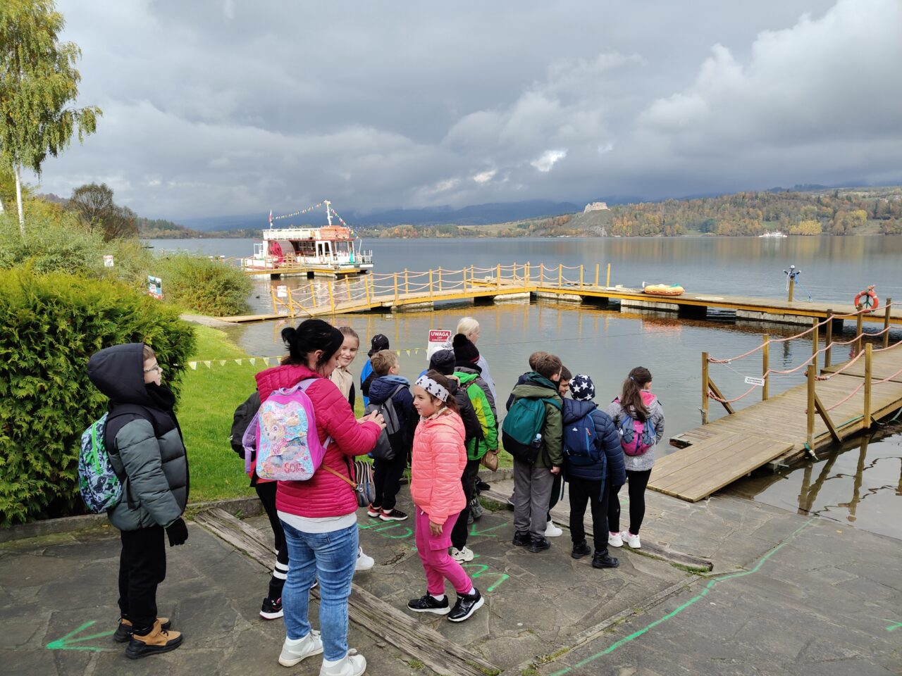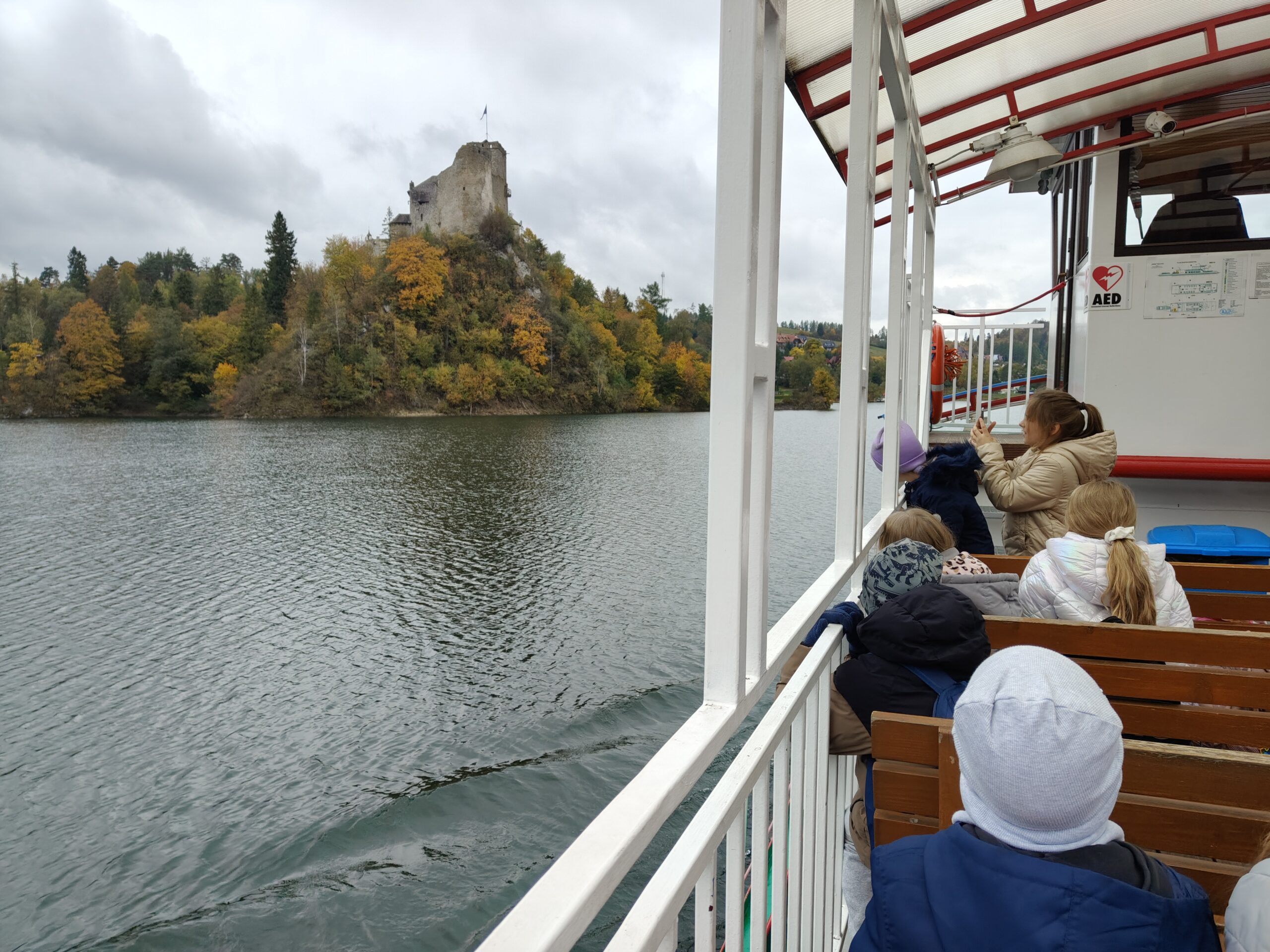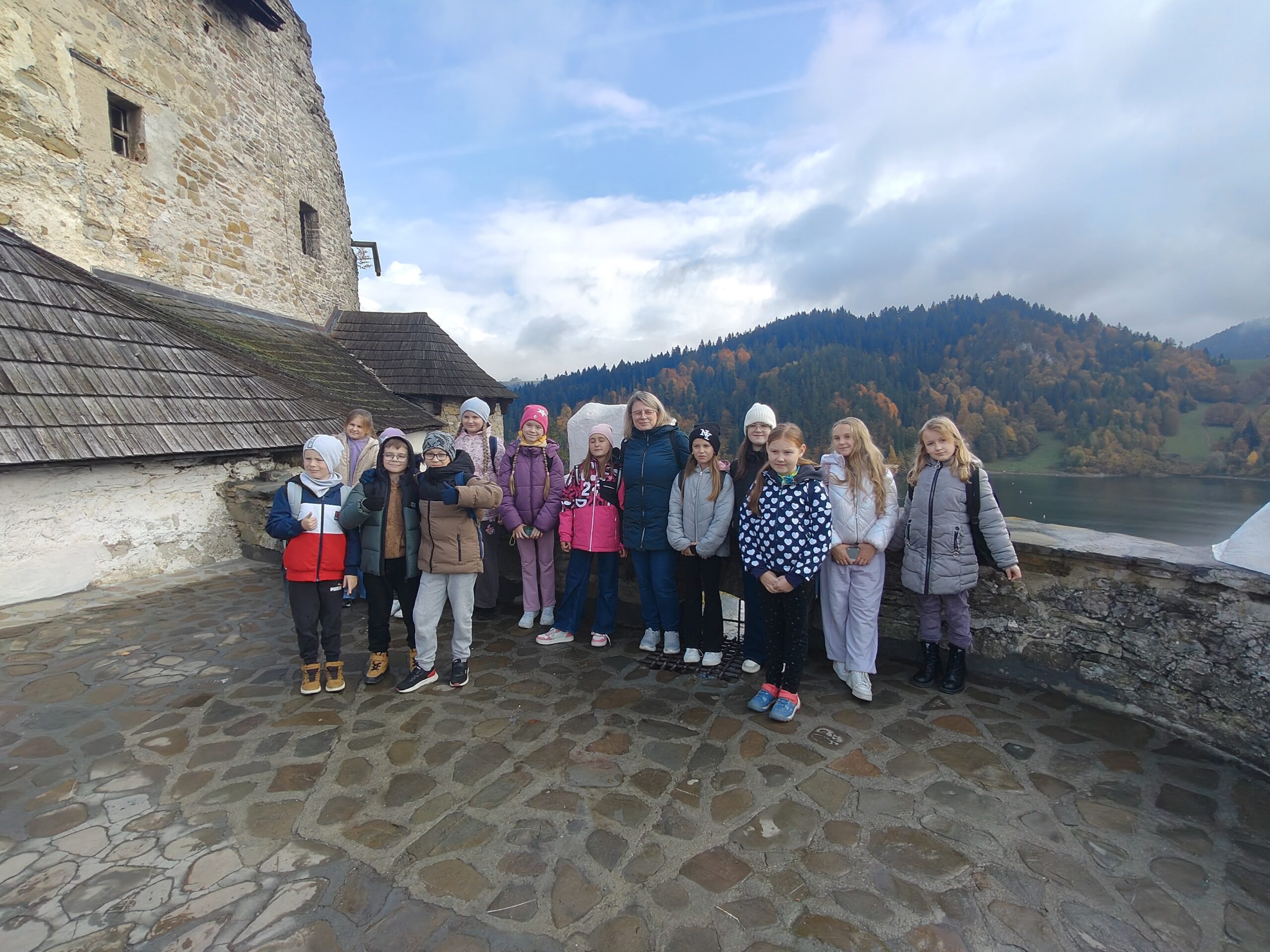 15 października klasy trzecie udały się na wycieczkę do Niedzicy. Nasza przygoda rozpoczęła się na Zamku Dunajec, z którym związanych jest kilka legend. Najbardziej znaną jest „Legenda o zbójniku Janosiku”, który okradał bogatych i pomagał biednym oraz „Legenda o Brunhildzie”, księżniczce znanej ze swojej kłótliwości z mężem Bogusławem. Dziś zamek stanowi główną atrakcję turystyczną Niedzicy. Wykorzystywany był również jako sceneria w wielu filmach i serialach m.in. „Janosiku”, „Zemście”, „Wakacjach z duchami”, „Akademii Pana Kleksa”. Podczas zwiedzania uczniowie mogli zobaczyć: Izby pańskie, Komnaty Salamonów (pomieszczenia, w których mieszkali ostatni właściciele), wozownię oraz żywe zwierzątka – nietoperze. Z tarasów widokowych rozciągała się przepiękna panorama na Jezioro Czorsztyńskie, Pieniny Spiskie oraz ruiny zamku w Czorsztynie. Jednak największą atrakcją okazał się rejs statkiem po jeziorze. Malownicze, jesienne widoki na zawsze zostaną w pamięci. Ostatnim punktem wycieczki był spacer po zaporze wodnej. Wyjazd należy do bardzo udanych 😊. [MS]
