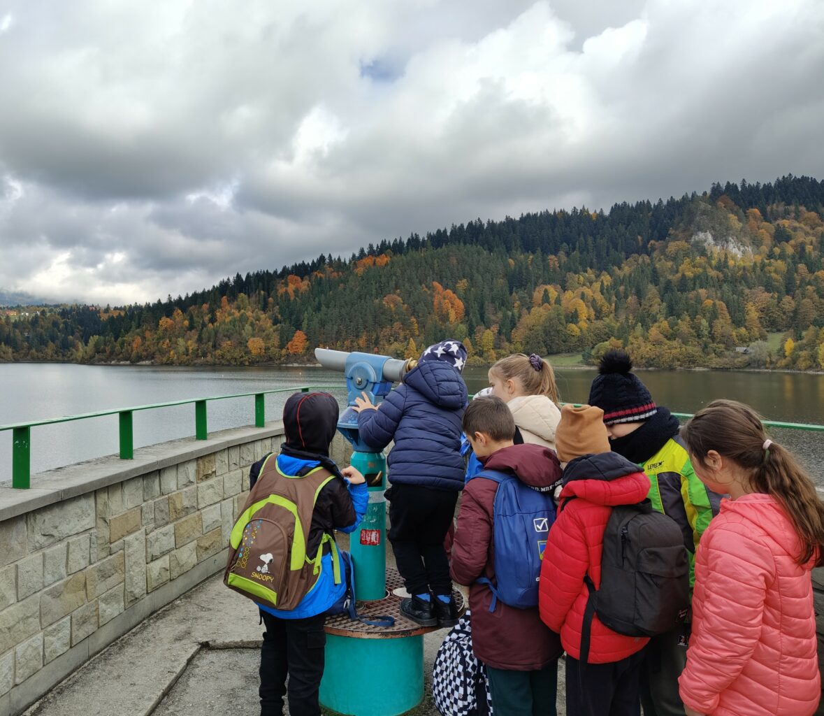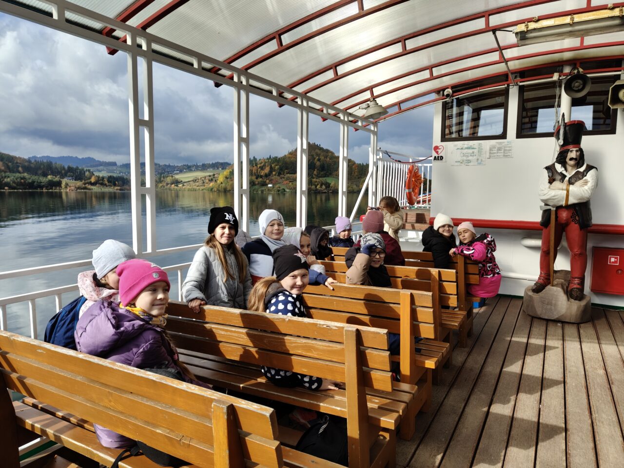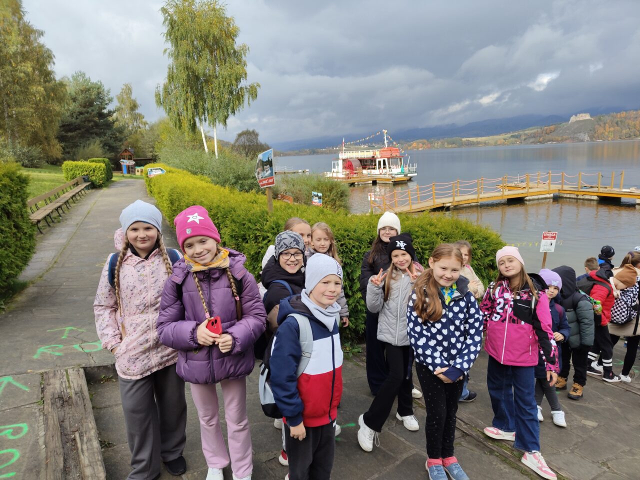 15 października klasy trzecie udały się na wycieczkę do Niedzicy. Nasza przygoda rozpoczęła się na Zamku Dunajec, z którym związanych jest kilka legend. Najbardziej znaną jest „Legenda o zbójniku Janosiku”, który okradał bogatych i pomagał biednym oraz „Legenda o Brunhildzie”, księżniczce znanej ze swojej kłótliwości z mężem Bogusławem. Dziś zamek stanowi główną atrakcję turystyczną Niedzicy. Wykorzystywany był również jako sceneria w wielu filmach i serialach m.in. „Janosiku”, „Zemście”, „Wakacjach z duchami”, „Akademii Pana Kleksa”. Podczas zwiedzania uczniowie mogli zobaczyć: Izby pańskie, Komnaty Salamonów (pomieszczenia, w których mieszkali ostatni właściciele), wozownię oraz żywe zwierzątka – nietoperze. Z tarasów widokowych rozciągała się przepiękna panorama na Jezioro Czorsztyńskie, Pieniny Spiskie oraz ruiny zamku w Czorsztynie. Jednak największą atrakcją okazał się rejs statkiem po jeziorze. Malownicze, jesienne widoki na zawsze zostaną w pamięci. Ostatnim punktem wycieczki był spacer po zaporze wodnej. Wyjazd należy do bardzo udanych 😊. [MS]