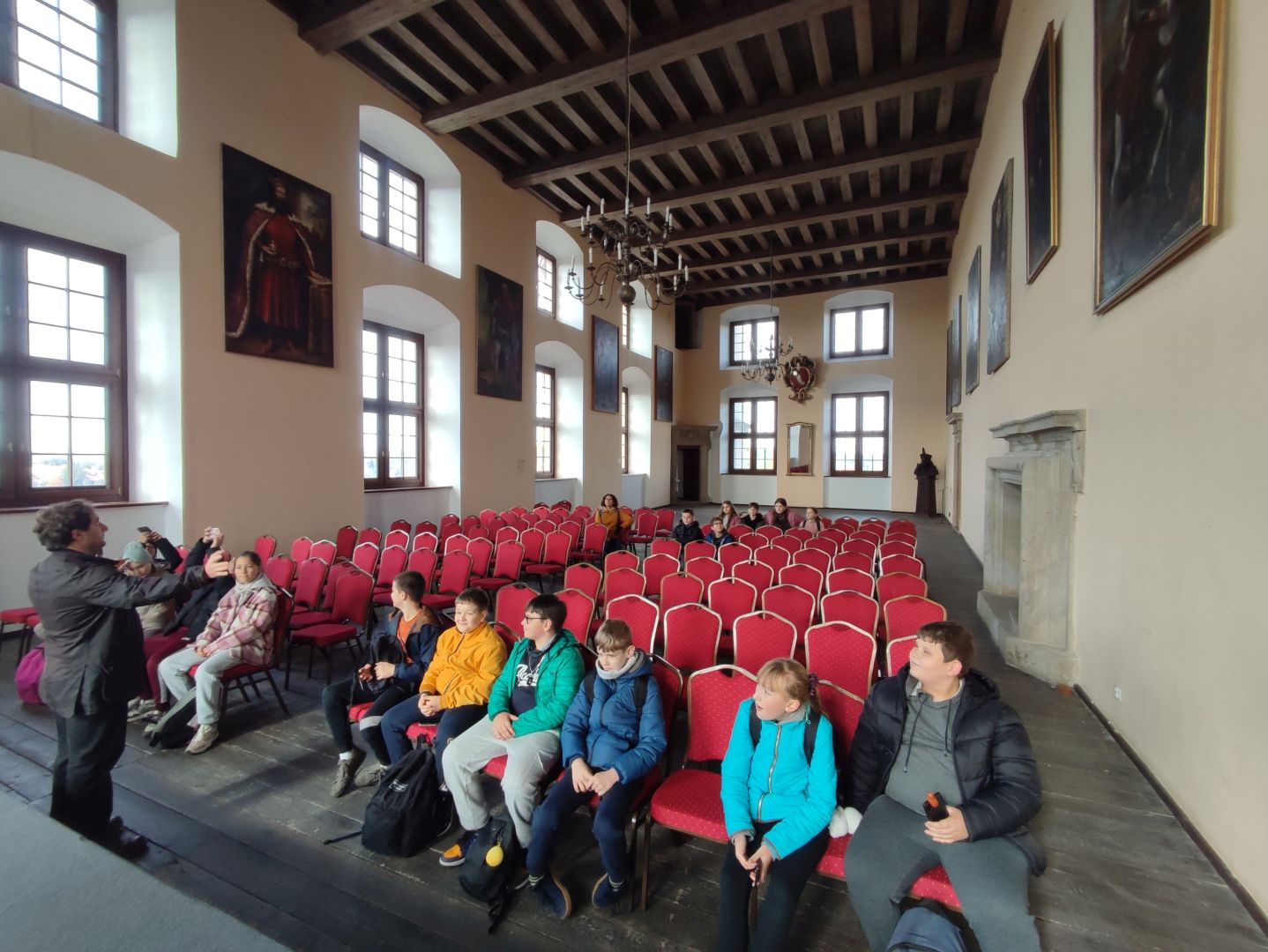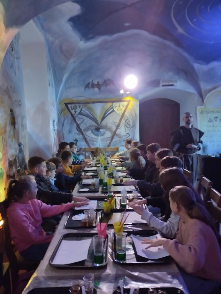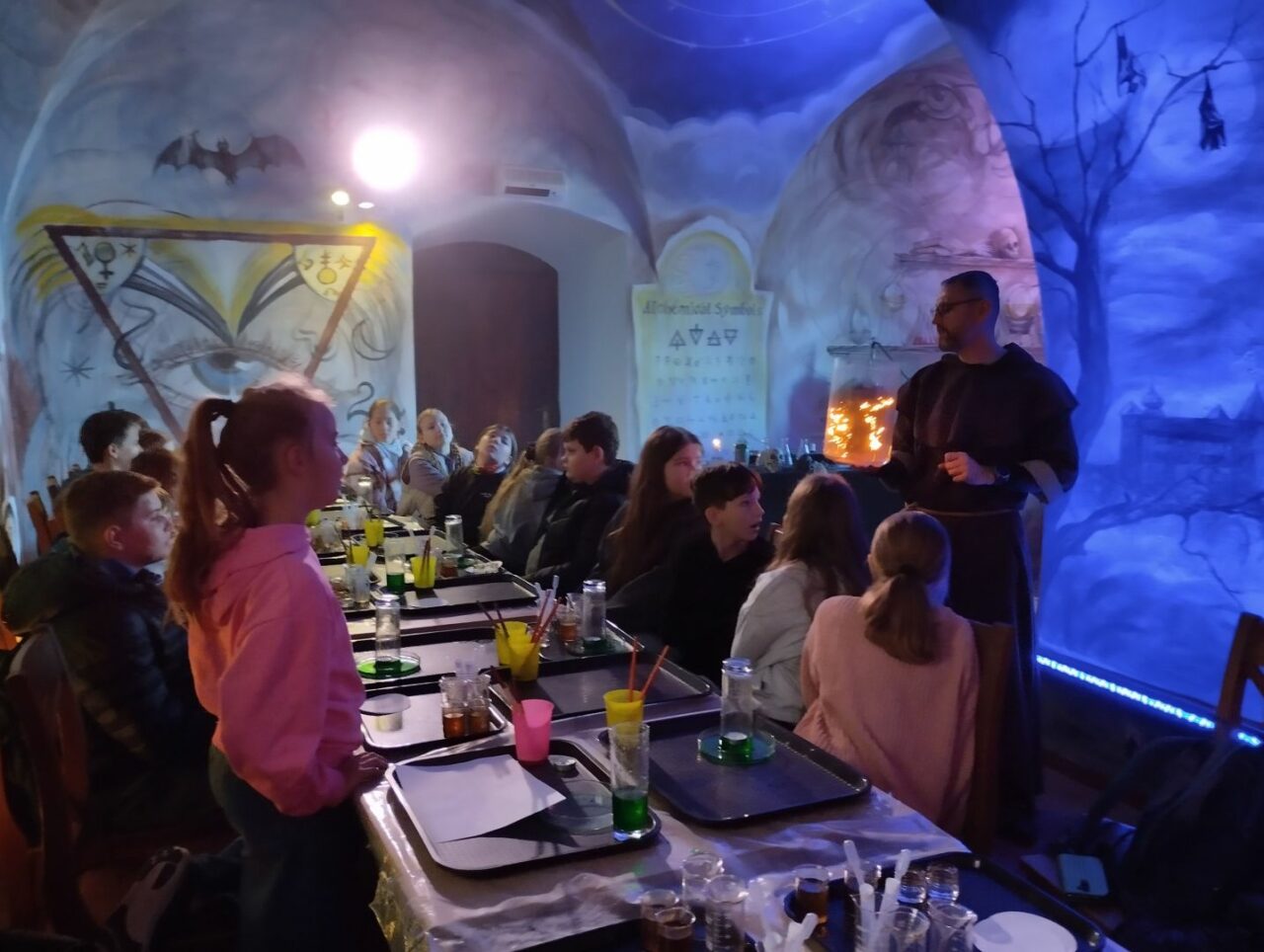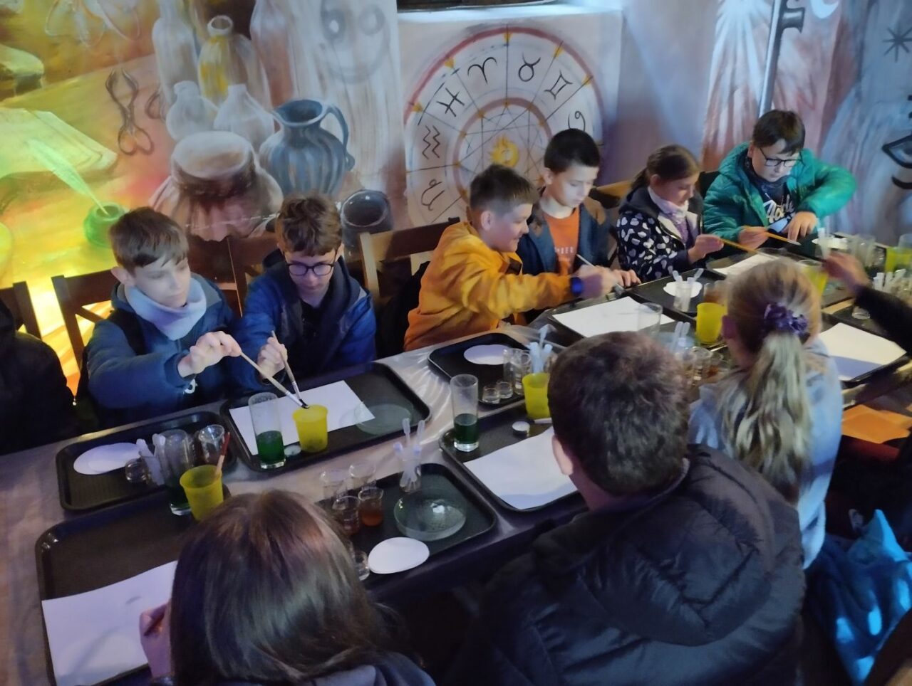 Wycieczka klasy 5b 20 października 2025 20 października 2025 Bez kategorii 16 października klasa 5b odwiedziła Zamek w Wiśniczu. Uczniowie poznali historię XIV-wiecznej budowli, wzięli udział w warsztatach alchemicznych i uczestniczyli w pokazie wirtualnej rzeczywistości w Bastionie VR.