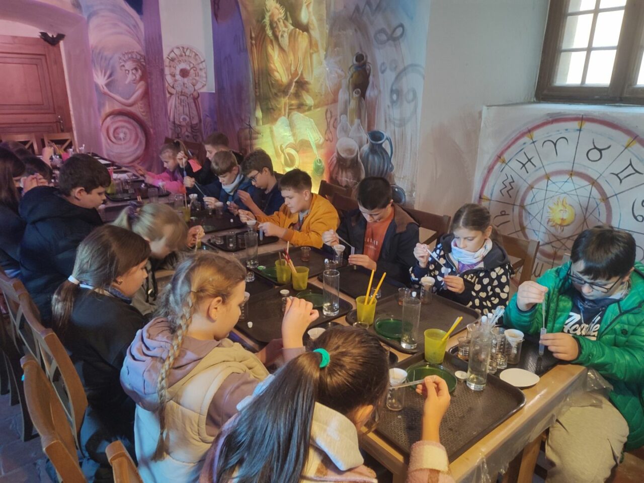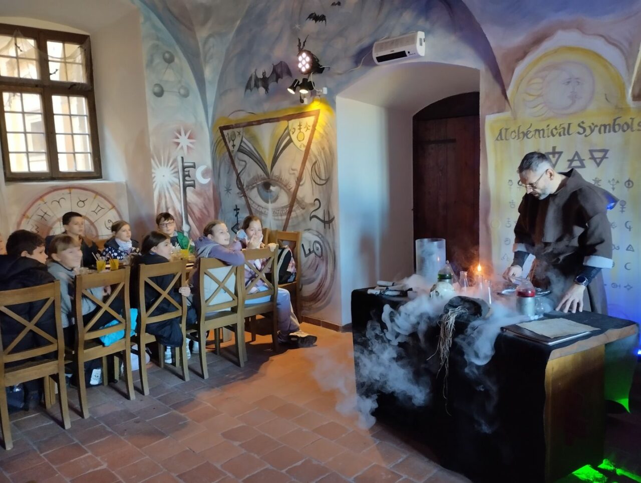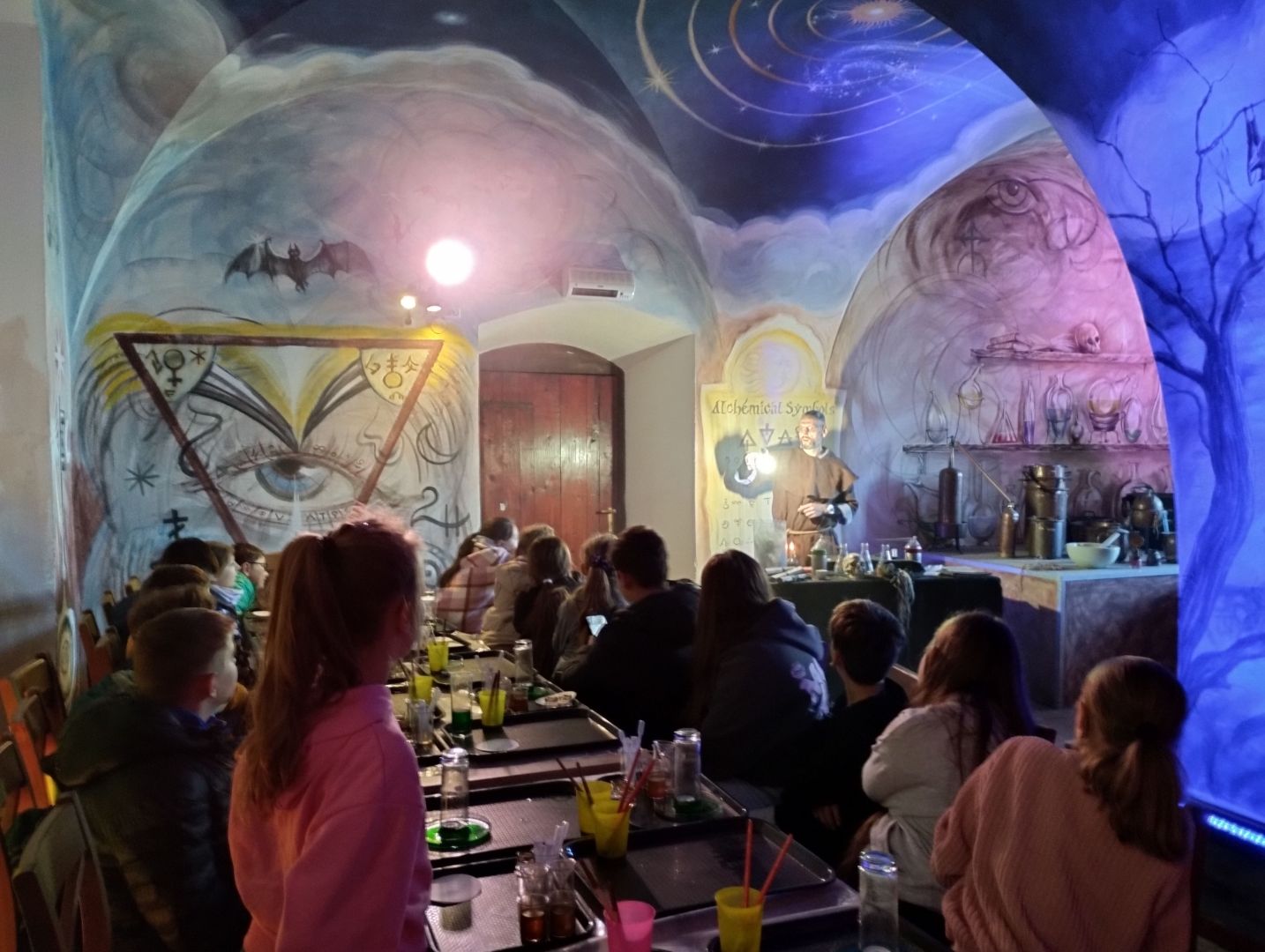 Wycieczka klasy 5b 20 października 2025 20 października 2025 Bez kategorii 16 października klasa 5b odwiedziła Zamek w Wiśniczu. Uczniowie poznali historię XIV-wiecznej budowli, wzięli udział w warsztatach alchemicznych i uczestniczyli w pokazie wirtualnej rzeczywistości w Bastionie VR.
