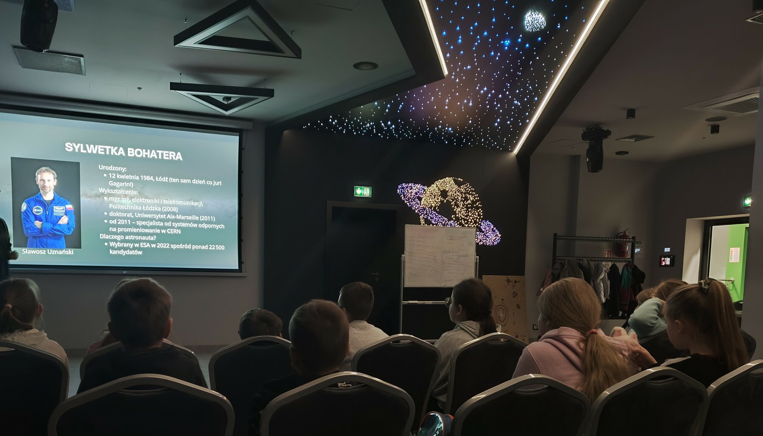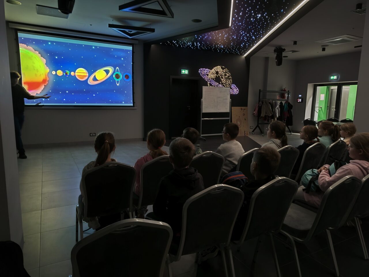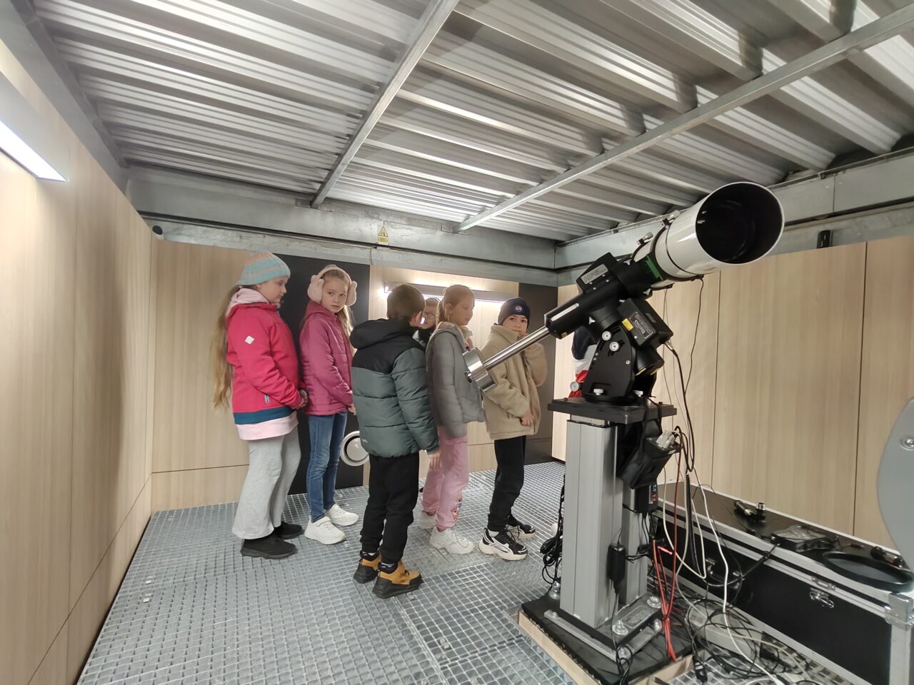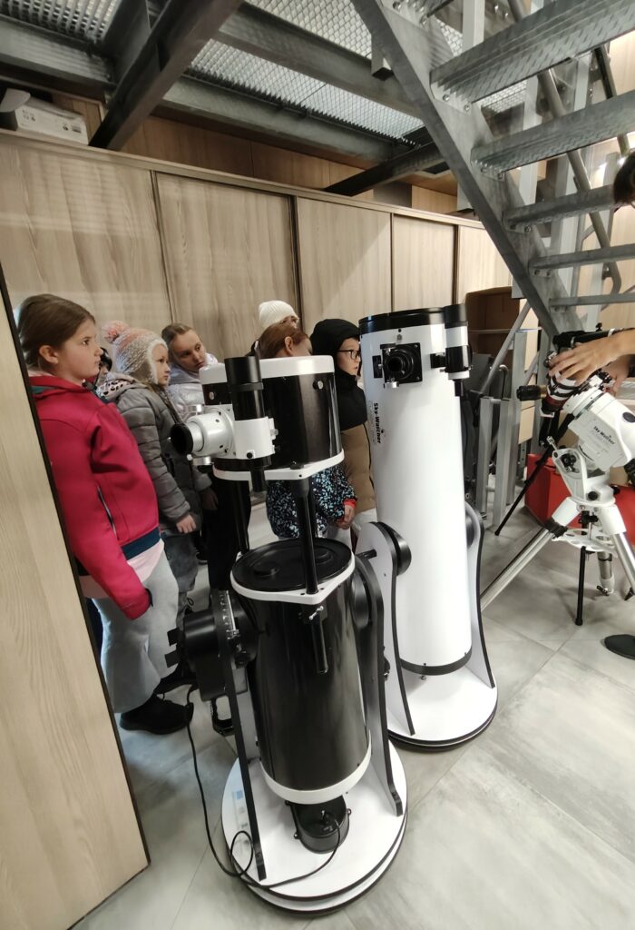 Klasa 3a pojechała na zajęcia do obserwatorium astronomicznego Astro Centrum w Chełmcu. Uczniowie dowiedzieli się wielu informacji na temat budowy Układu Słonecznego oraz ciekawostek związanych z powstawaniem zorzy polarnej czy zaćmienia Słońca. Rok 2025 na zawsze wpisze się na karty historii, ponieważ nasz rodak Sławosz Uznański-Wiśniewski jako drugi Polak po Mirosławie Hermaszewskim znalazł się w przestrzeni kosmicznej. Uczniowie poznali wiele interesujących faktów z życia polskiego astronauty oraz jego pracy badawczej. Astro Centrum dysponuje nowoczesnymi teleskopami, które pozwalają odkryć tajemnice wszechświata. Główną atrakcję stanowi odsuwany dach, który daje możliwość dokonywania prawdziwych obserwacji astronomicznych.
