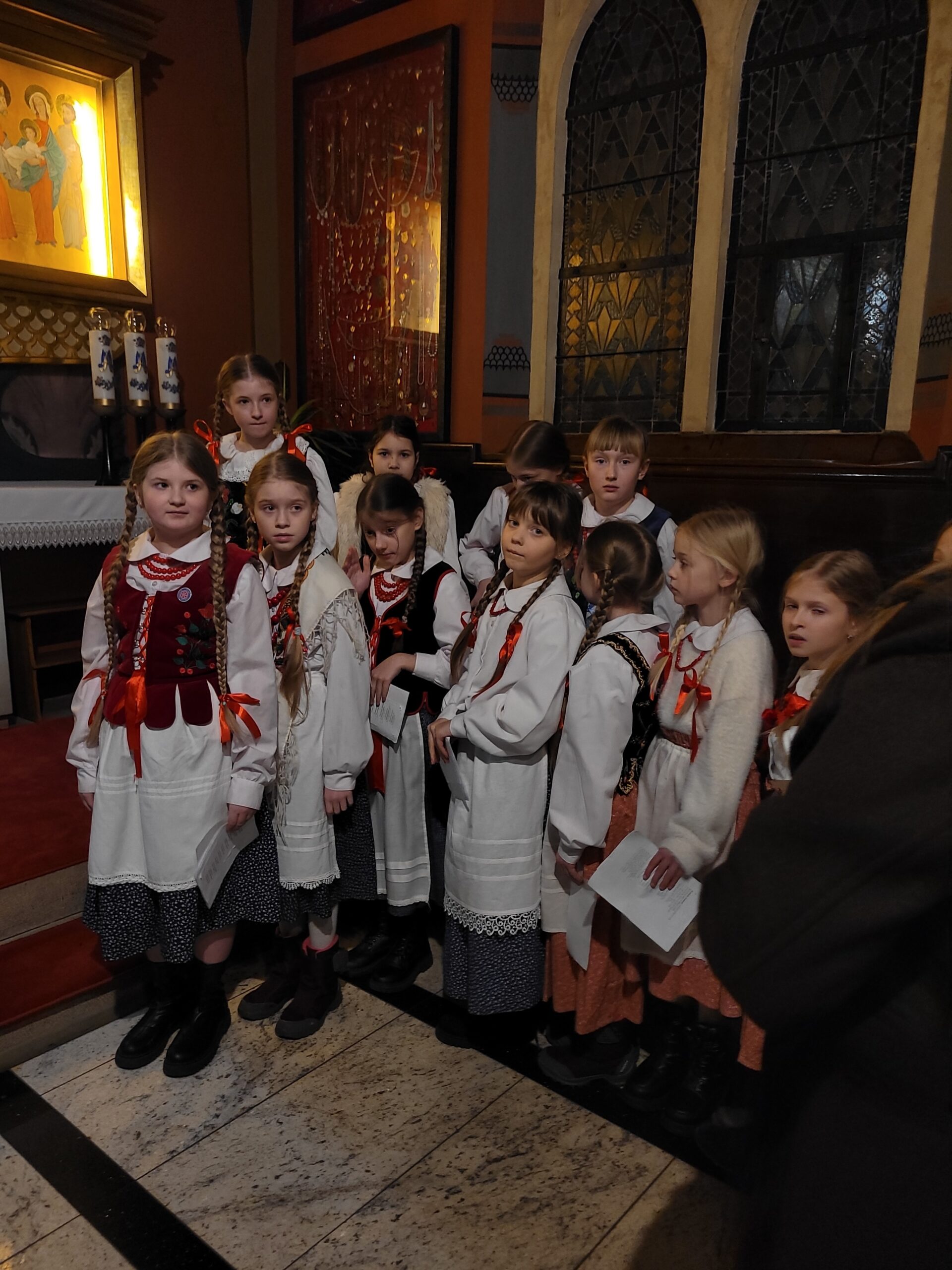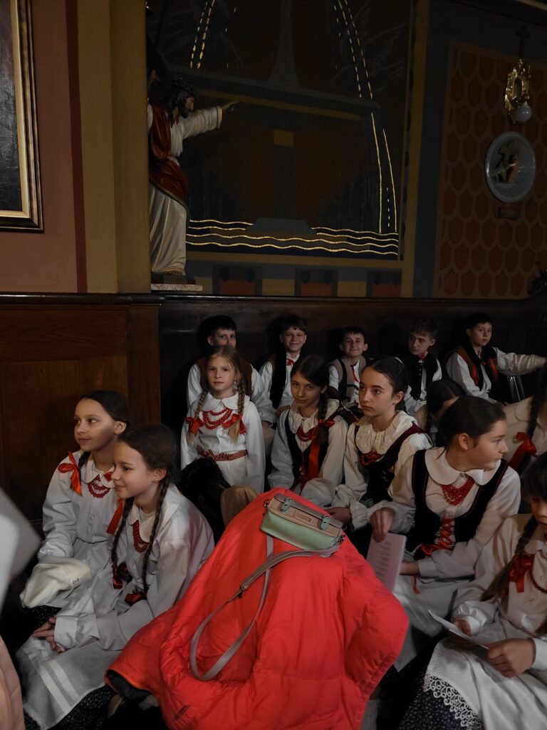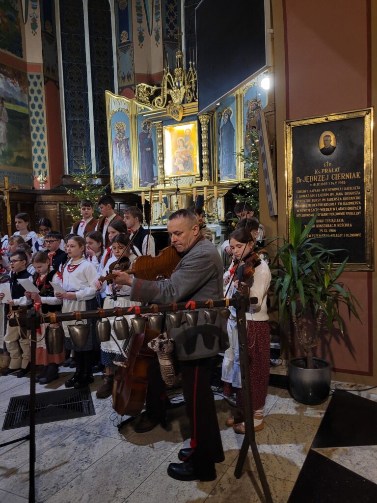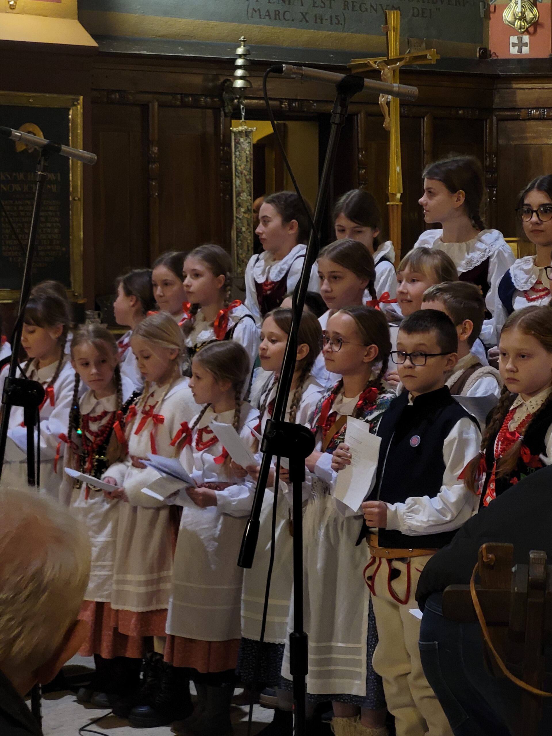 Parafia św. Kazimierza w Nowym Sączu i działający przy niej Chór Męski Echo II zaprosili nasz szkolny Zespół Regionalny Rytrzoki na XXI Koncert Kolęd i pastorałek. W koncercie wzięły udział: Chór Męski Echo II, Zespół Regionalny Sądeczoki, Chór Parafialny im. ks. Jerzego Popiełuszki z Marcinkowic, Schola Dzieci Bożych z parafii św. Kazimierza oraz Zespół Regionalny Rytrzoki. Każdy z zespołów wykonał piętnastominutowy program. W naszym programie znalazły się utwory: Wstańcie, wstańcie… (kolęda ks. J. Woźniackiego), Betlejemskie pole śpi, A wczora z wieczora, Z góry po polanie, Jam jest dudka. Występ odbył się przy pełnym kościele w niezwykłym klimacie i przestrzeni kościoła św. Kazimierza. Wszystkim rodzicom i sympatykom, którzy uczestniczyli w koncercie serdecznie dziękujemy. Dziękujemy Panu Wójtowi Janowi Kotarbie za sfinansowanie wyjazdu oraz Pani Dyrektor Justynie Łękawskiej. Za zaproszenie na koncert dziękujemy Panu Markowi Kiełbasie z Chóru Echo II. [PK]