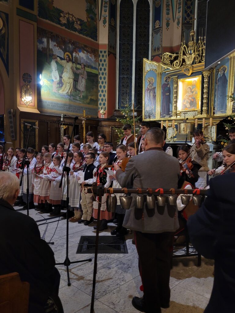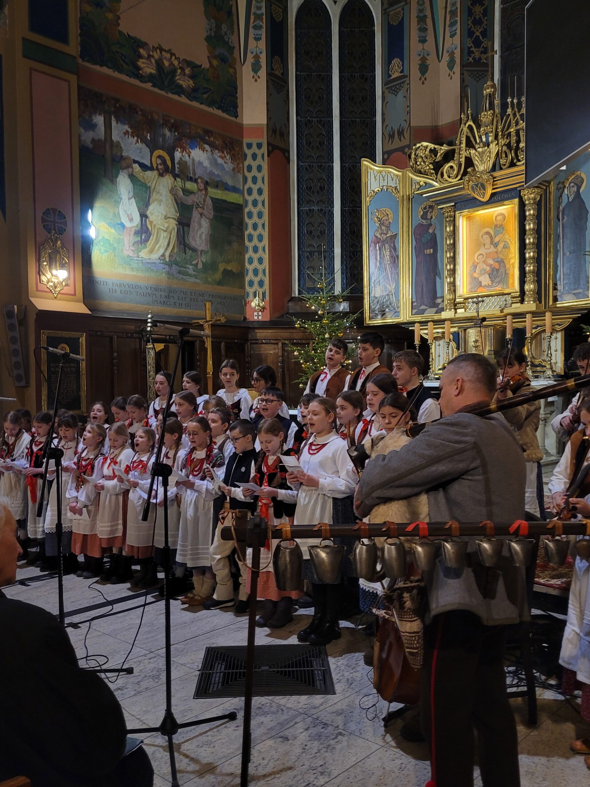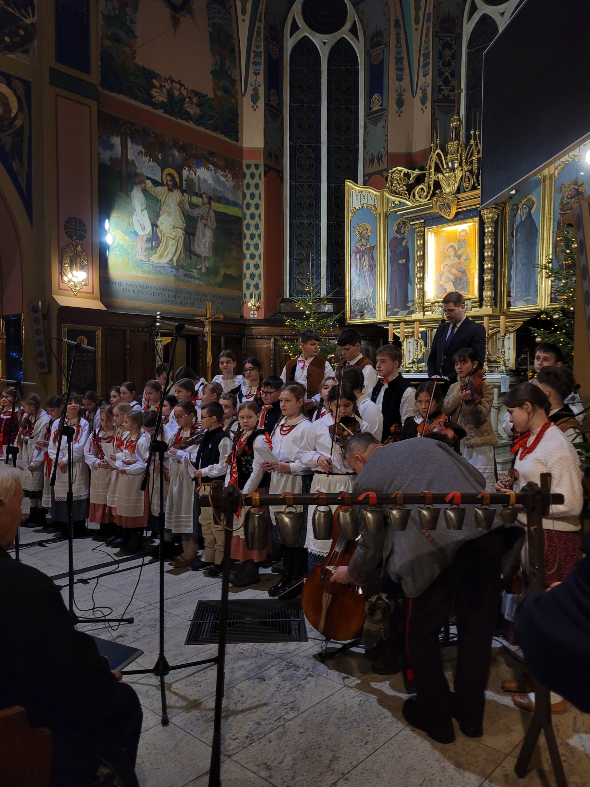 Parafia św. Kazimierza w Nowym Sączu i działający przy niej Chór Męski Echo II zaprosili nasz szkolny Zespół Regionalny Rytrzoki na XXI Koncert Kolęd i pastorałek. W koncercie wzięły udział: Chór Męski Echo II, Zespół Regionalny Sądeczoki, Chór Parafialny im. ks. Jerzego Popiełuszki z Marcinkowic, Schola Dzieci Bożych z parafii św. Kazimierza oraz Zespół Regionalny Rytrzoki. Każdy z zespołów wykonał piętnastominutowy program. W naszym programie znalazły się utwory: Wstańcie, wstańcie… (kolęda ks. J. Woźniackiego), Betlejemskie pole śpi, A wczora z wieczora, Z góry po polanie, Jam jest dudka. Występ odbył się przy pełnym kościele w niezwykłym klimacie i przestrzeni kościoła św. Kazimierza. Wszystkim rodzicom i sympatykom, którzy uczestniczyli w koncercie serdecznie dziękujemy. Dziękujemy Panu Wójtowi Janowi Kotarbie za sfinansowanie wyjazdu oraz Pani Dyrektor Justynie Łękawskiej. Za zaproszenie na koncert dziękujemy Panu Markowi Kiełbasie z Chóru Echo II. [PK]