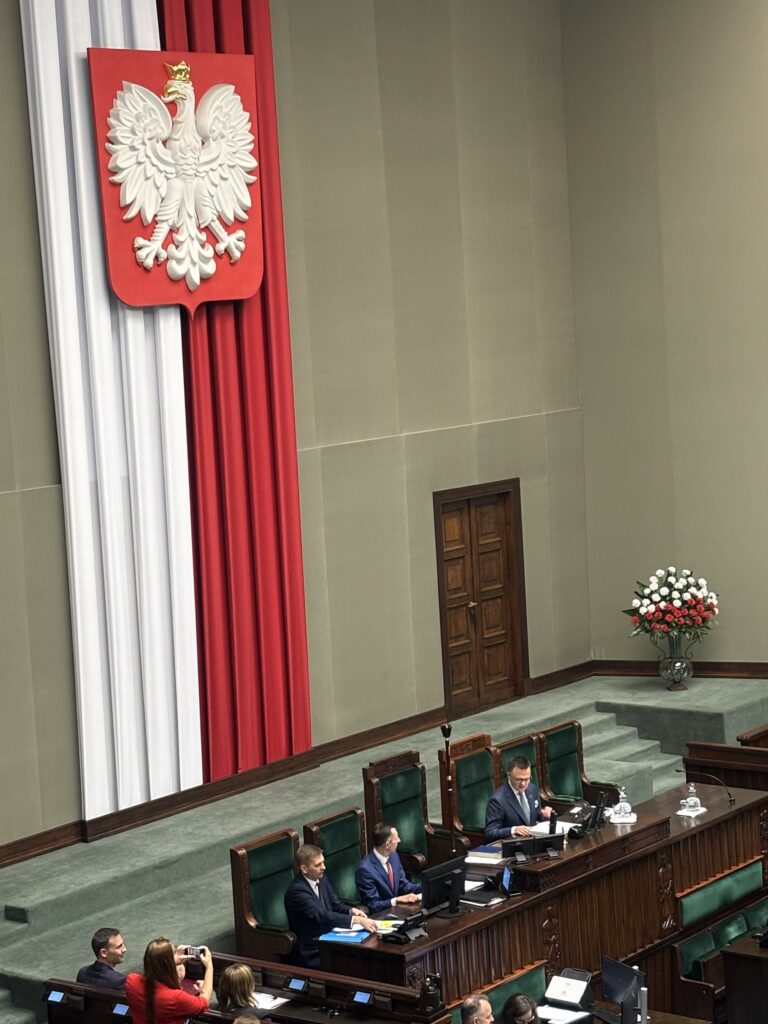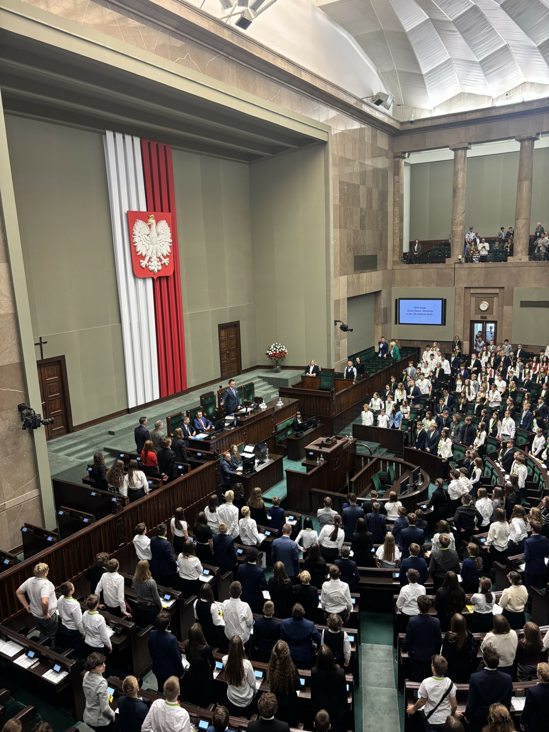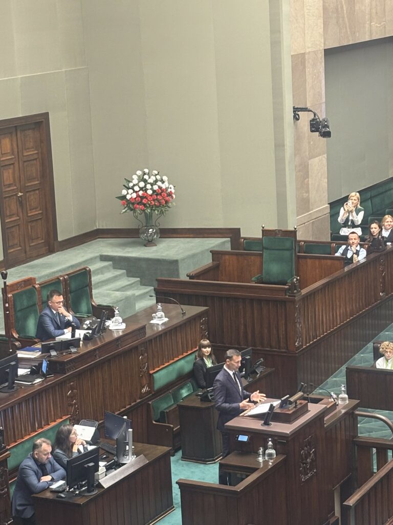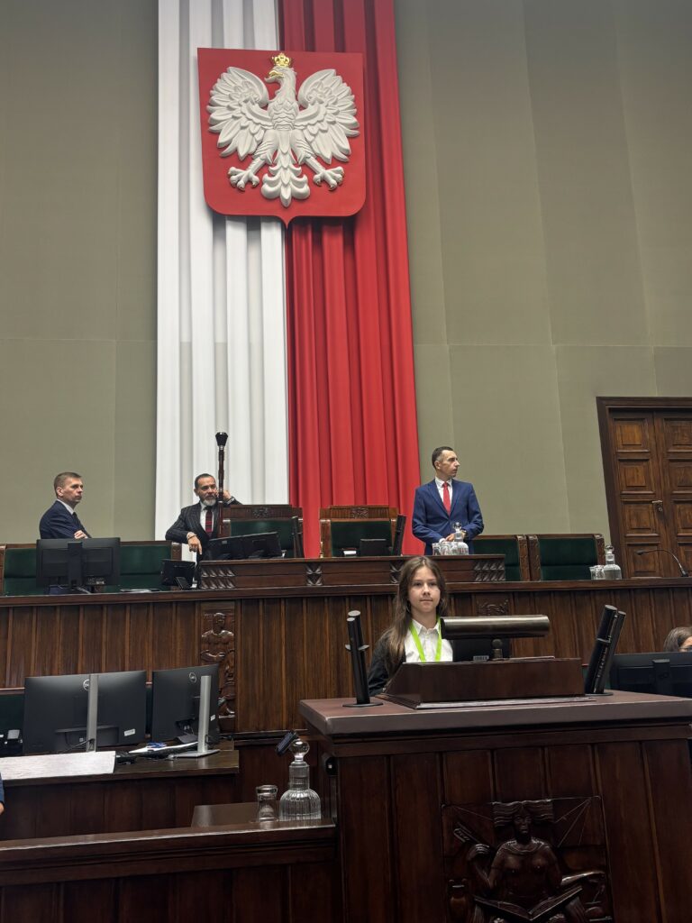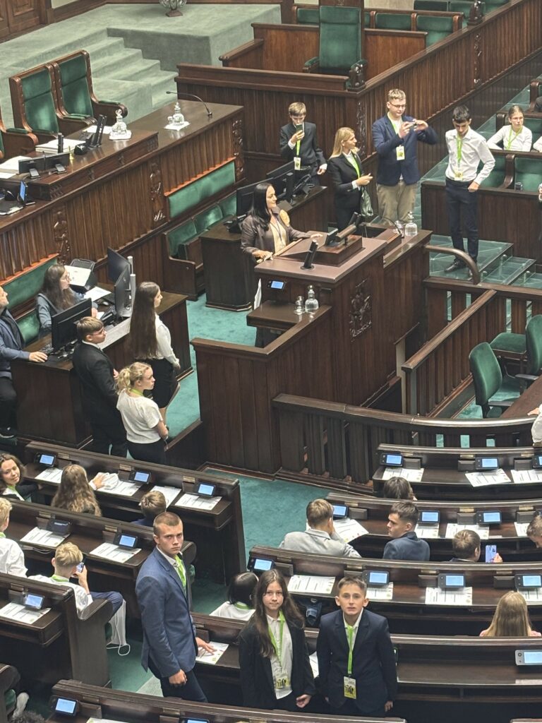 W dniach 27-28 września w Warszawie odbył się XXXI Sejm Dzieci i Młodzieży, w którym brali udział nasi uczniowie. Reprezentantami szkoły w Sejmie Rzeczpospolitej Polskiej byli: Emilia Wnęk z klasy 6b, Maciej Nowicki z klasy 7b i Filip Jasiński z klasy 8b wraz z opiekunem panią Dagmarą Kulig. W sobotę główną atrakcją było zwiedzanie Warszawy i integracja młodzieży, a w niedzielę wszyscy uczestnicy Sejmu Dzieci i Młodzieży wzięli udział w symulacji obrad sejmu, podczas których wybierali spośród swoich kandydatów Marszałka Sejmu Dzieci i Młodzieży. Uczestnicy wydarzenia mieli okazję poznać m.in. Marszałka Sejmu pana Szymona Hołownię i Wicemarszałka pana Krzysztofa Bosaka, a także polskiego astronautę pana Sławosza Uznańskiego-Wiśniewskiego. Ponadto uczniowie z całej Polski występowali na mównicy sejmowej z wystąpieniami, które zawierały najważniejsze według nich postulaty, apele i pytania. Udział w XXXI SDiM okazał się niezapomnianą przygodą. Projekt był merytoryczną dyskusją młodych, zaangażowanych społecznie ludzi, a nasi uczniowie wzorowo reprezentowali Zespół Szkolno-Przedszkolny w Rytrze. Gratulujemy im godnej naśladowania postawy![DK]