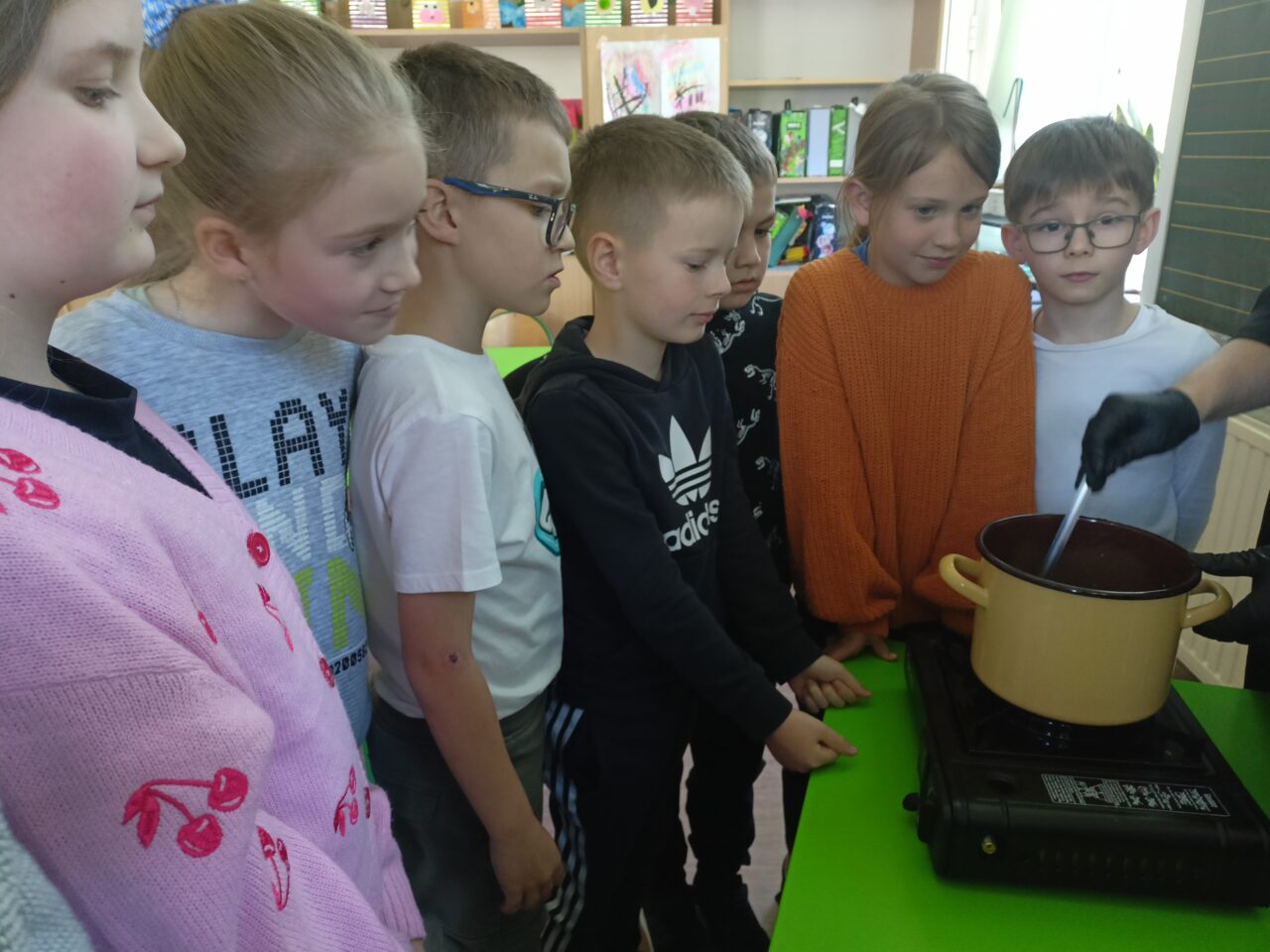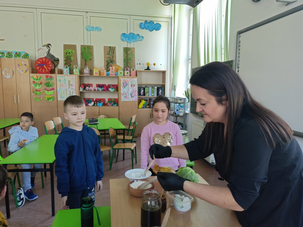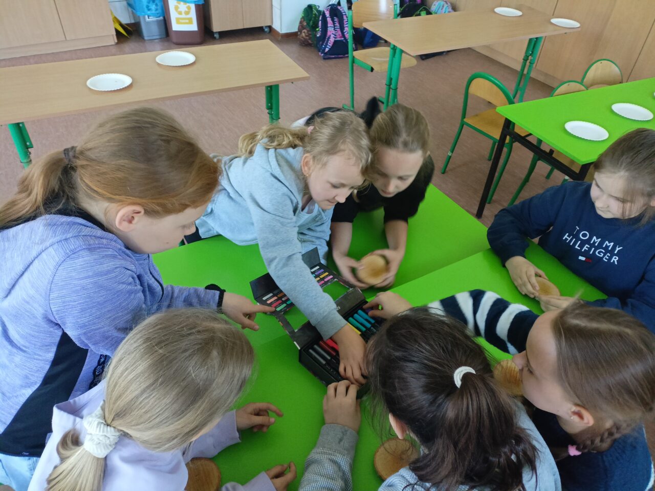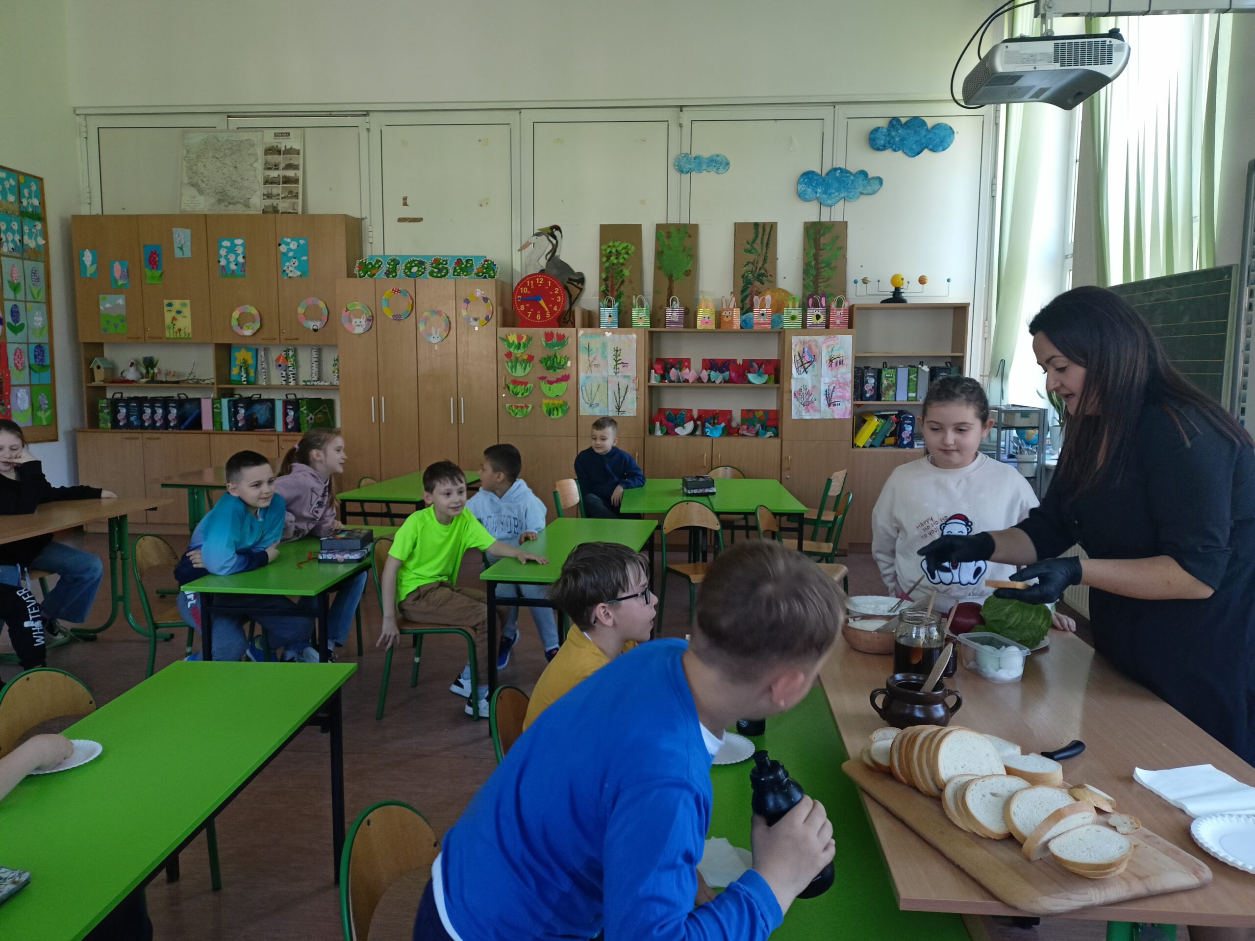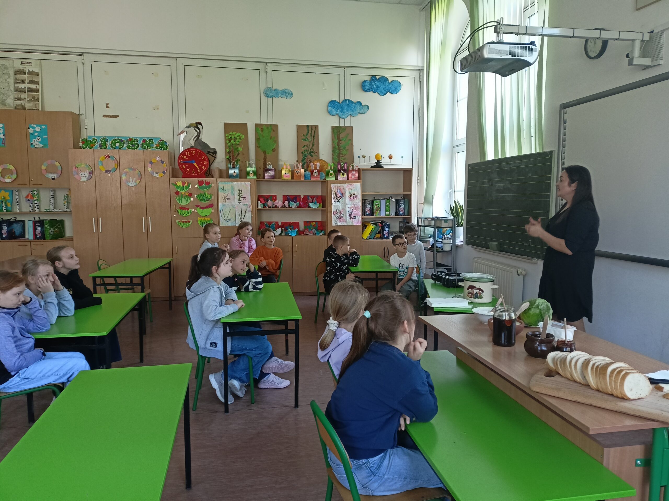 Klasy pierwsze i drugie wzięły udział w warsztatach dotyczących zdrowej żywności. Uczniowie dowiedzieli się jak ważna jest ekologia w naszym codziennym życiu oraz o negatywnym wpływie chemii używanej do produkcji żywności. Dzięki eko gospodarstwom rolnym możemy cieszyć się dobrym zdrowiem i długim życiem. Podczas zajęć dzieci odkryły tajniki powstawania masła, mleka, sera oraz czym jest gospodarstwo agroturystyczne. Warsztaty miały wymiar praktyczny. Uczniowie zobaczyli naturalny proces produkcji sera z mleka krowiego. Degustowali bio produkty takie jak: masło, dżemy, miody, śmietanę. Klasy drugie przygotowały piękne podarunki z okazji zbliżającego się Dnia Mamy. Tworzyli świece z wosku pszczelego i dekorowali podkładki z drzewa brzozowego. [MS]