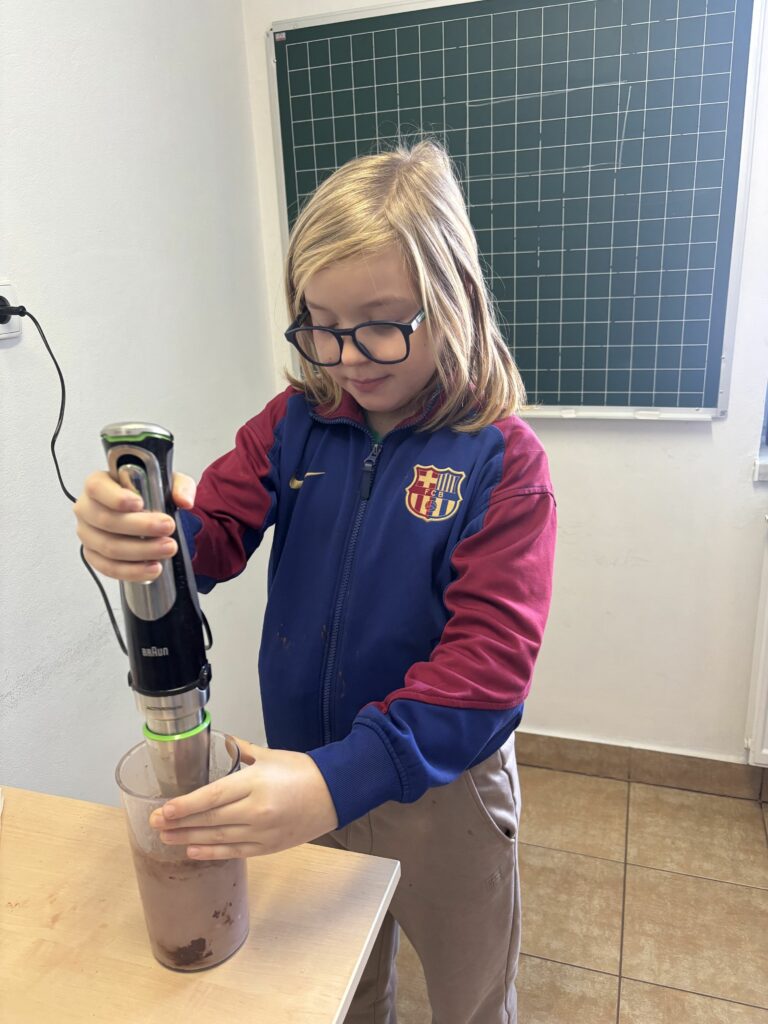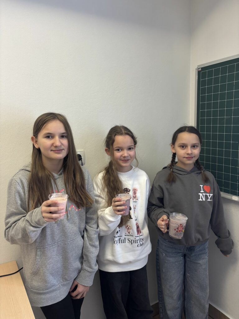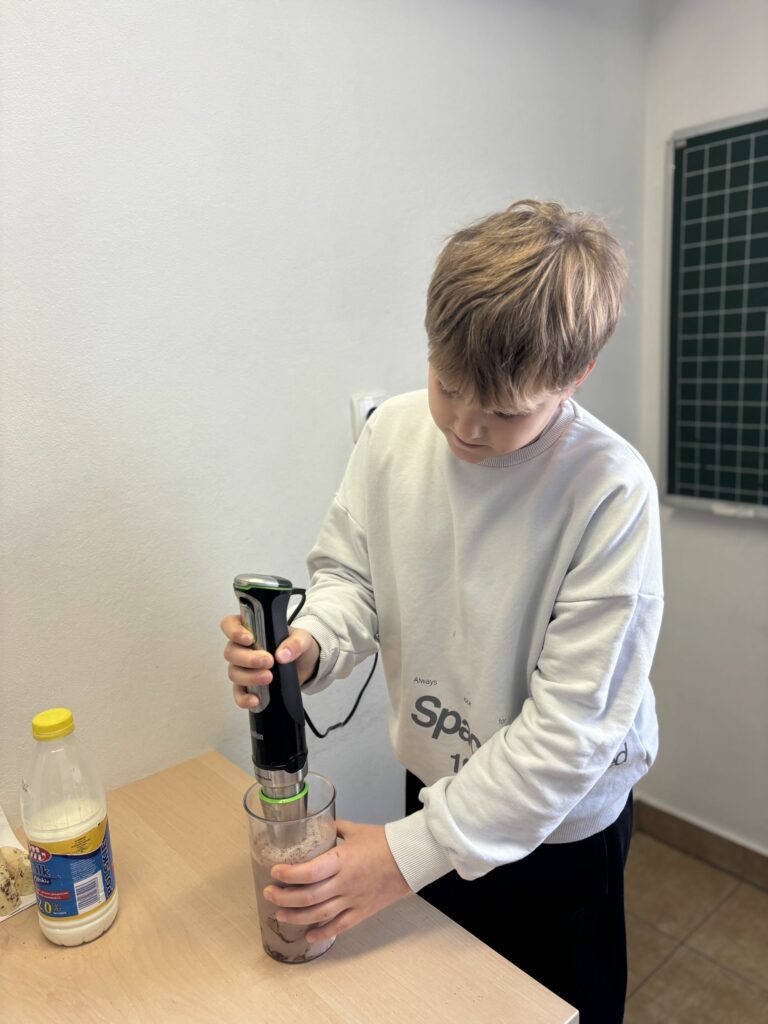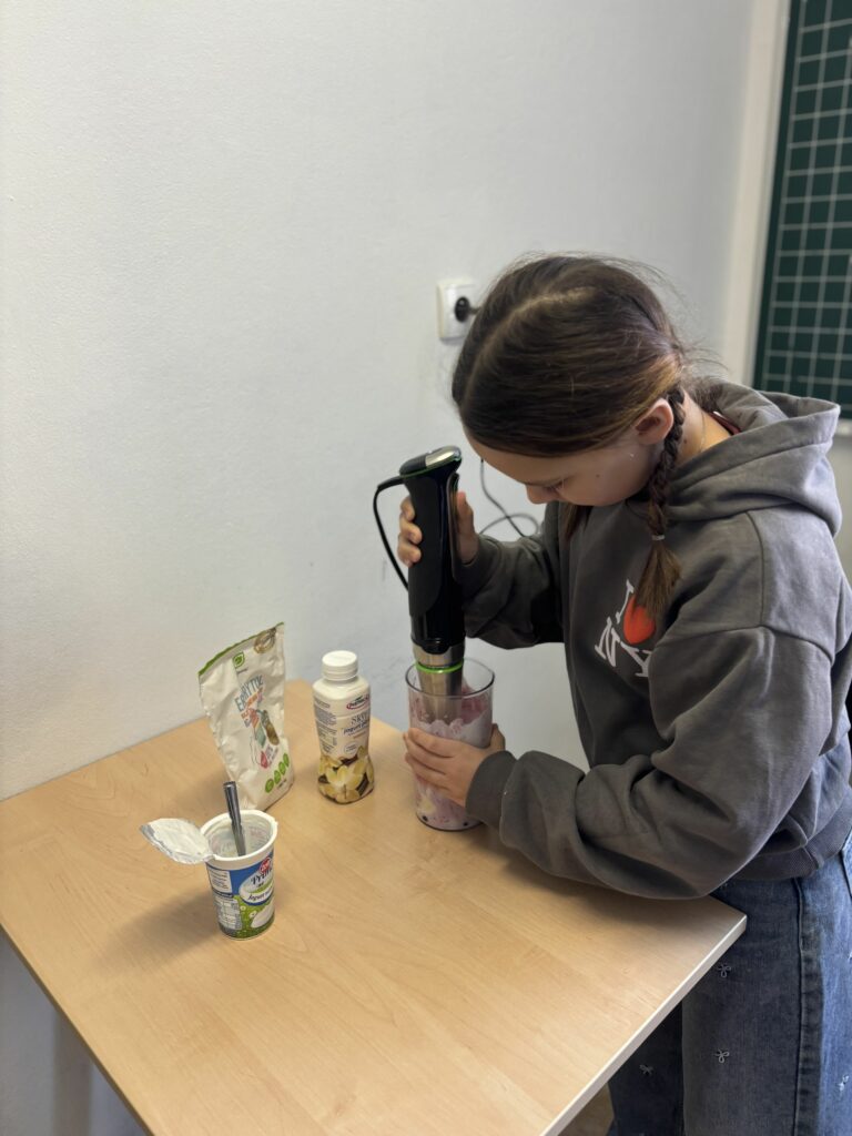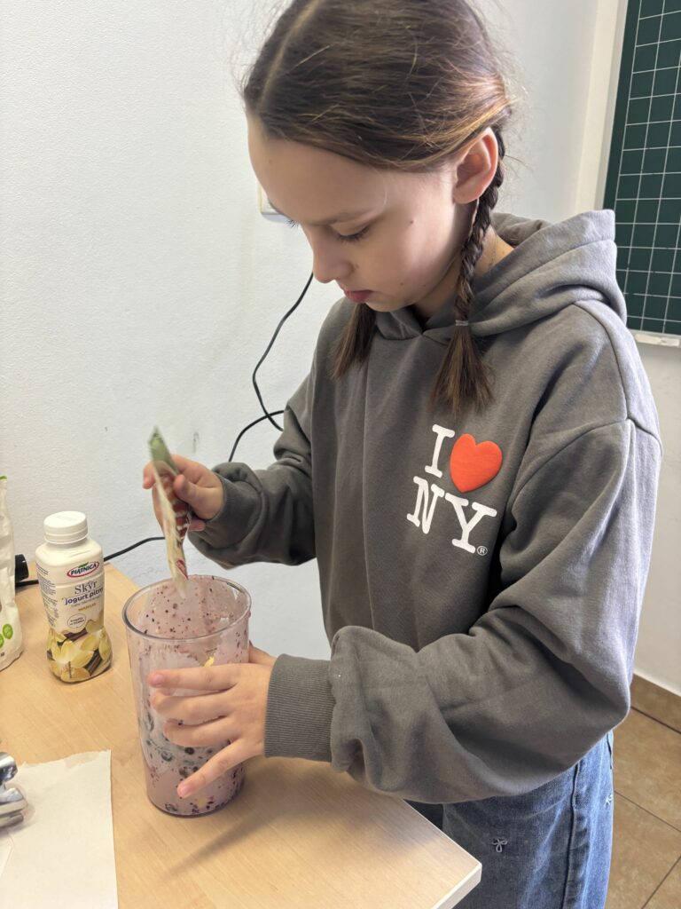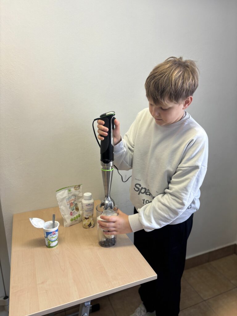 W ramach zajęć z edukacji zdrowotnej, realizowanych również w związku z udziałem szkoły w ogólnopolskim programie edukacyjnym „Trzymaj Formę!”, uczniowie klas czwartych uczestniczyli – w kolejnych już – zajęciach kulinarnych. Podczas lekcji dzieci przygotowywały zdrowy koktajl, poznając zasady prawidłowego odżywiania oraz znaczenie odpowiedniego nawodnienia dla zdrowia. Uczniowie z dużym zaangażowaniem dobierali naturalne składniki, ucząc się jednocześnie zasad higieny, współpracy w grupie oraz bezpiecznego korzystania z kuchennych akcesoriów. Czwartoklasiści poznali także przepis na zdrowy napar pomarańczowo-imbirowy, który chroni przed infekcjami. Mikstura bardzo im smakowała! Zajęcia miały charakter praktyczny i cieszyły się dużym zainteresowaniem wśród uczniów. Na pewno powtórzymy je jeszcze kilka razy! [DK]