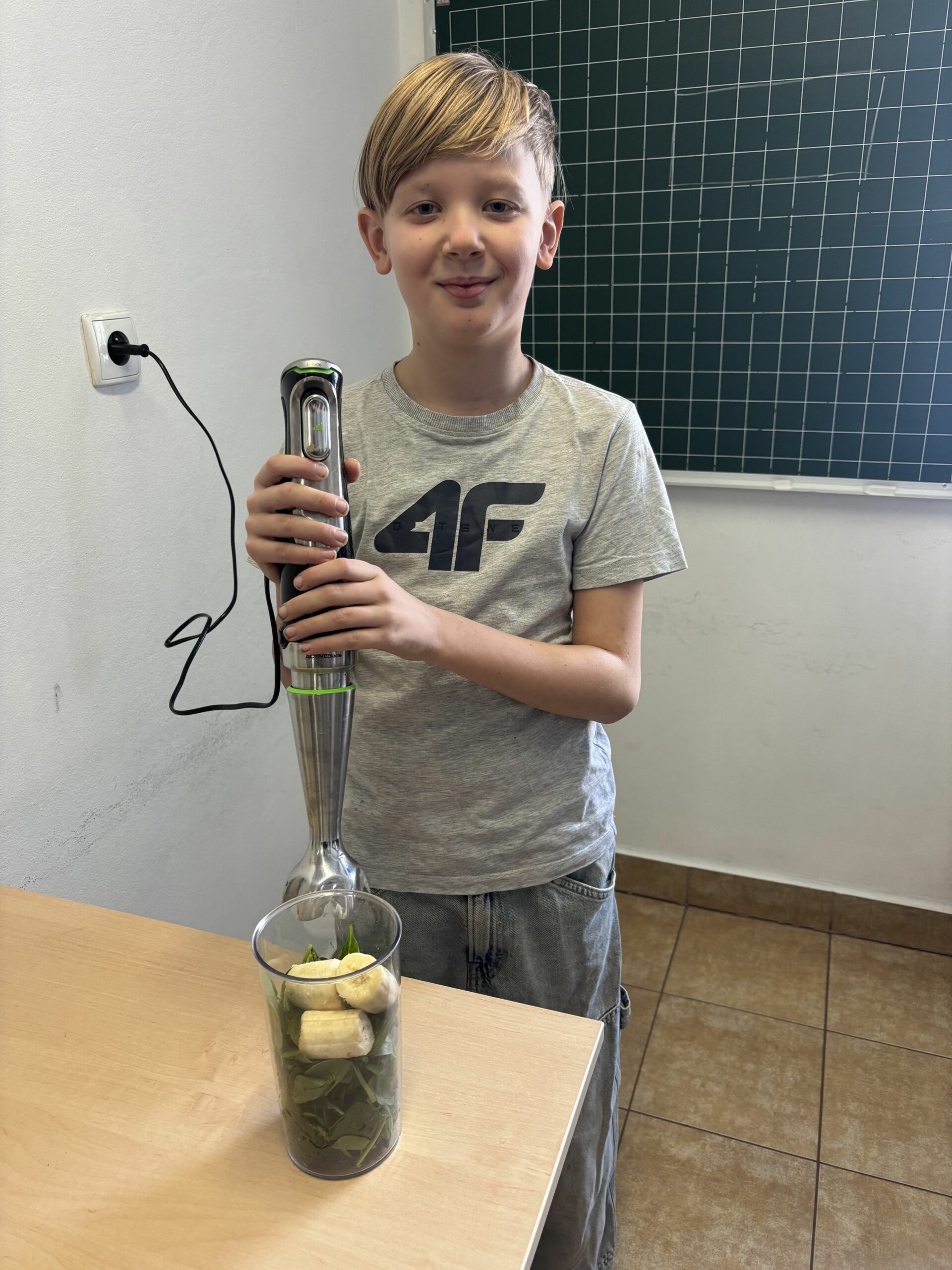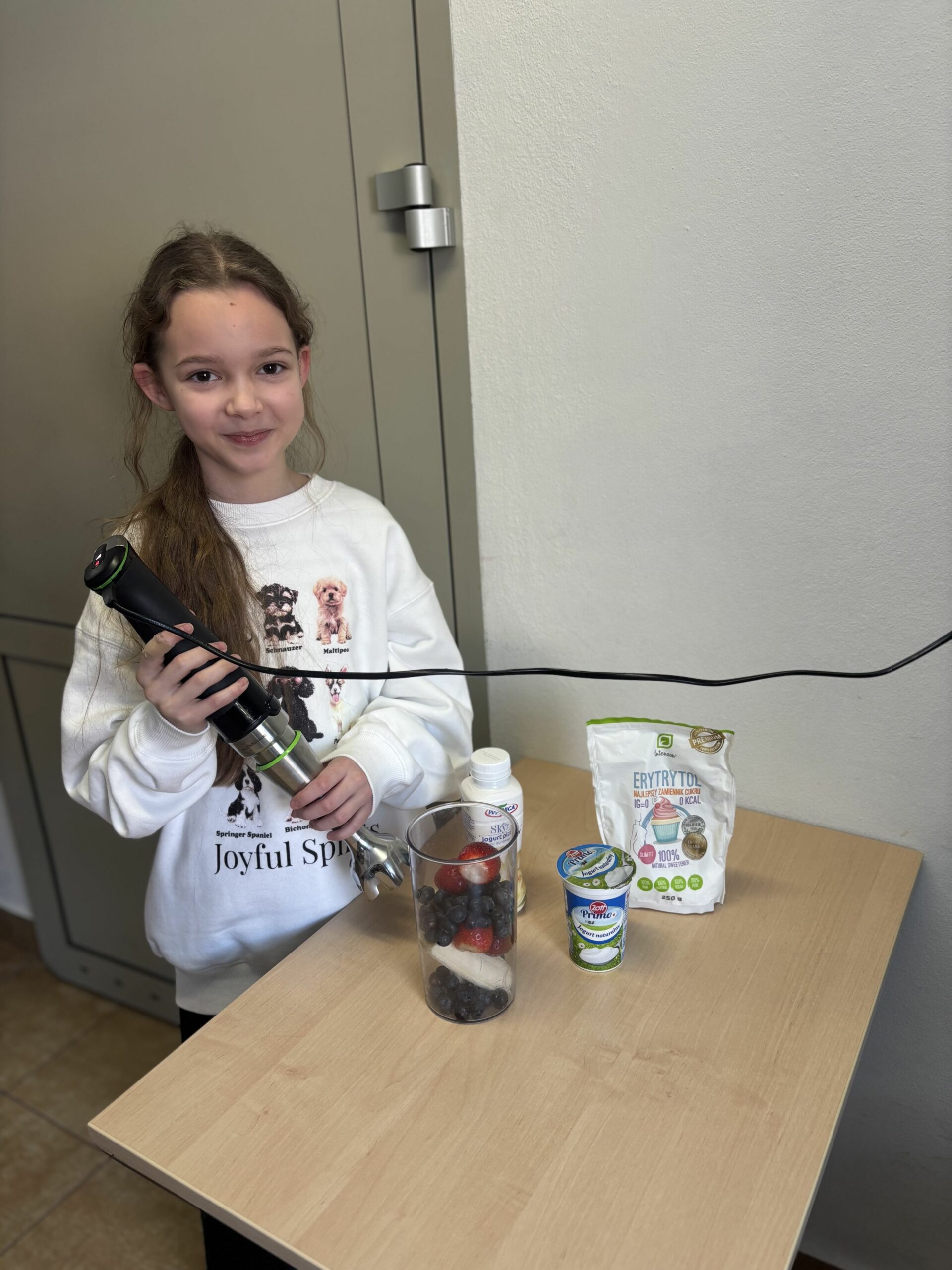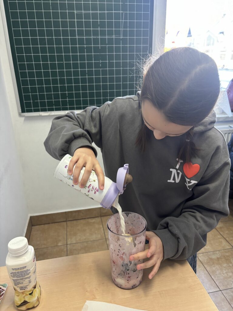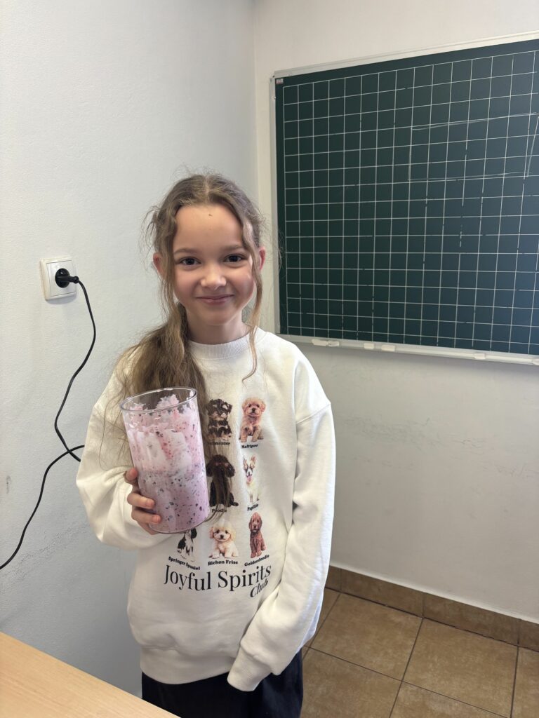 W ramach zajęć z edukacji zdrowotnej, realizowanych również w związku z udziałem szkoły w ogólnopolskim programie edukacyjnym „Trzymaj Formę!”, uczniowie klas czwartych uczestniczyli – w kolejnych już – zajęciach kulinarnych. Podczas lekcji dzieci przygotowywały zdrowy koktajl, poznając zasady prawidłowego odżywiania oraz znaczenie odpowiedniego nawodnienia dla zdrowia. Uczniowie z dużym zaangażowaniem dobierali naturalne składniki, ucząc się jednocześnie zasad higieny, współpracy w grupie oraz bezpiecznego korzystania z kuchennych akcesoriów. Czwartoklasiści poznali także przepis na zdrowy napar pomarańczowo-imbirowy, który chroni przed infekcjami. Mikstura bardzo im smakowała! Zajęcia miały charakter praktyczny i cieszyły się dużym zainteresowaniem wśród uczniów. Na pewno powtórzymy je jeszcze kilka razy! [DK]