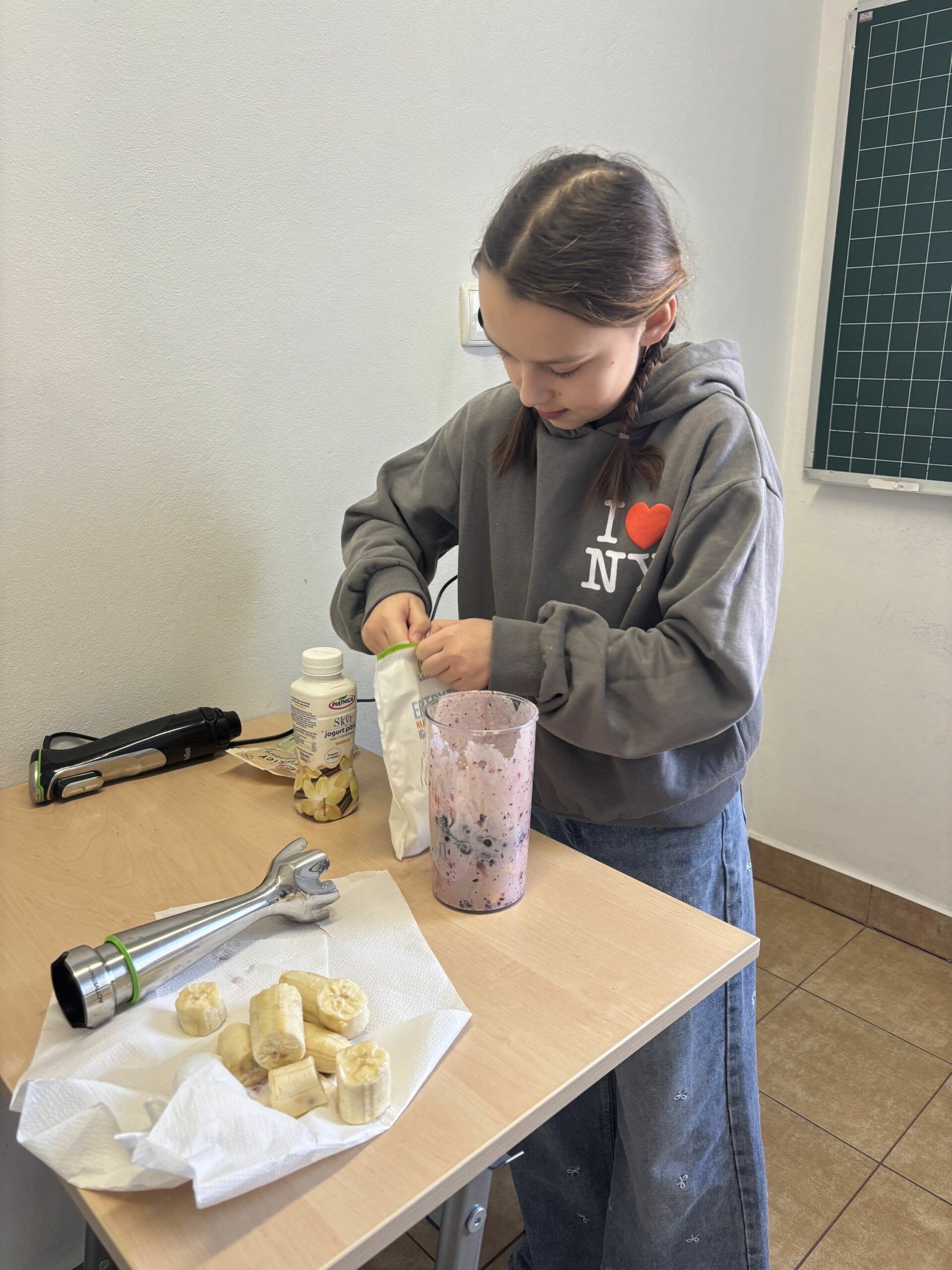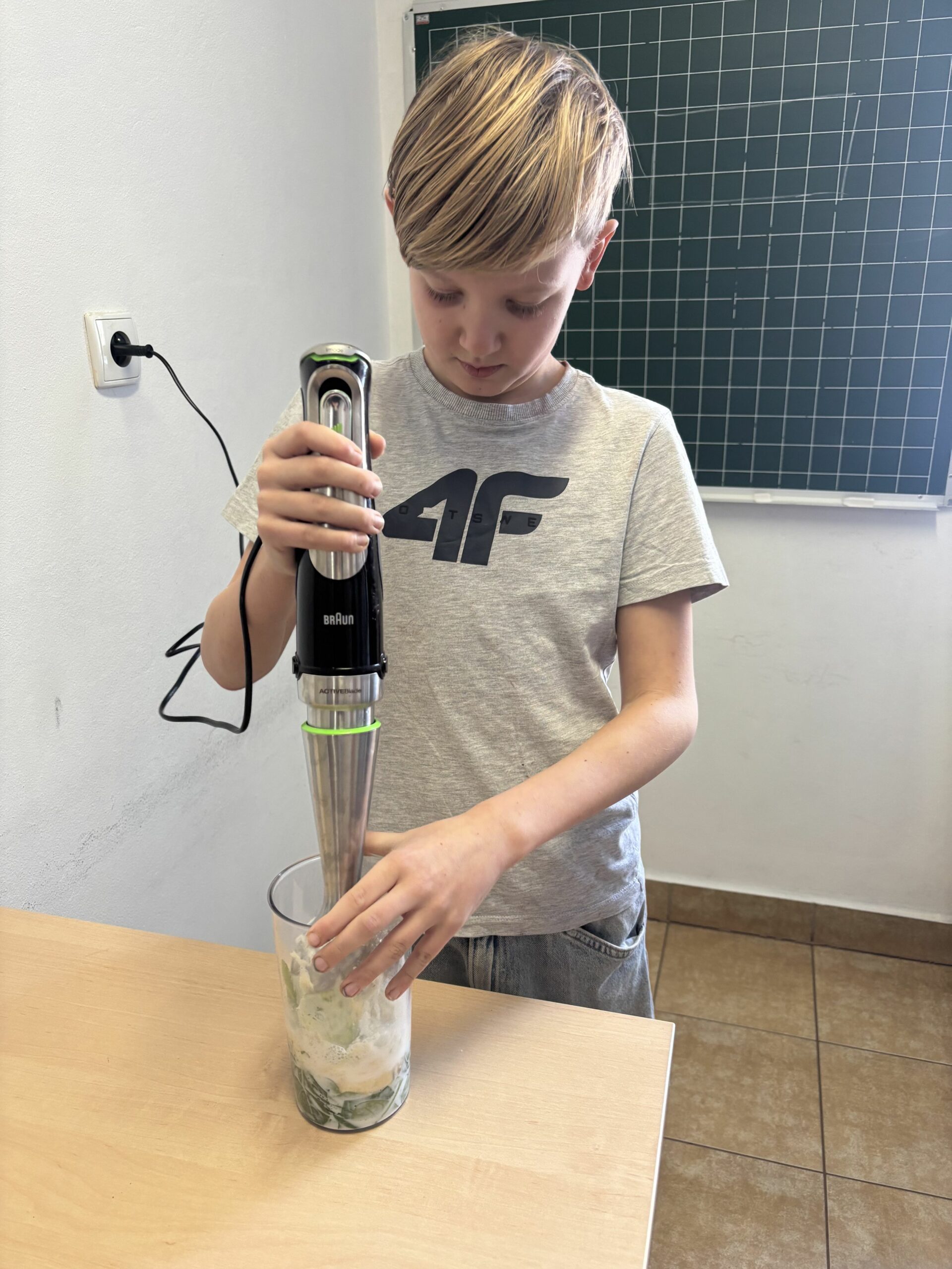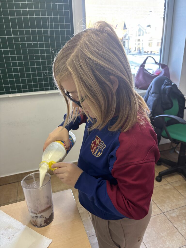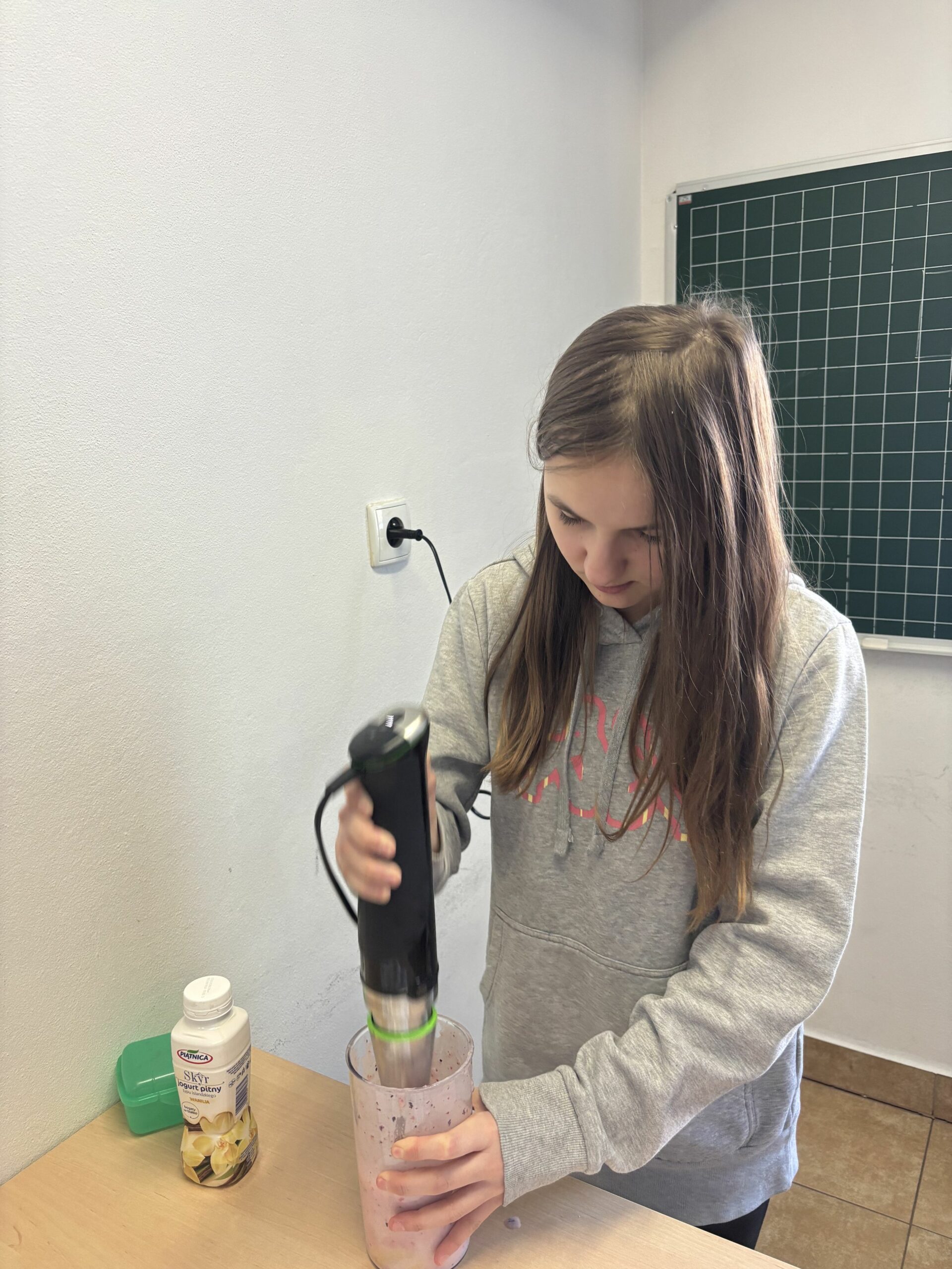 W ramach zajęć z edukacji zdrowotnej, realizowanych również w związku z udziałem szkoły w ogólnopolskim programie edukacyjnym „Trzymaj Formę!”, uczniowie klas czwartych uczestniczyli – w kolejnych już – zajęciach kulinarnych. Podczas lekcji dzieci przygotowywały zdrowy koktajl, poznając zasady prawidłowego odżywiania oraz znaczenie odpowiedniego nawodnienia dla zdrowia. Uczniowie z dużym zaangażowaniem dobierali naturalne składniki, ucząc się jednocześnie zasad higieny, współpracy w grupie oraz bezpiecznego korzystania z kuchennych akcesoriów. Czwartoklasiści poznali także przepis na zdrowy napar pomarańczowo-imbirowy, który chroni przed infekcjami. Mikstura bardzo im smakowała! Zajęcia miały charakter praktyczny i cieszyły się dużym zainteresowaniem wśród uczniów. Na pewno powtórzymy je jeszcze kilka razy! [DK]