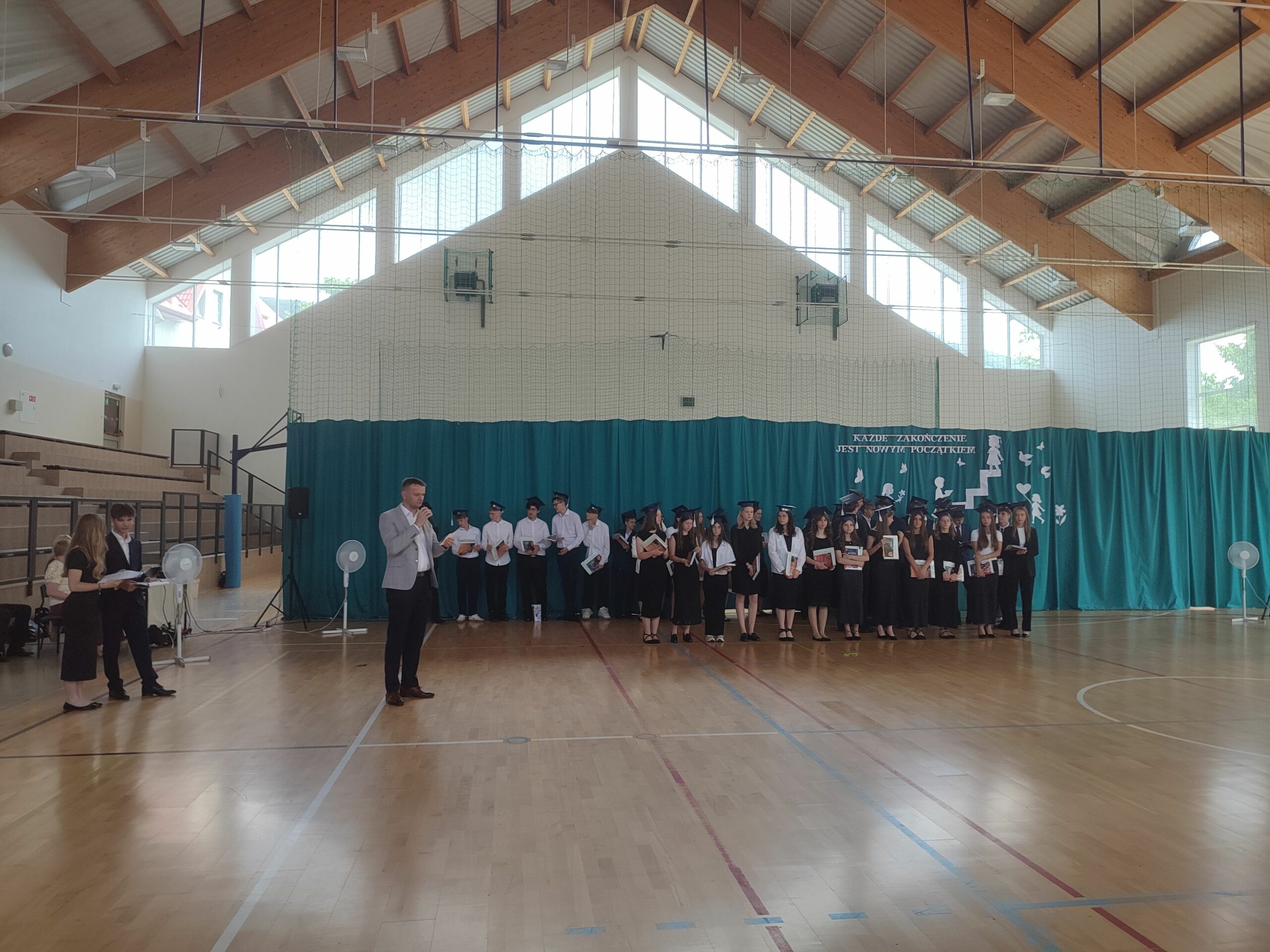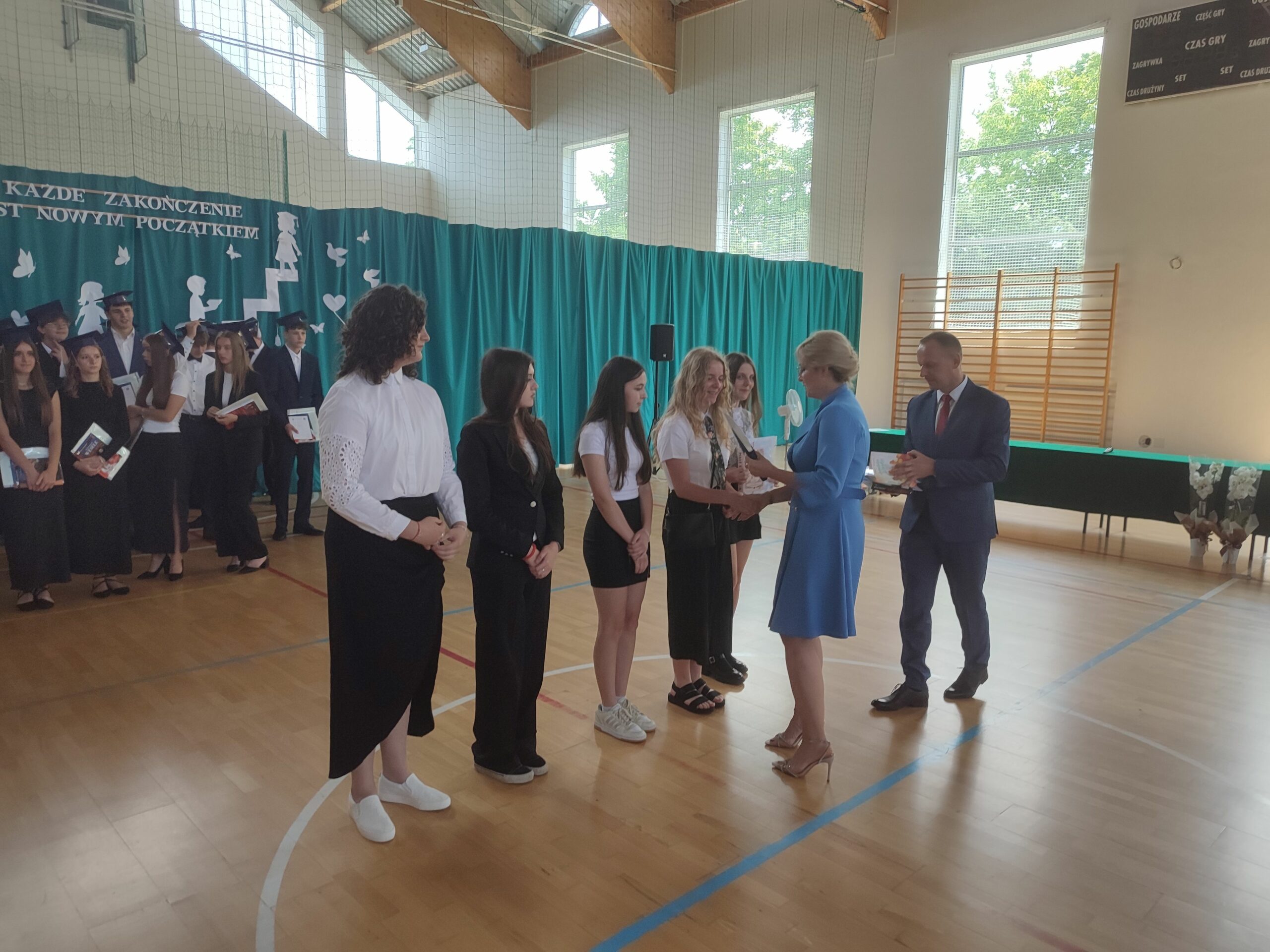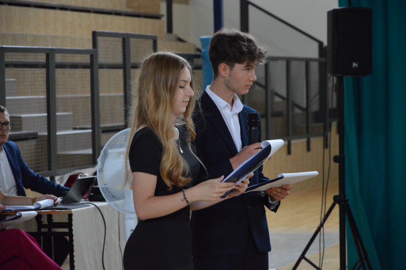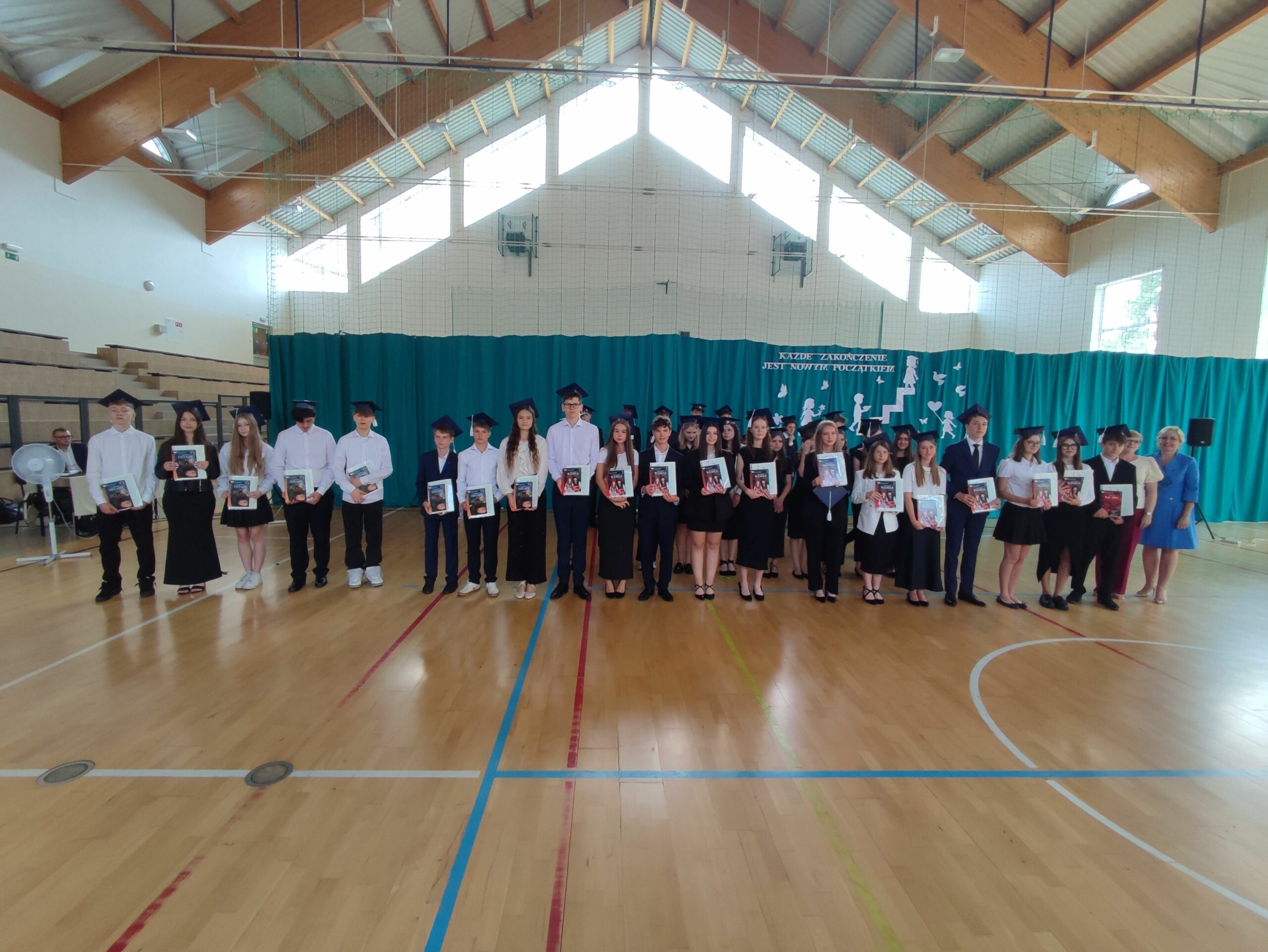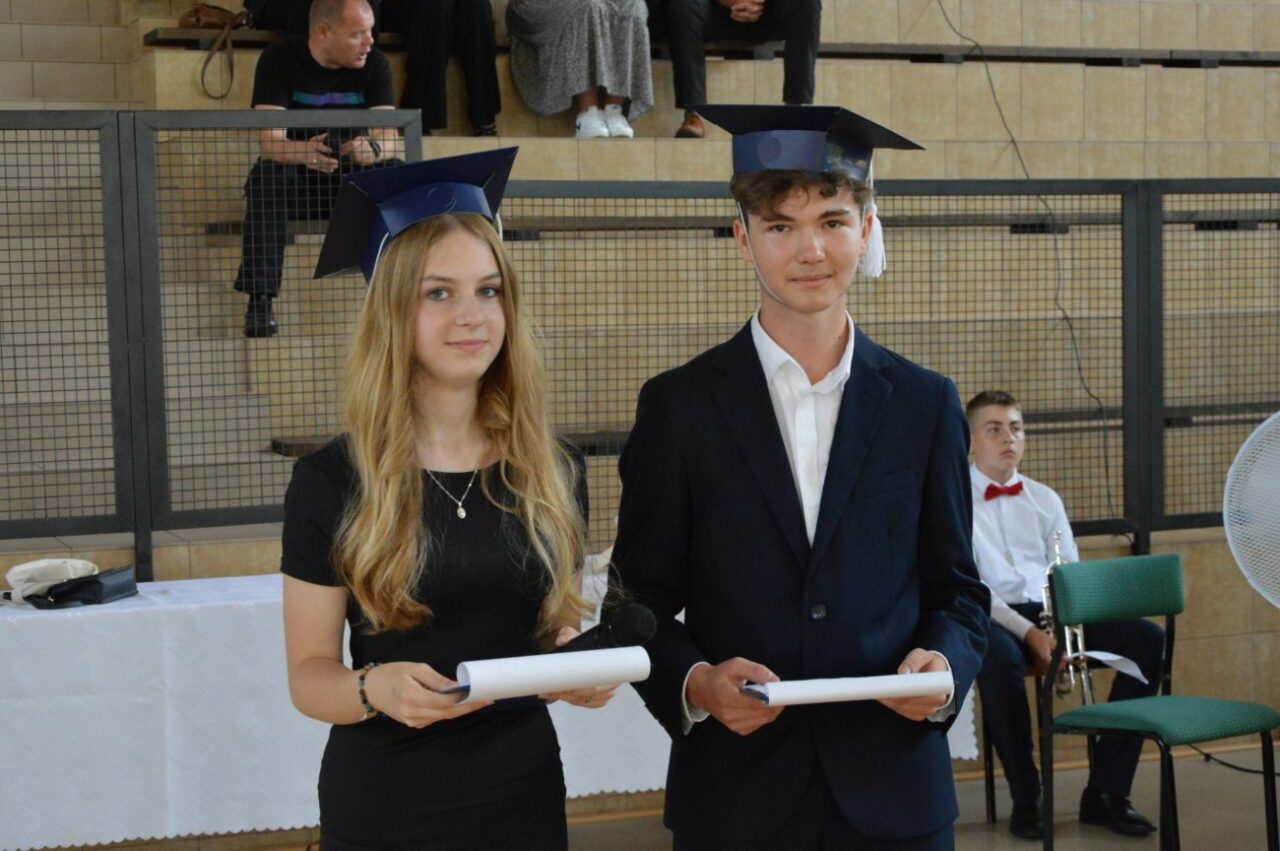 Dzisiaj, w uroczystej atmosferze, żegnamy kolejny rok szkolny, czas wytężonej pracy, nauki. Chciałabym wyrazić wdzięczność wszystkim uczniom za ich zaangażowanie, chęć zdobywania wiedzy i rozwijania swoich pasji. Miniony rok był dla Naszej szkoły pełen wydarzeń i inicjatyw. Uczniowie uczestniczyli w wielu konkursach, olimpiadach, zawodach sportowych, imprezach kulturalnych, jak również licznych projektach edukacyjnych, rozwijając swoje zainteresowania i talenty. Wiele z tych działań przyniosło nam jako szkole sukcesy, z których jesteśmy dumni. Pamiętajmy jednak, że prawdziwe sukcesy to nie tylko te widoczne na zewnątrz, ale przede wszystkim te, które mierzymy postępem w nauce, rozwojem osobistym i umiejętnością radzenia sobie z wyzwaniami.
