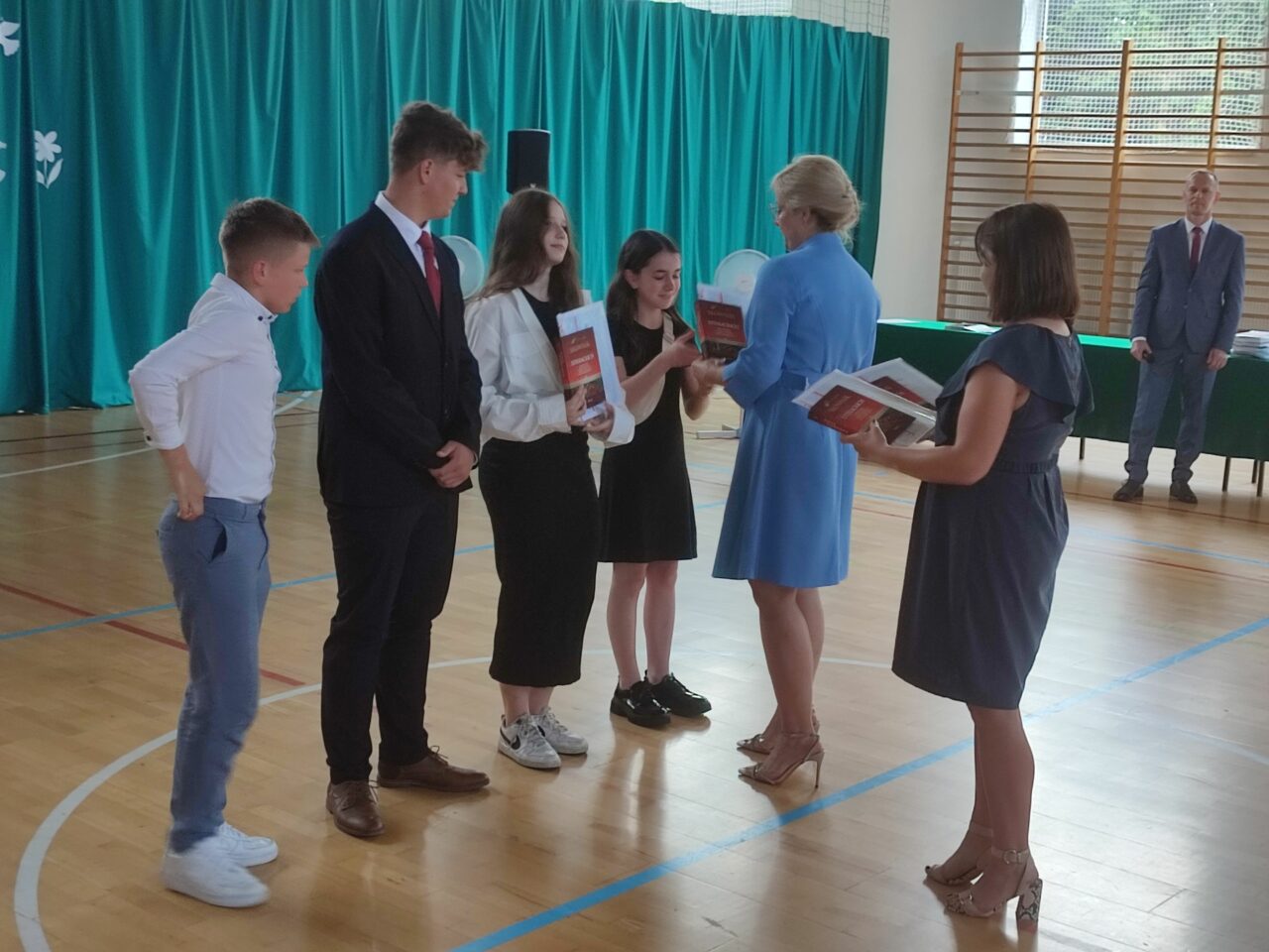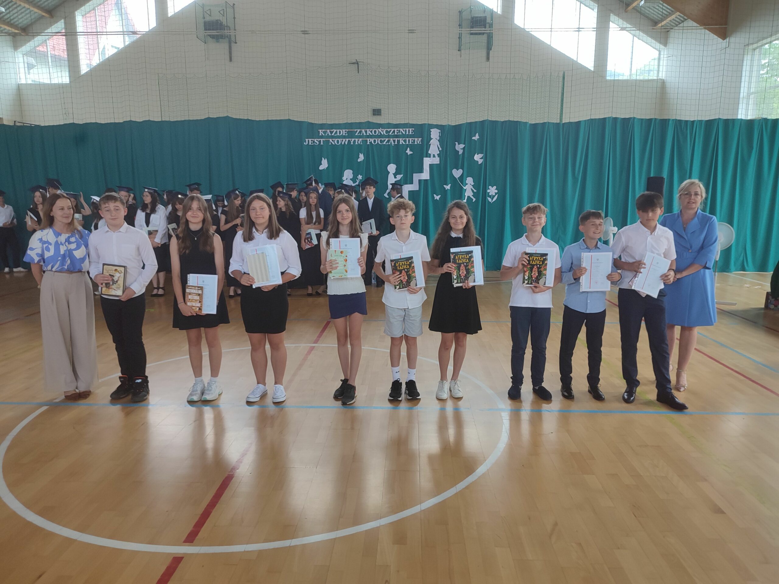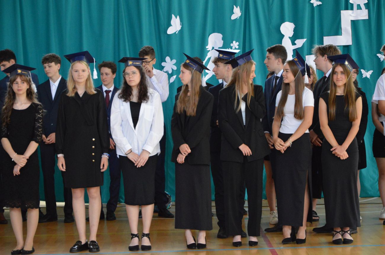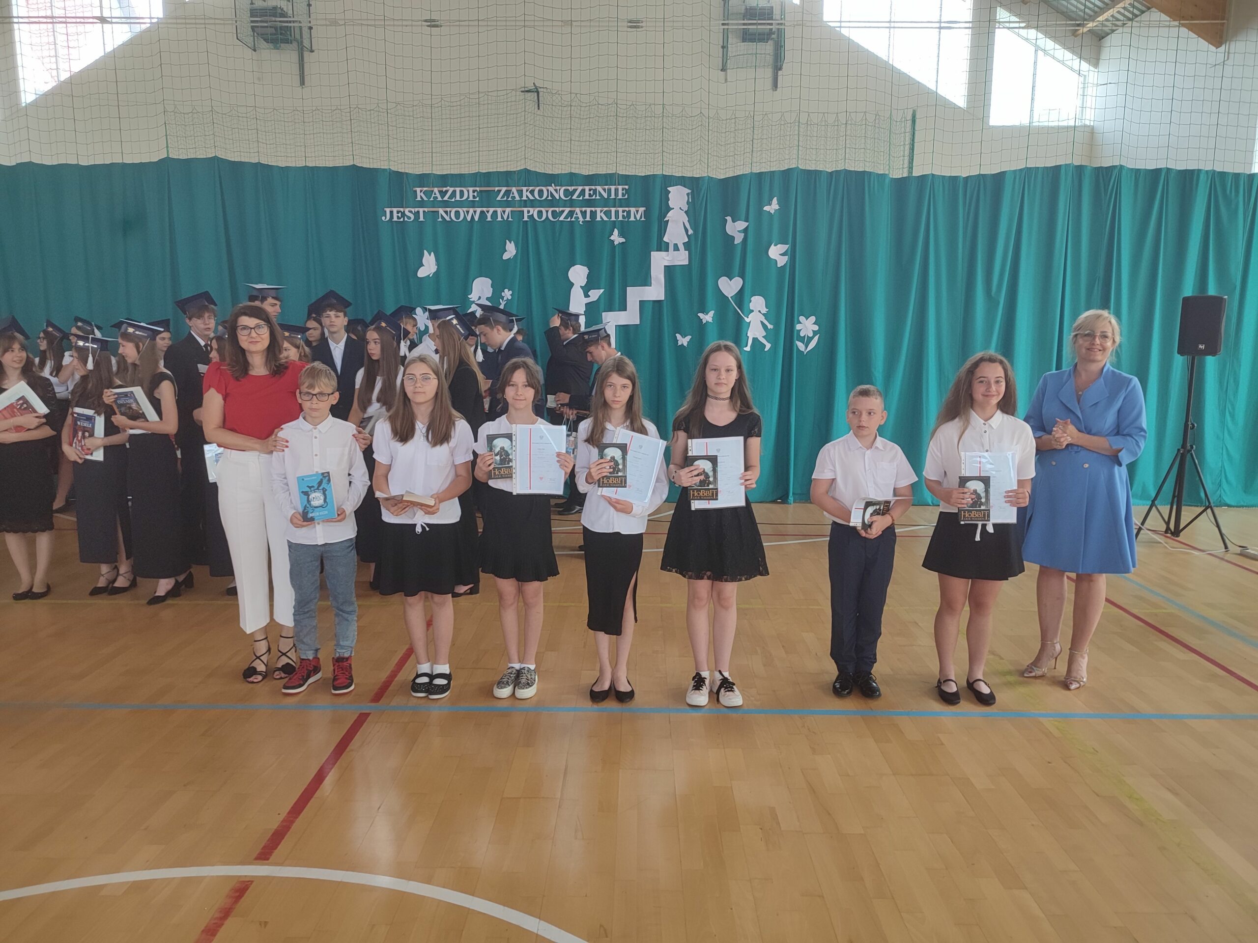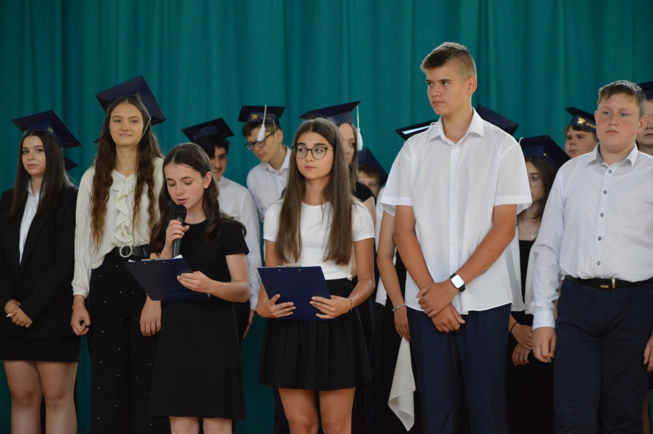 Dzisiaj, w uroczystej atmosferze, żegnamy kolejny rok szkolny, czas wytężonej pracy, nauki. Chciałabym wyrazić wdzięczność wszystkim uczniom za ich zaangażowanie, chęć zdobywania wiedzy i rozwijania swoich pasji. Miniony rok był dla Naszej szkoły pełen wydarzeń i inicjatyw. Uczniowie uczestniczyli w wielu konkursach, olimpiadach, zawodach sportowych, imprezach kulturalnych, jak również licznych projektach edukacyjnych, rozwijając swoje zainteresowania i talenty. Wiele z tych działań przyniosło nam jako szkole sukcesy, z których jesteśmy dumni. Pamiętajmy jednak, że prawdziwe sukcesy to nie tylko te widoczne na zewnątrz, ale przede wszystkim te, które mierzymy postępem w nauce, rozwojem osobistym i umiejętnością radzenia sobie z wyzwaniami.