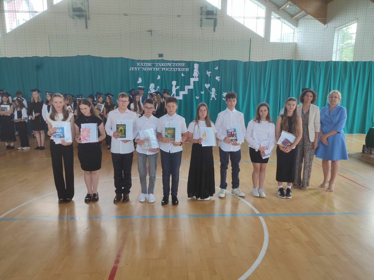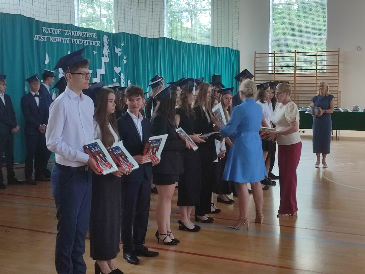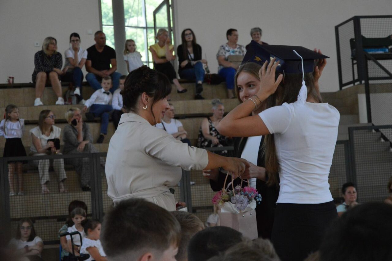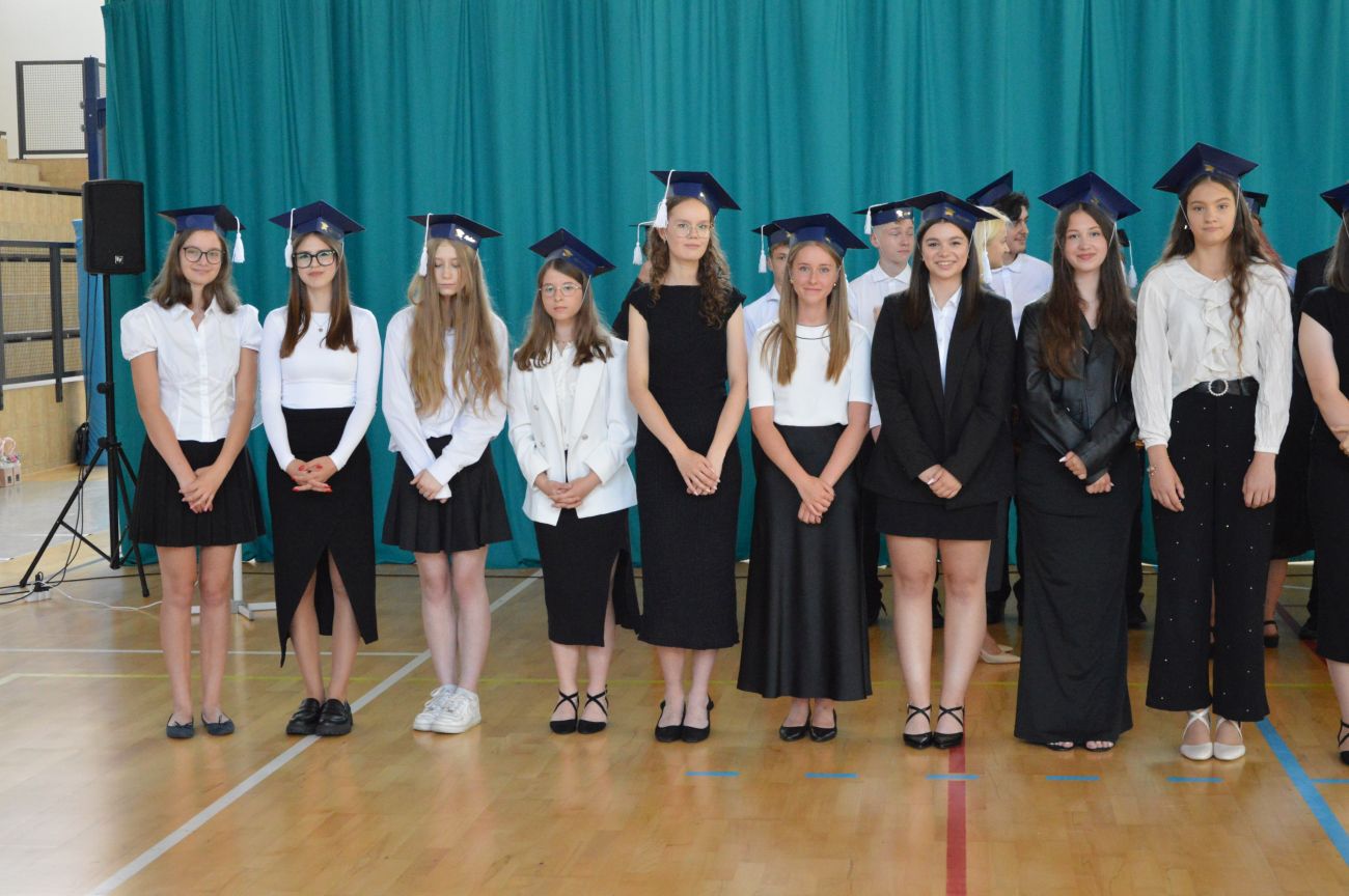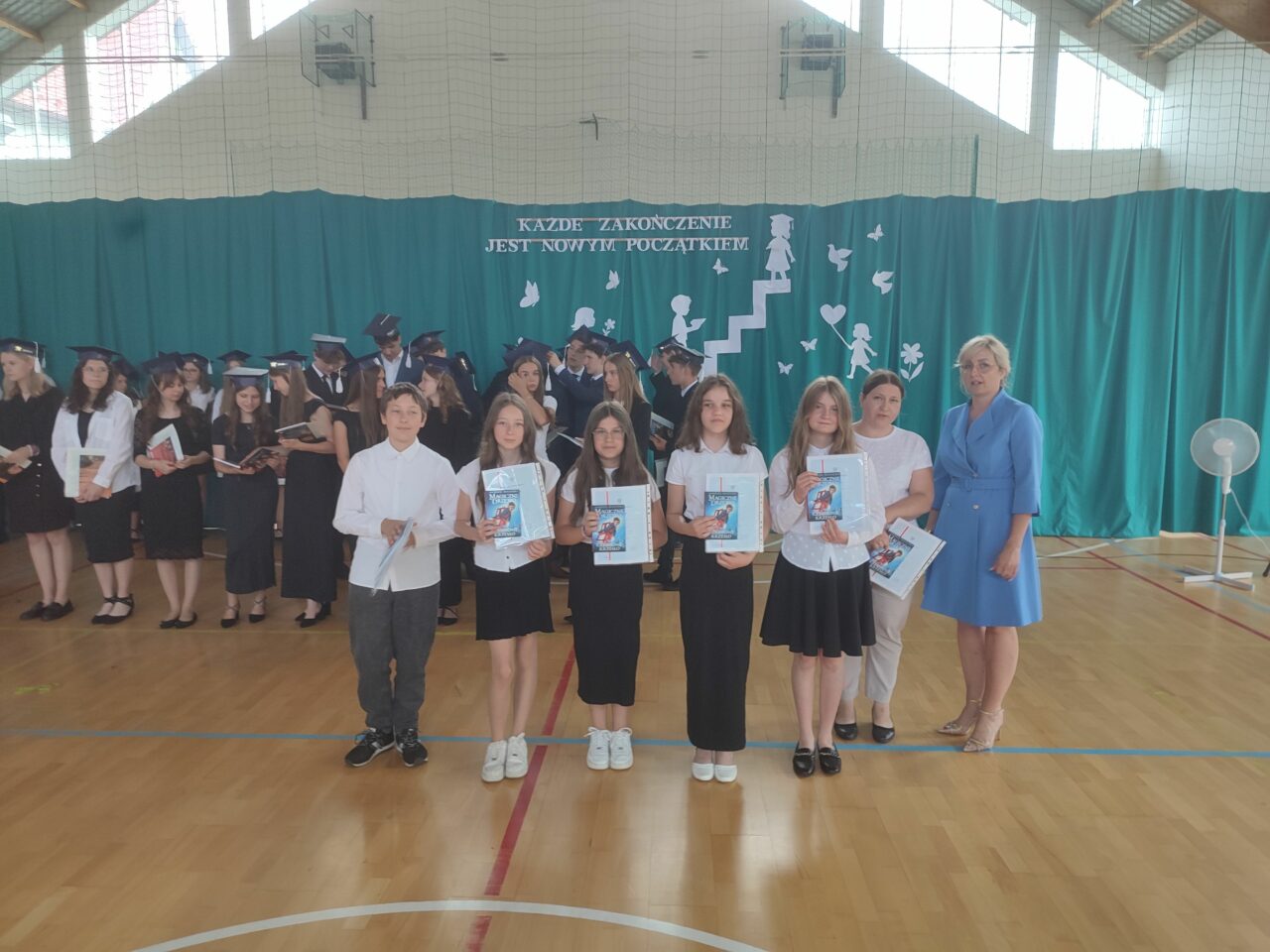 Dzisiaj, w uroczystej atmosferze, żegnamy kolejny rok szkolny, czas wytężonej pracy, nauki. Chciałabym wyrazić wdzięczność wszystkim uczniom za ich zaangażowanie, chęć zdobywania wiedzy i rozwijania swoich pasji. Miniony rok był dla Naszej szkoły pełen wydarzeń i inicjatyw. Uczniowie uczestniczyli w wielu konkursach, olimpiadach, zawodach sportowych, imprezach kulturalnych, jak również licznych projektach edukacyjnych, rozwijając swoje zainteresowania i talenty. Wiele z tych działań przyniosło nam jako szkole sukcesy, z których jesteśmy dumni. Pamiętajmy jednak, że prawdziwe sukcesy to nie tylko te widoczne na zewnątrz, ale przede wszystkim te, które mierzymy postępem w nauce, rozwojem osobistym i umiejętnością radzenia sobie z wyzwaniami.
