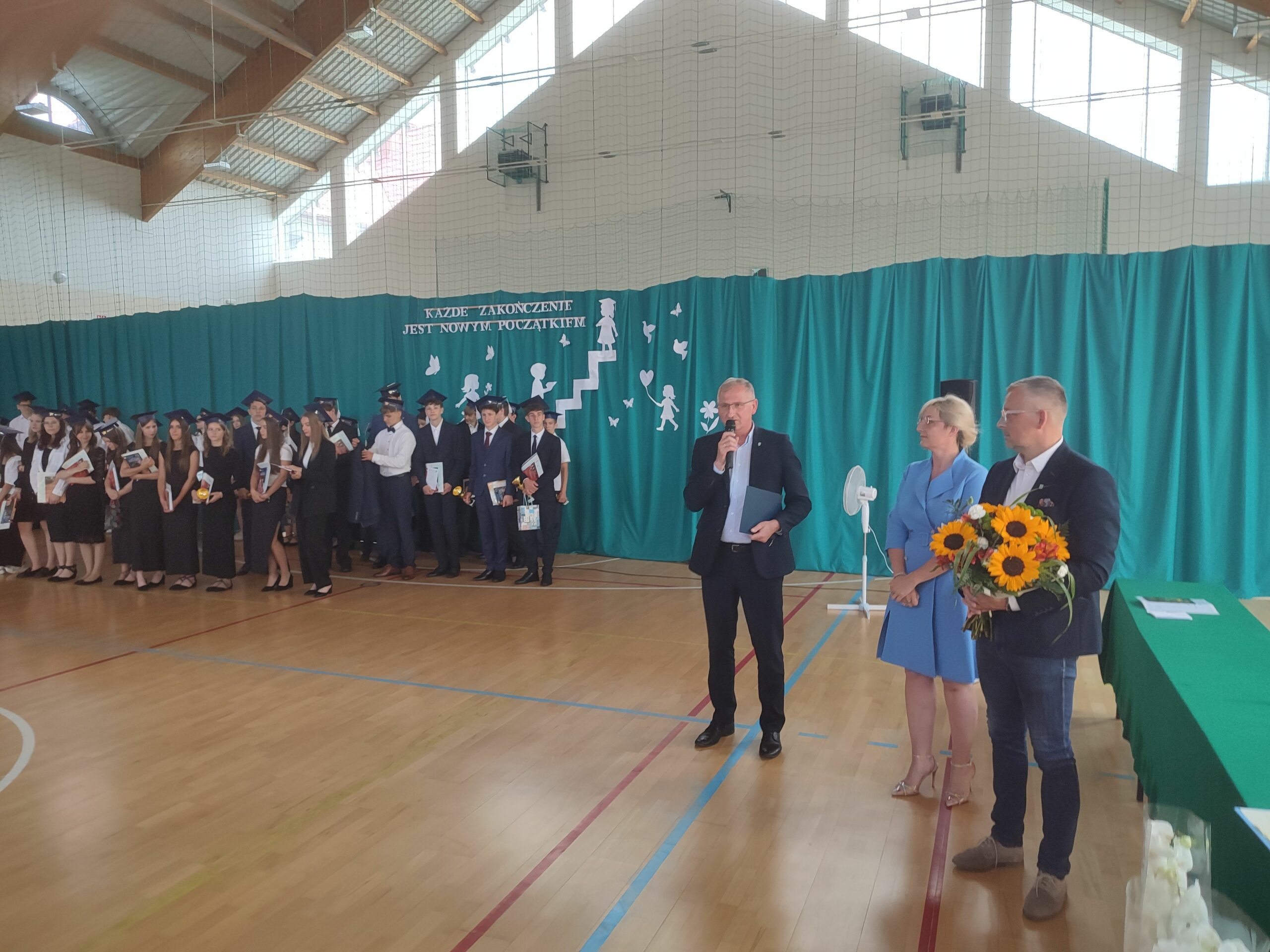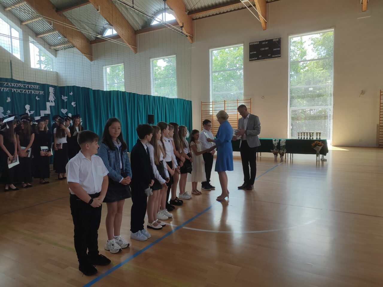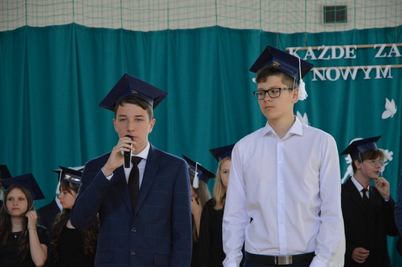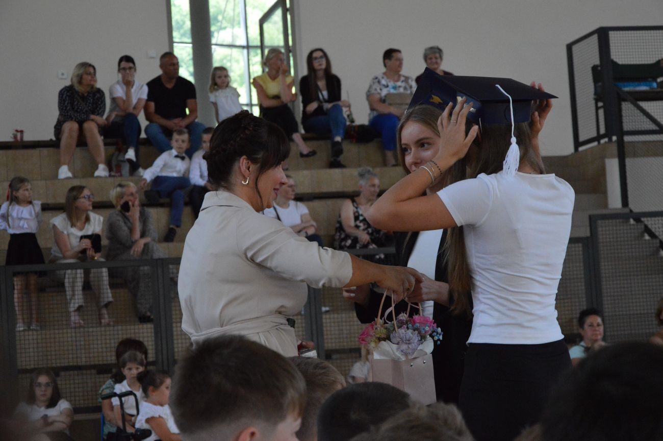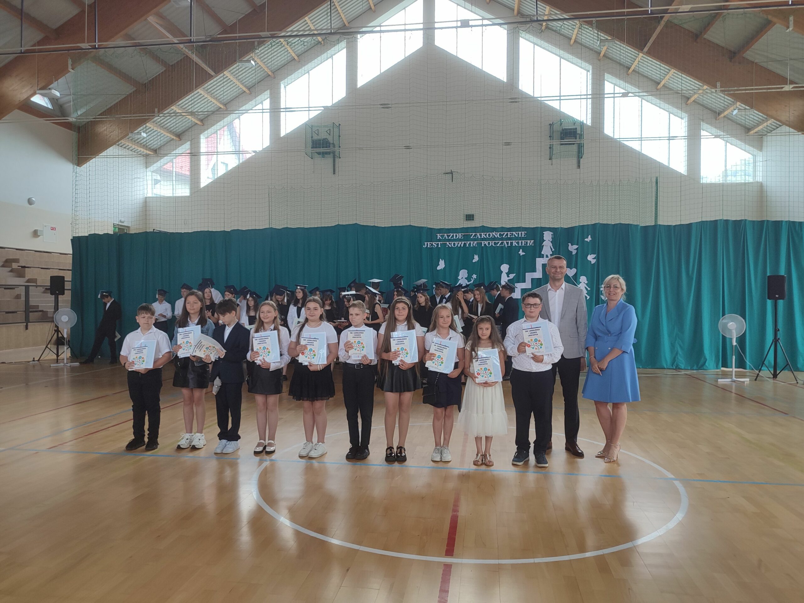 Dzisiaj, w uroczystej atmosferze, żegnamy kolejny rok szkolny, czas wytężonej pracy, nauki. Chciałabym wyrazić wdzięczność wszystkim uczniom za ich zaangażowanie, chęć zdobywania wiedzy i rozwijania swoich pasji. Miniony rok był dla Naszej szkoły pełen wydarzeń i inicjatyw. Uczniowie uczestniczyli w wielu konkursach, olimpiadach, zawodach sportowych, imprezach kulturalnych, jak również licznych projektach edukacyjnych, rozwijając swoje zainteresowania i talenty. Wiele z tych działań przyniosło nam jako szkole sukcesy, z których jesteśmy dumni. Pamiętajmy jednak, że prawdziwe sukcesy to nie tylko te widoczne na zewnątrz, ale przede wszystkim te, które mierzymy postępem w nauce, rozwojem osobistym i umiejętnością radzenia sobie z wyzwaniami.