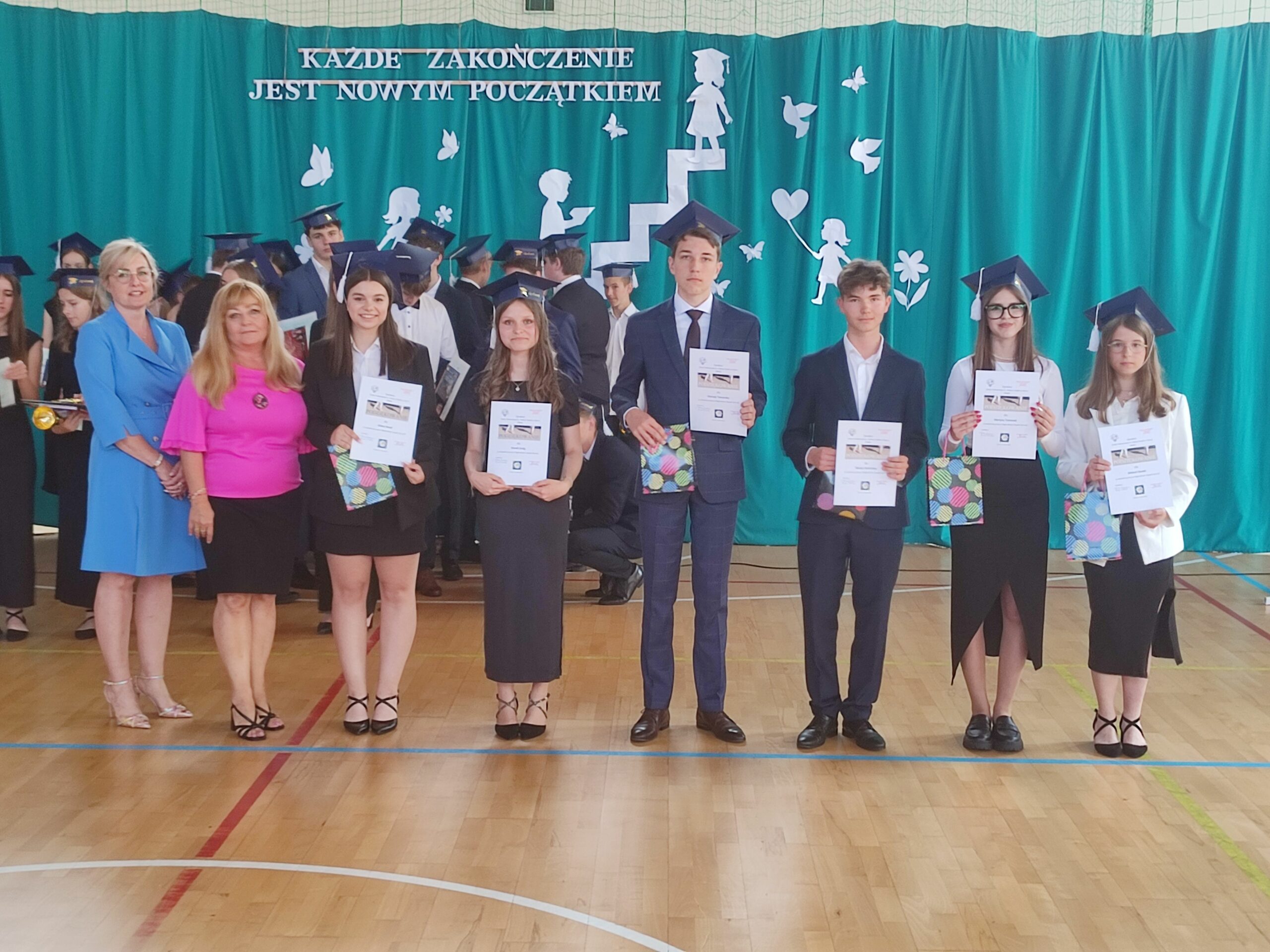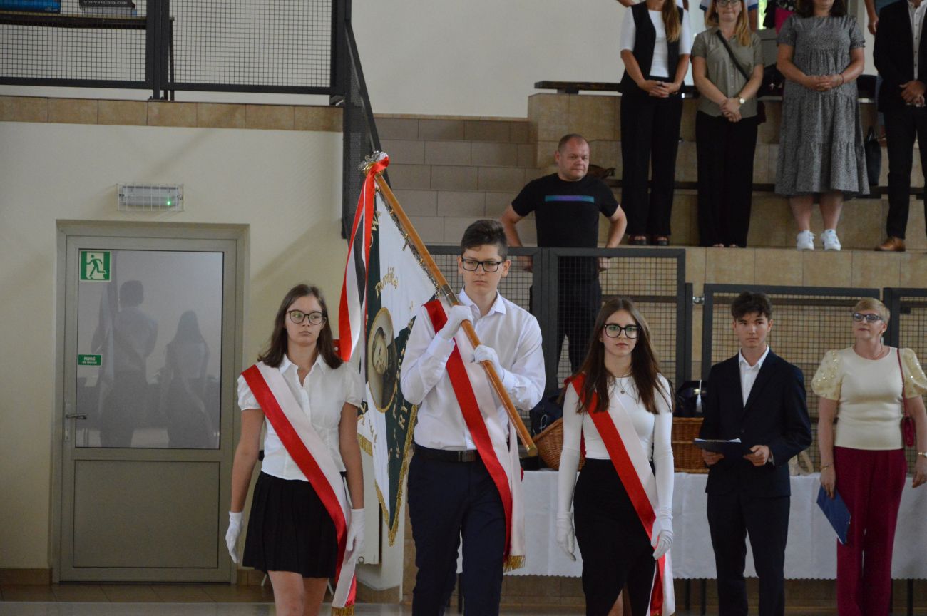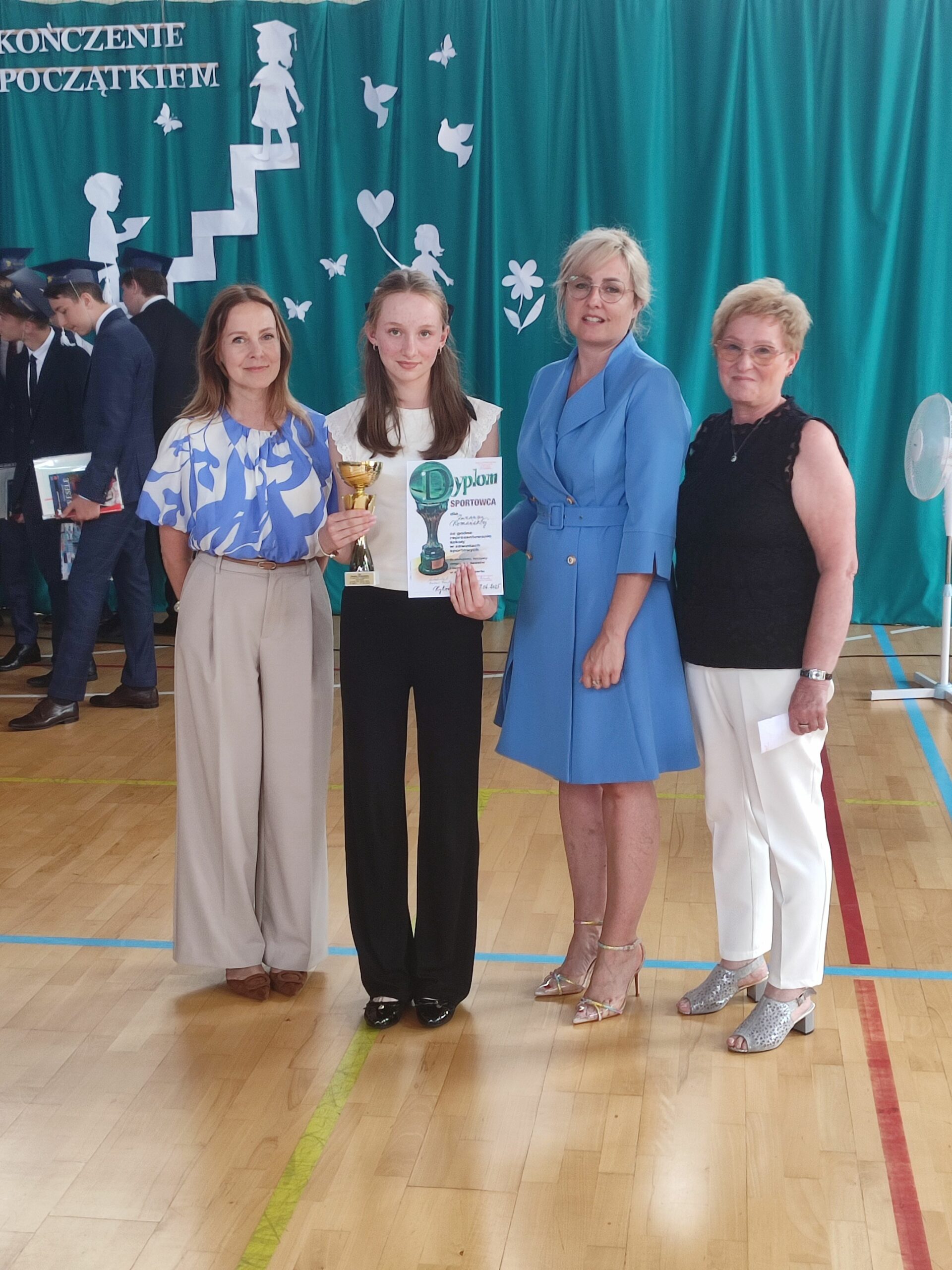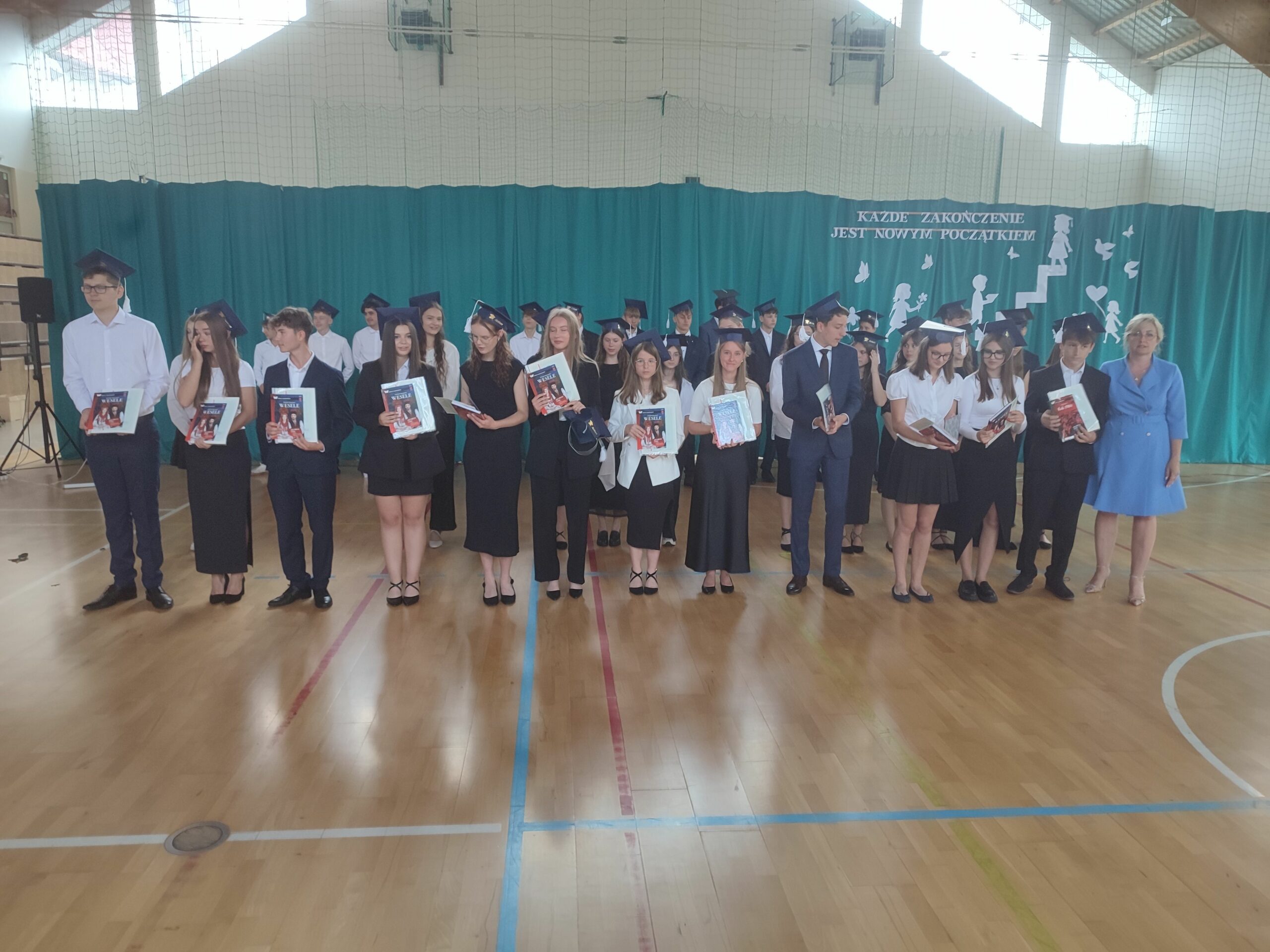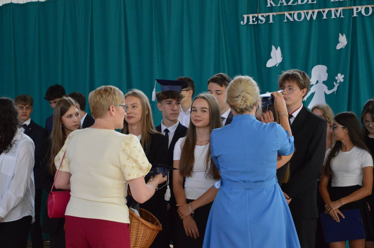 Dzisiaj, w uroczystej atmosferze, żegnamy kolejny rok szkolny, czas wytężonej pracy, nauki. Chciałabym wyrazić wdzięczność wszystkim uczniom za ich zaangażowanie, chęć zdobywania wiedzy i rozwijania swoich pasji. Miniony rok był dla Naszej szkoły pełen wydarzeń i inicjatyw. Uczniowie uczestniczyli w wielu konkursach, olimpiadach, zawodach sportowych, imprezach kulturalnych, jak również licznych projektach edukacyjnych, rozwijając swoje zainteresowania i talenty. Wiele z tych działań przyniosło nam jako szkole sukcesy, z których jesteśmy dumni. Pamiętajmy jednak, że prawdziwe sukcesy to nie tylko te widoczne na zewnątrz, ale przede wszystkim te, które mierzymy postępem w nauce, rozwojem osobistym i umiejętnością radzenia sobie z wyzwaniami.