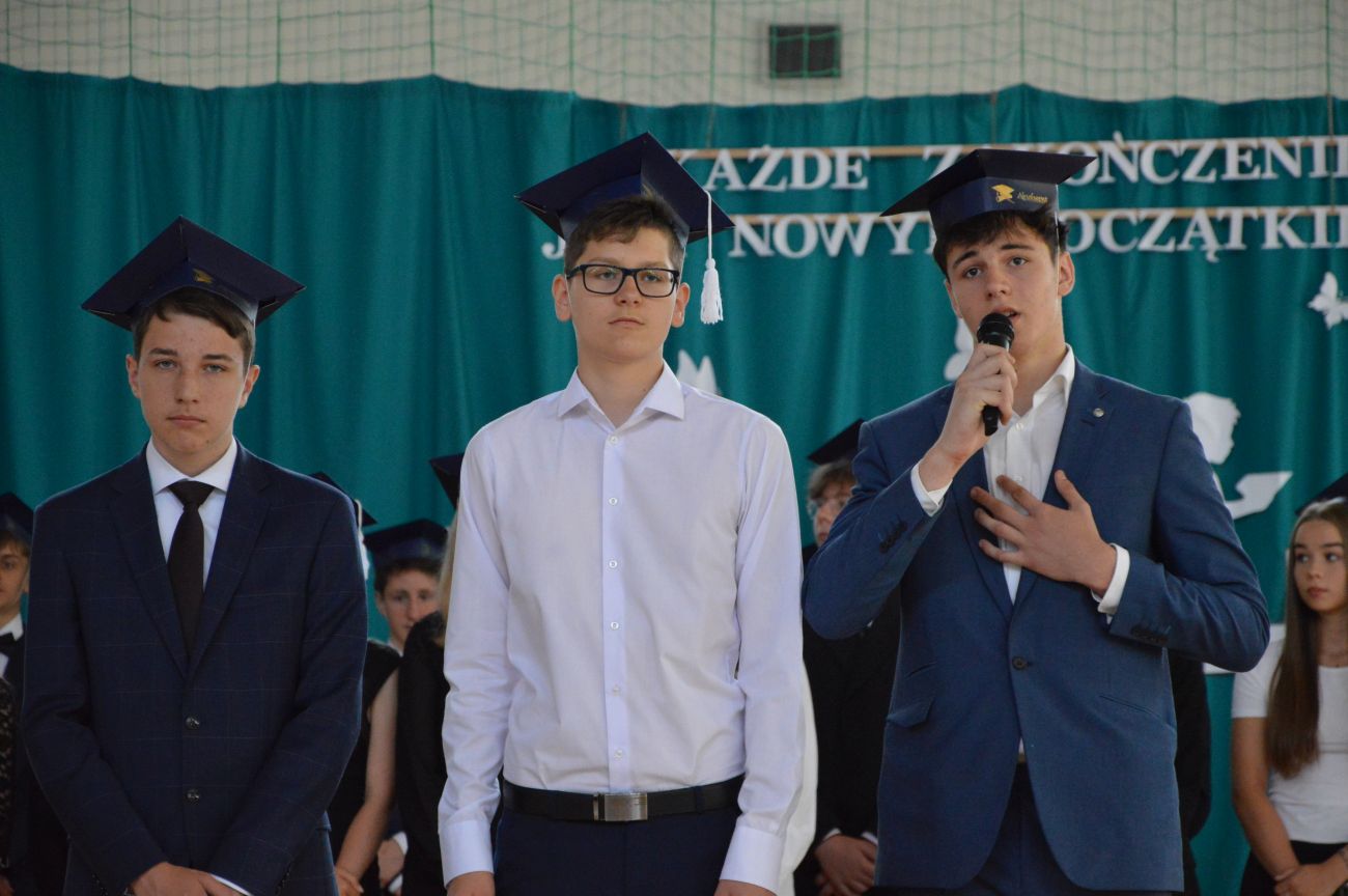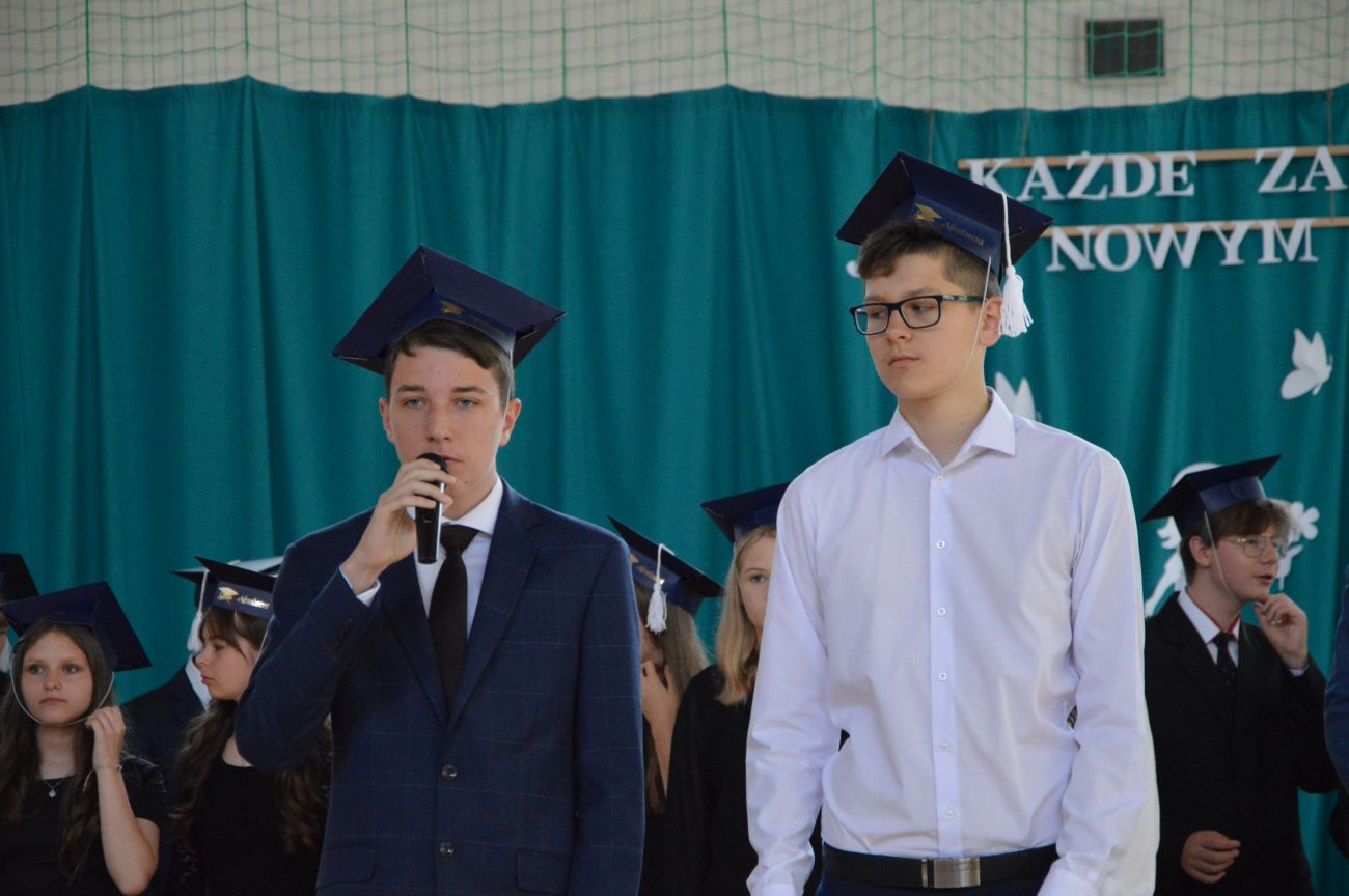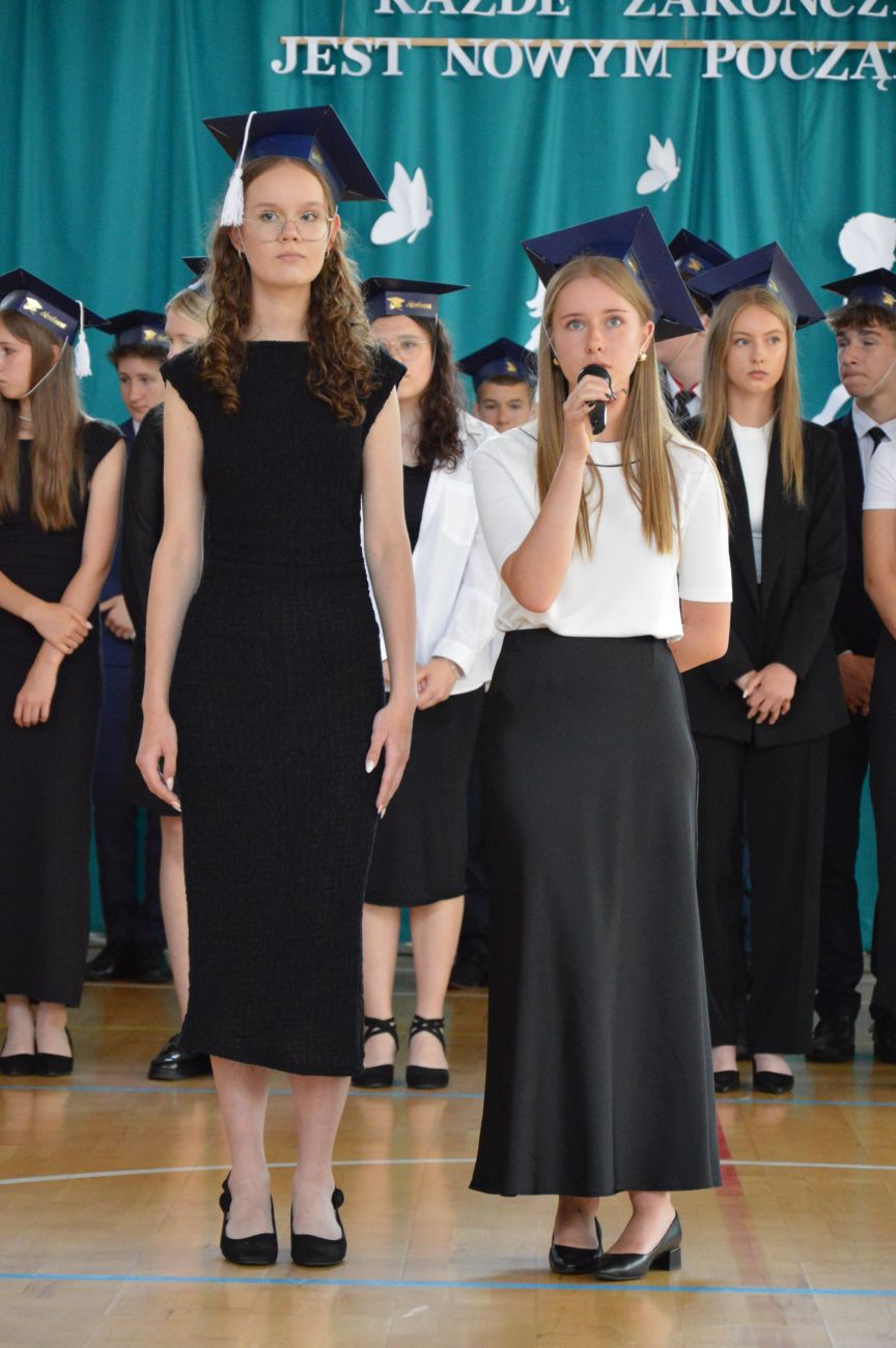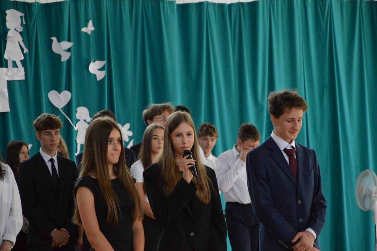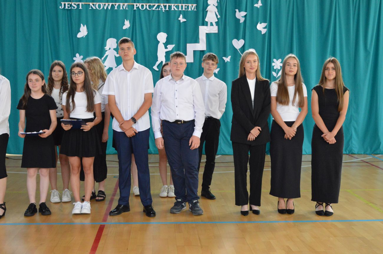 Dzisiaj, w uroczystej atmosferze, żegnamy kolejny rok szkolny, czas wytężonej pracy, nauki. Chciałabym wyrazić wdzięczność wszystkim uczniom za ich zaangażowanie, chęć zdobywania wiedzy i rozwijania swoich pasji. Miniony rok był dla Naszej szkoły pełen wydarzeń i inicjatyw. Uczniowie uczestniczyli w wielu konkursach, olimpiadach, zawodach sportowych, imprezach kulturalnych, jak również licznych projektach edukacyjnych, rozwijając swoje zainteresowania i talenty. Wiele z tych działań przyniosło nam jako szkole sukcesy, z których jesteśmy dumni. Pamiętajmy jednak, że prawdziwe sukcesy to nie tylko te widoczne na zewnątrz, ale przede wszystkim te, które mierzymy postępem w nauce, rozwojem osobistym i umiejętnością radzenia sobie z wyzwaniami.
